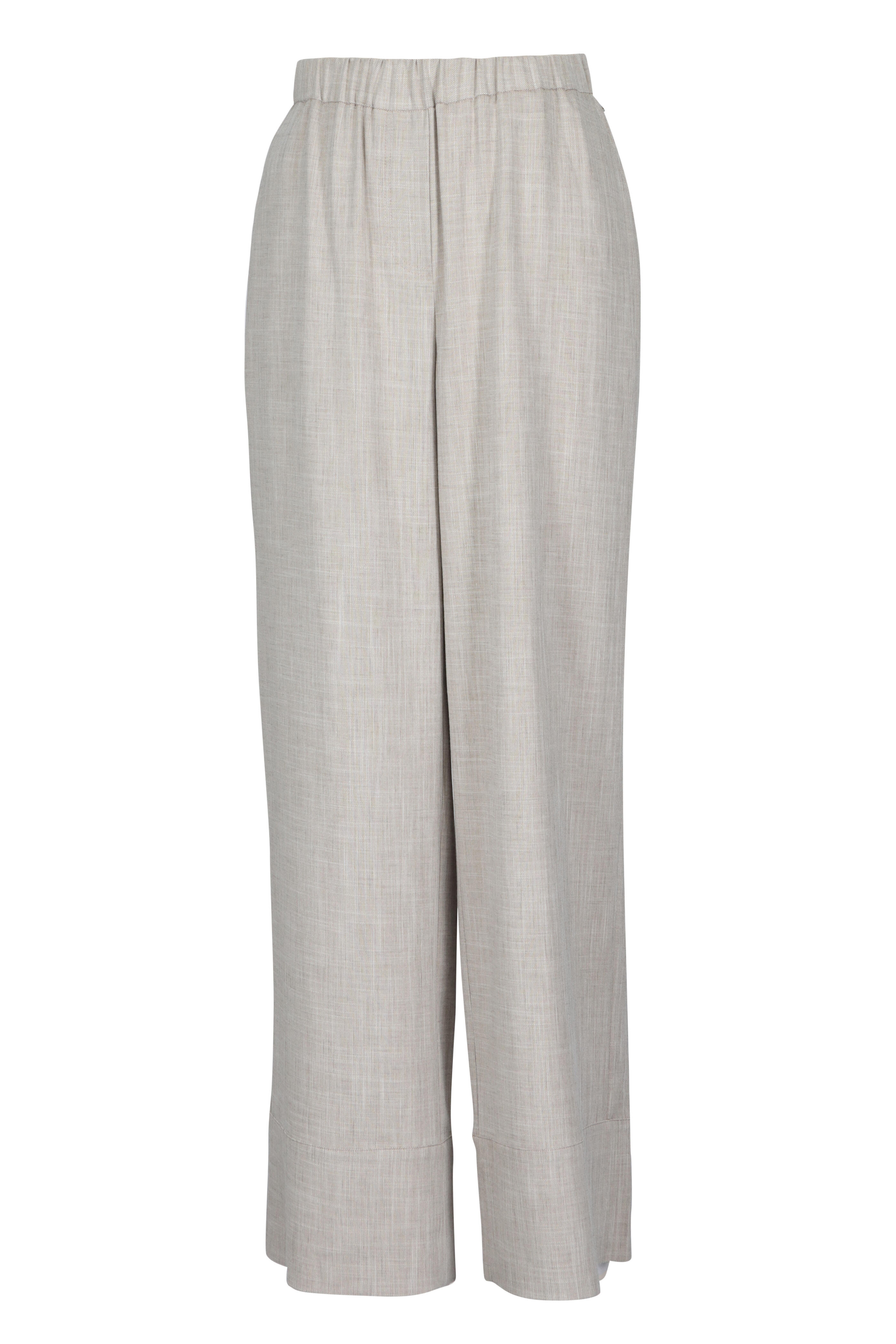 Elasticized waistband. Angled front pockets. Back welt pocket. Deep hem, subtle cross-hatch texture. imported. 29.5” inseam (size Small). 53% Polyester, 44% viscose, 3% elastane. Dry clean.