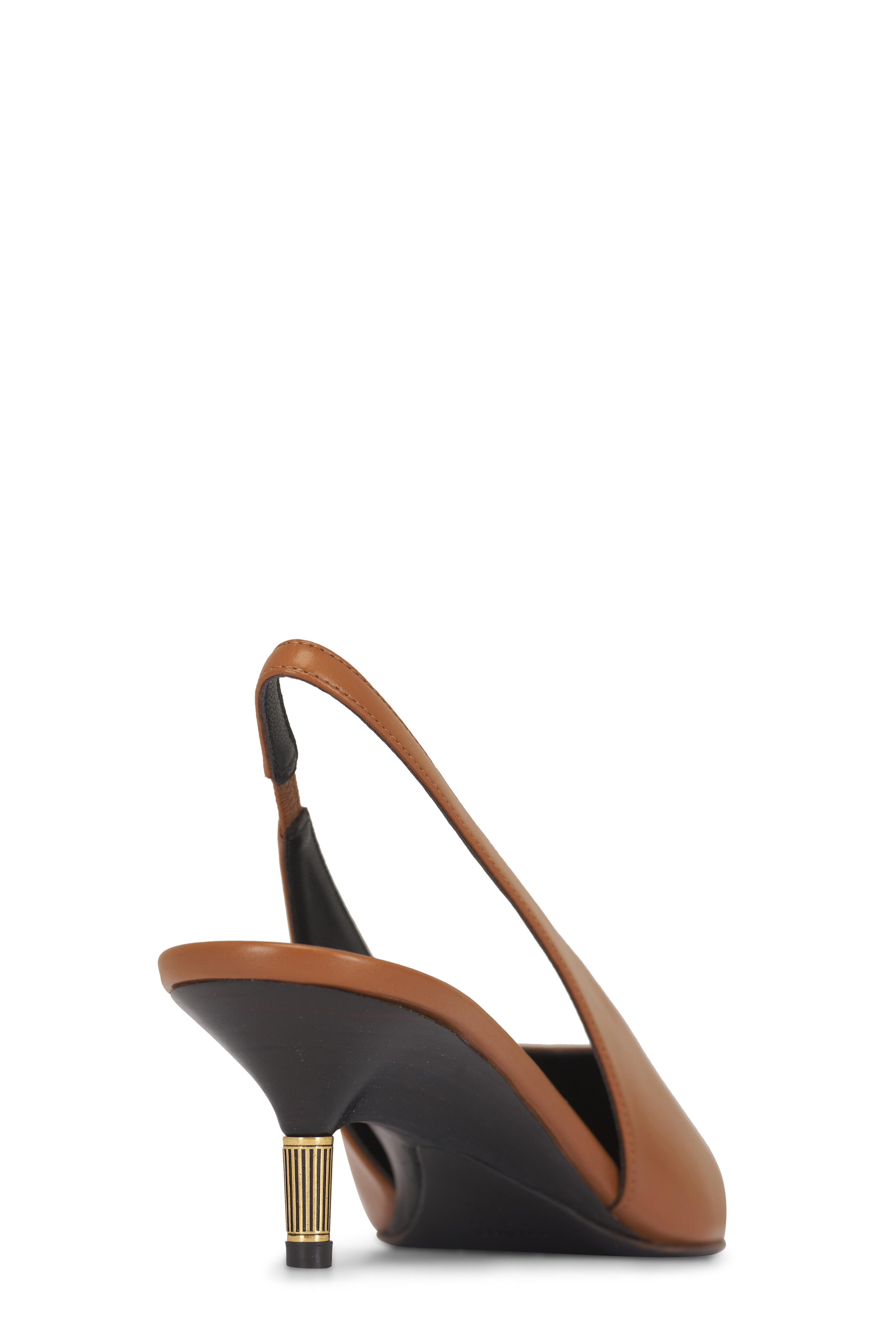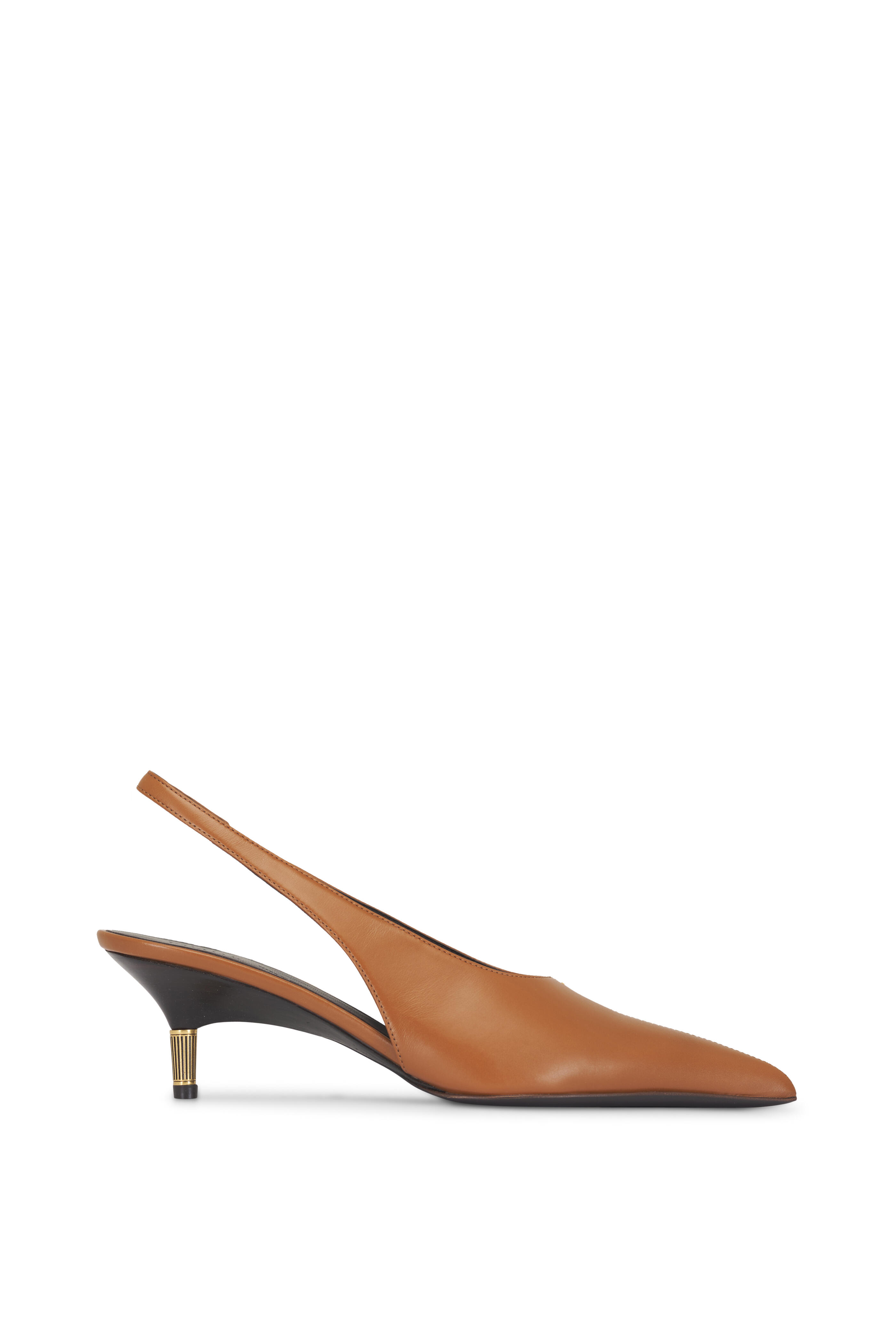 Leather upper. Pointed toe. Slingback. Gold-tone detailing at heel. Goatskin leather lining and insole. Leather sole. Made in Italy. Heel measurement: 55mm.