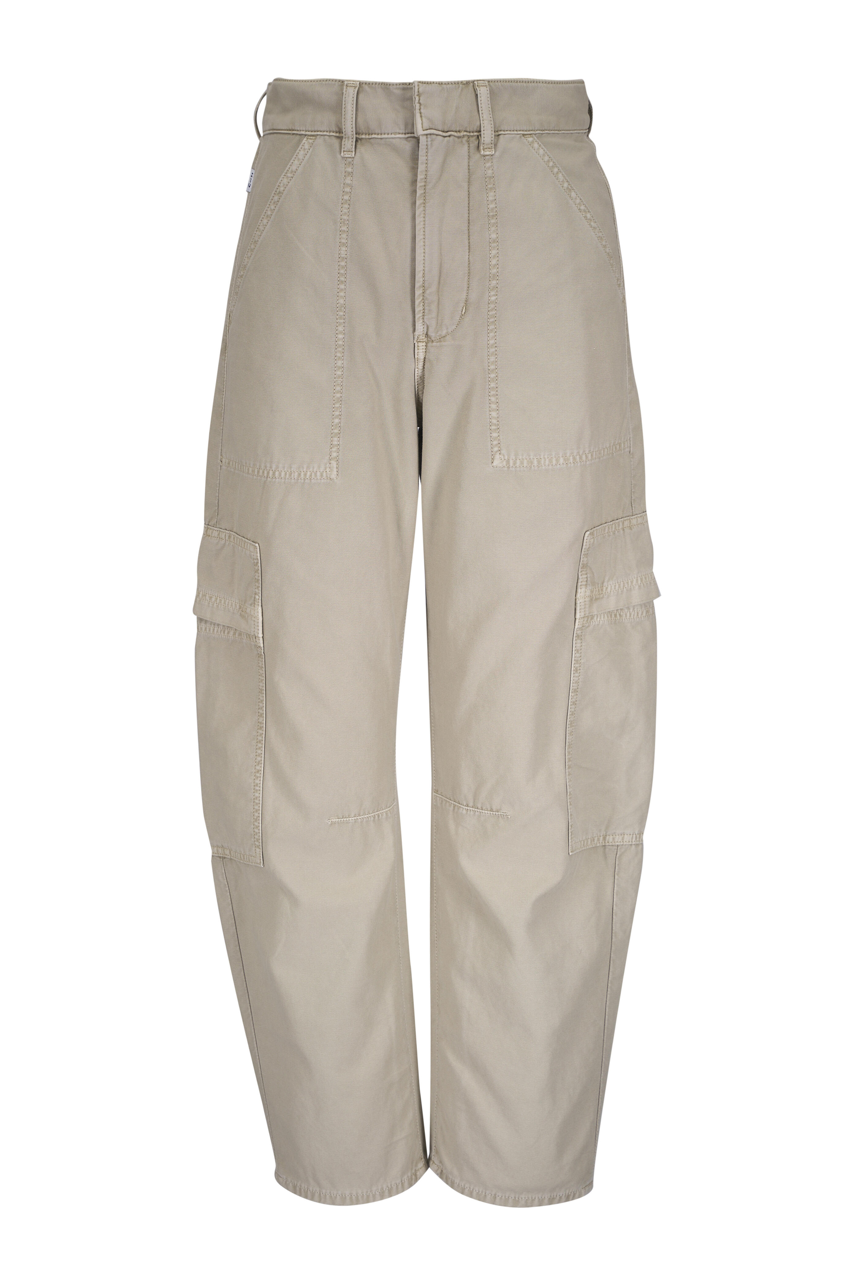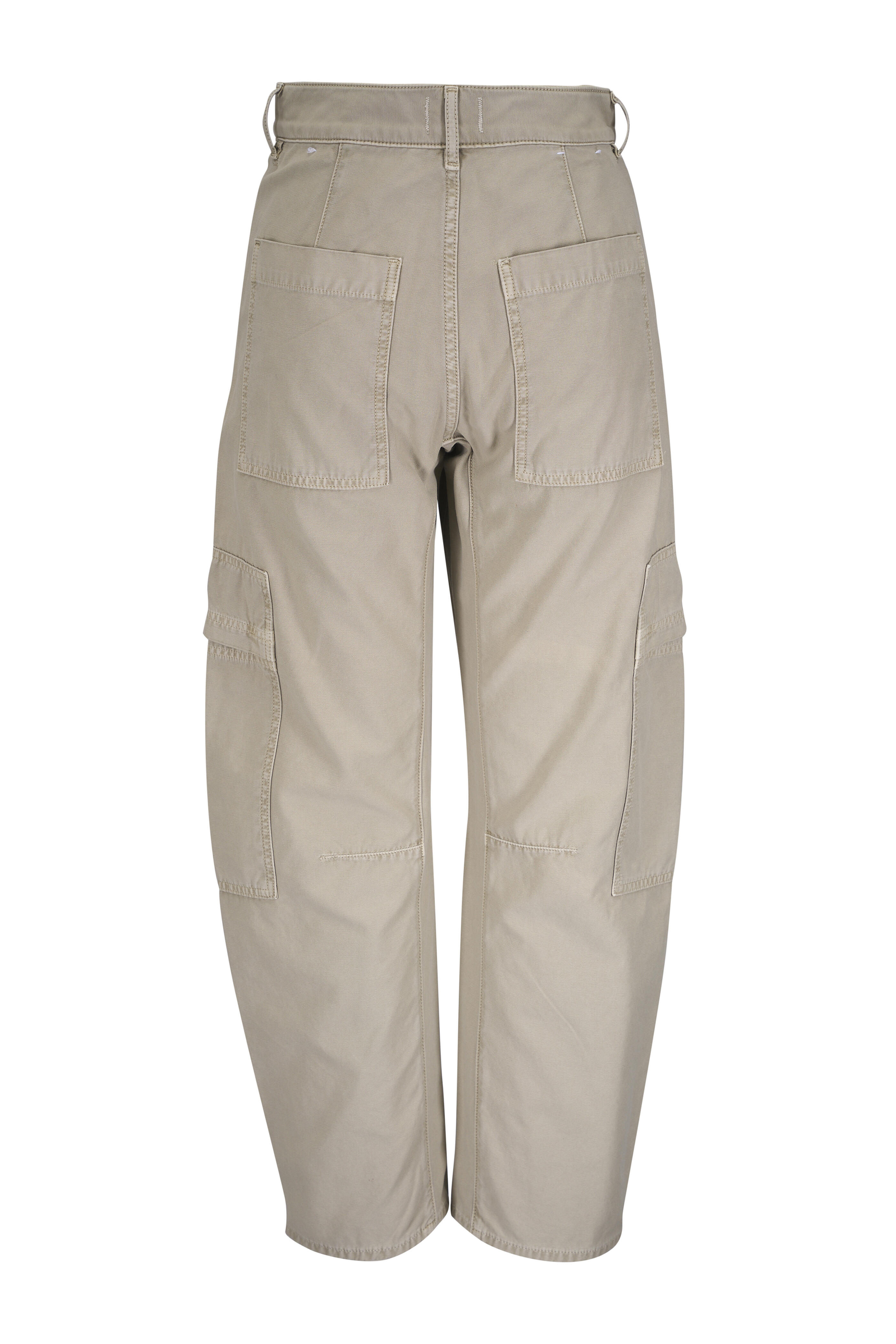 Zip fly; hook-and-bar closure. Banded waist; belt loops. Front angled patch pockets; back patch pockets; side cargo pockets. Imported. Inseam: 27". Rise: 11 ¾". Leg Opening: 17 ½". 100% regenerative cotton. Machine wash.