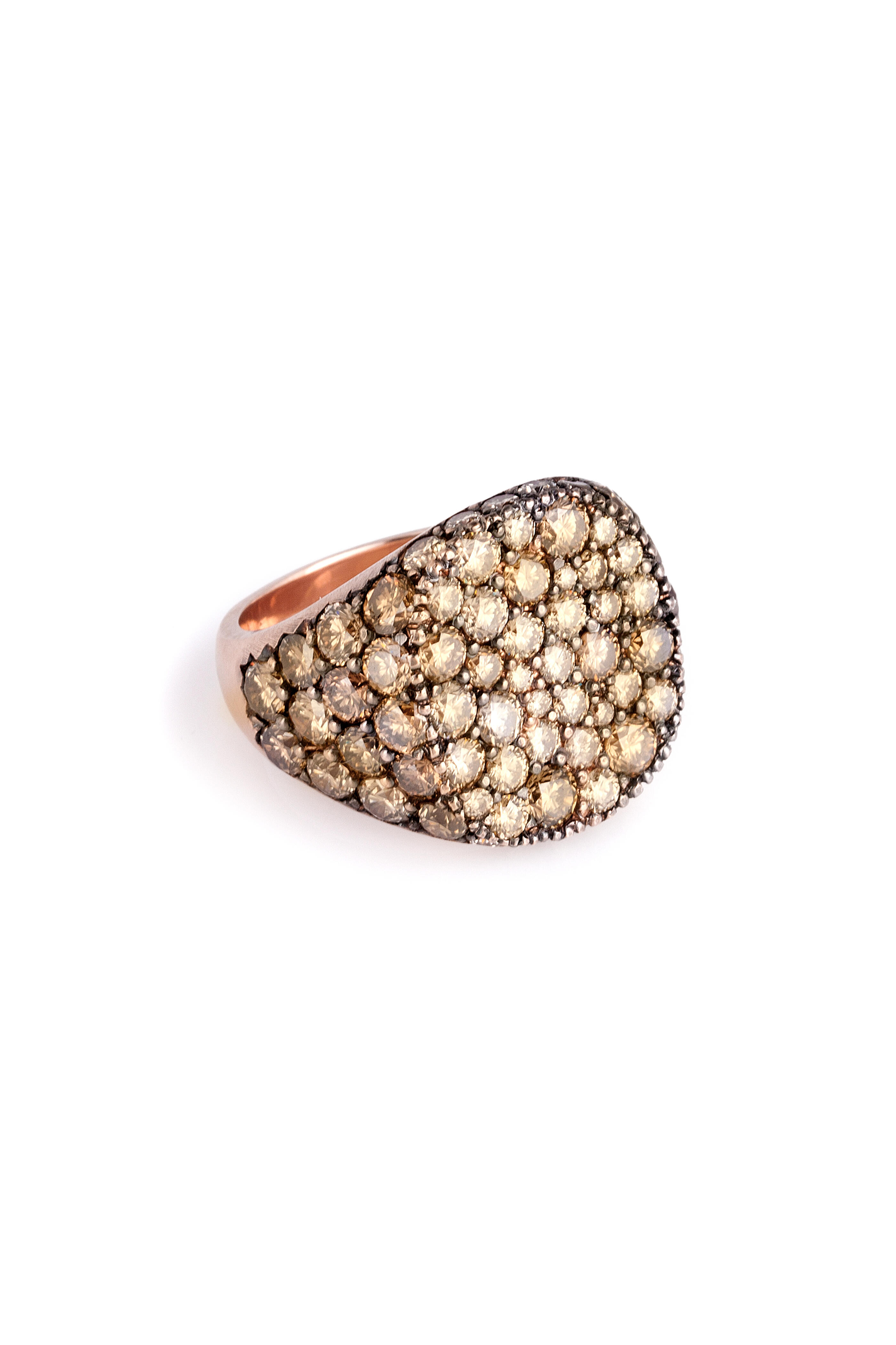 18k Rose Gold. 6.50 ct Round Champagne Diamond.