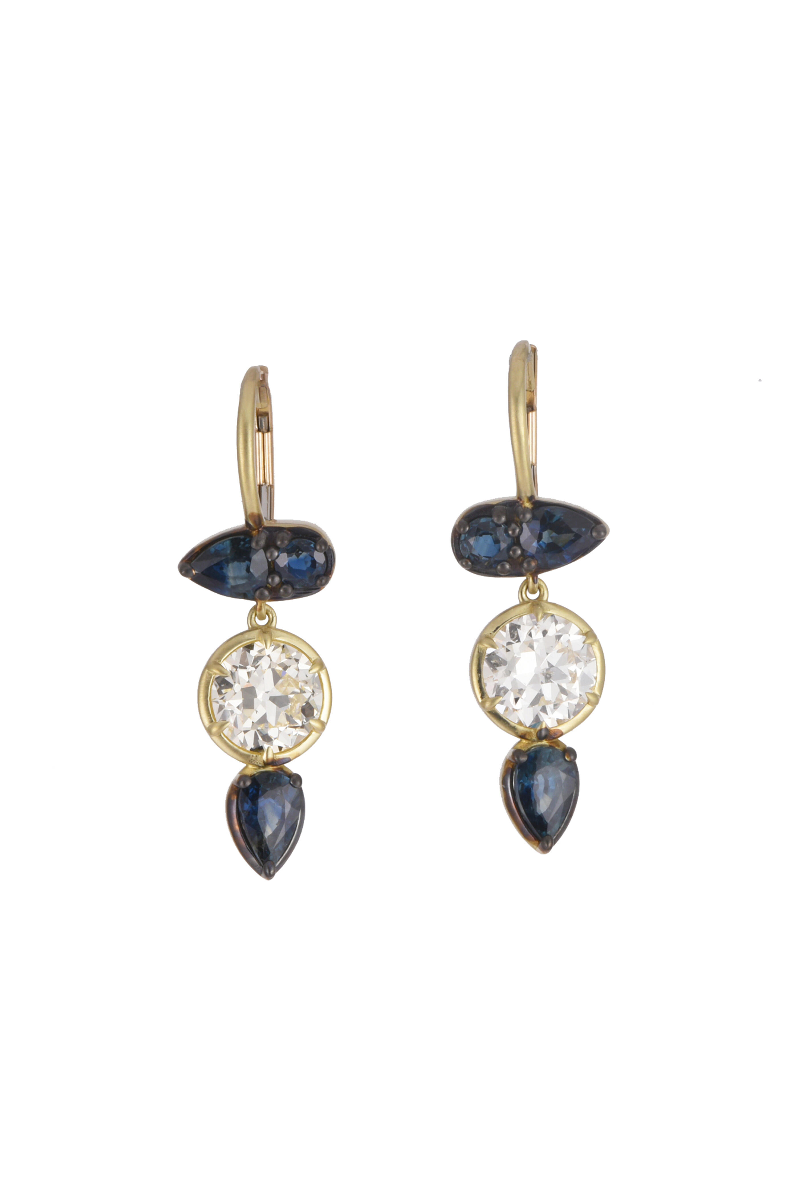 18k Yellow Gold. 3 ct Old European Cut Diamond. 2.50 ct Blue Sapphire.