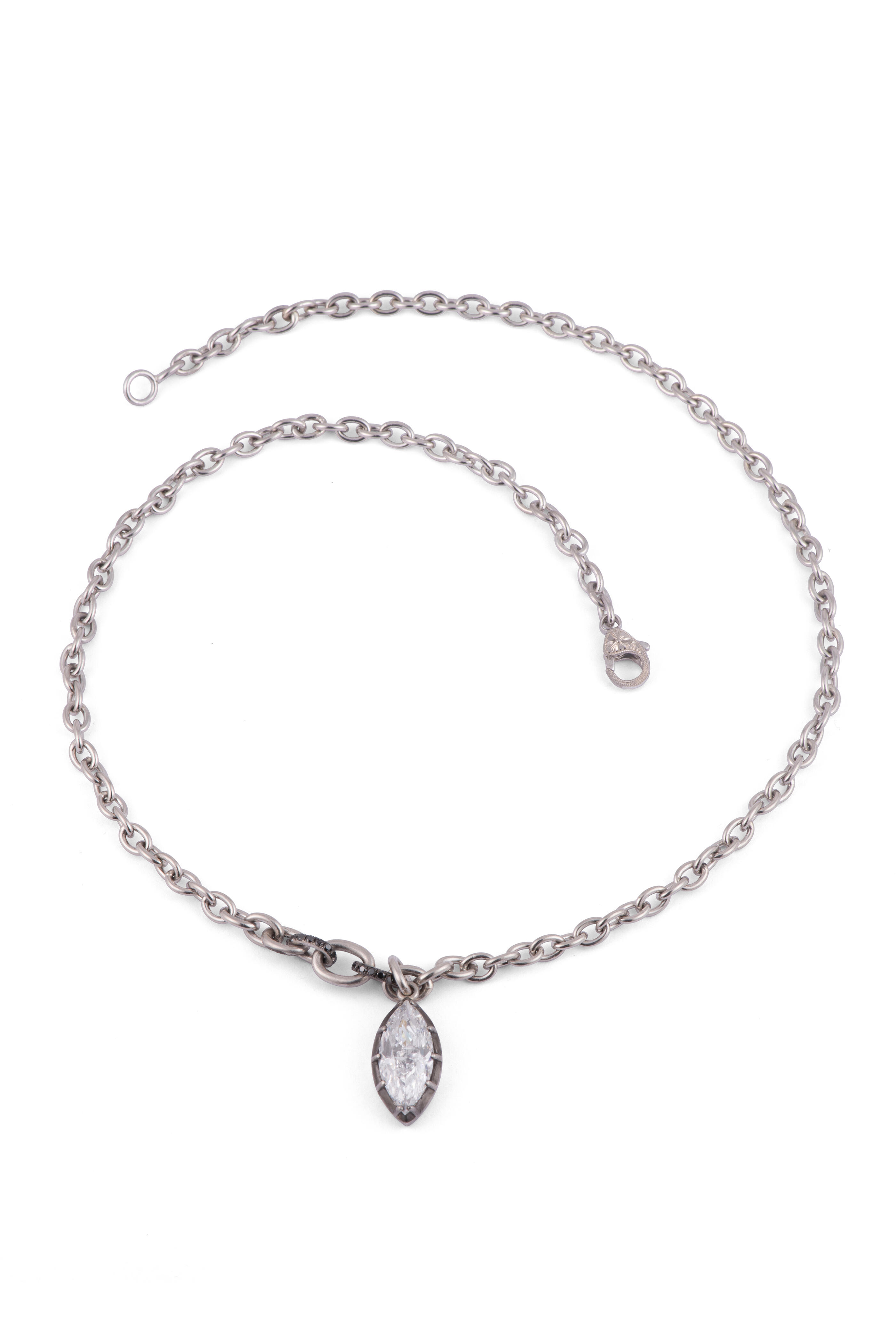 Platinum. 30.04 ct Marquise Diamond. 0.55 ct Black Diamond. 16".