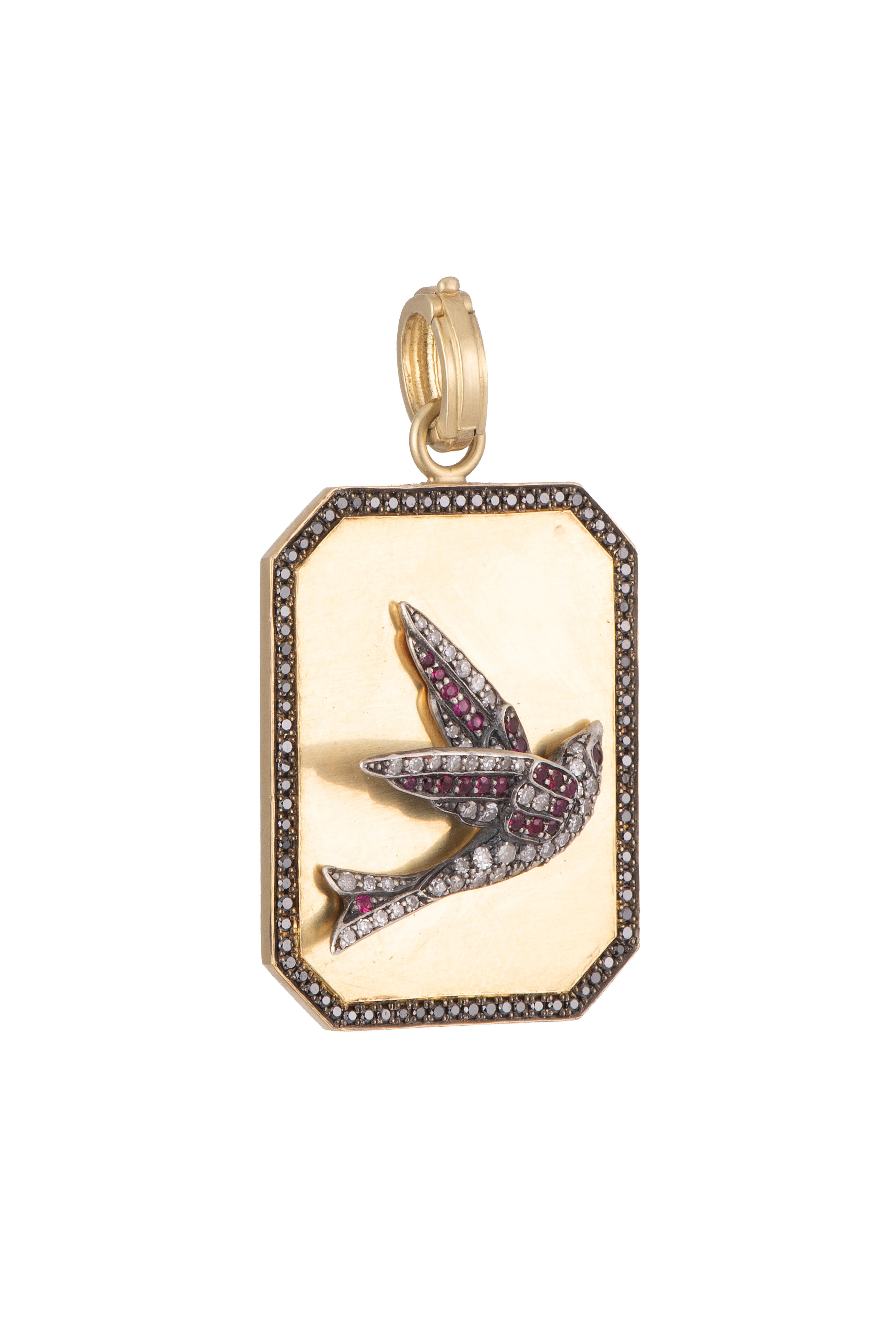 18k Yellow Gold. Sterling Silver. 0.30 ct White Diamond. 0.46 ct Black Diamond. 0.10 ct Ruby. *Necklace sold separately.
