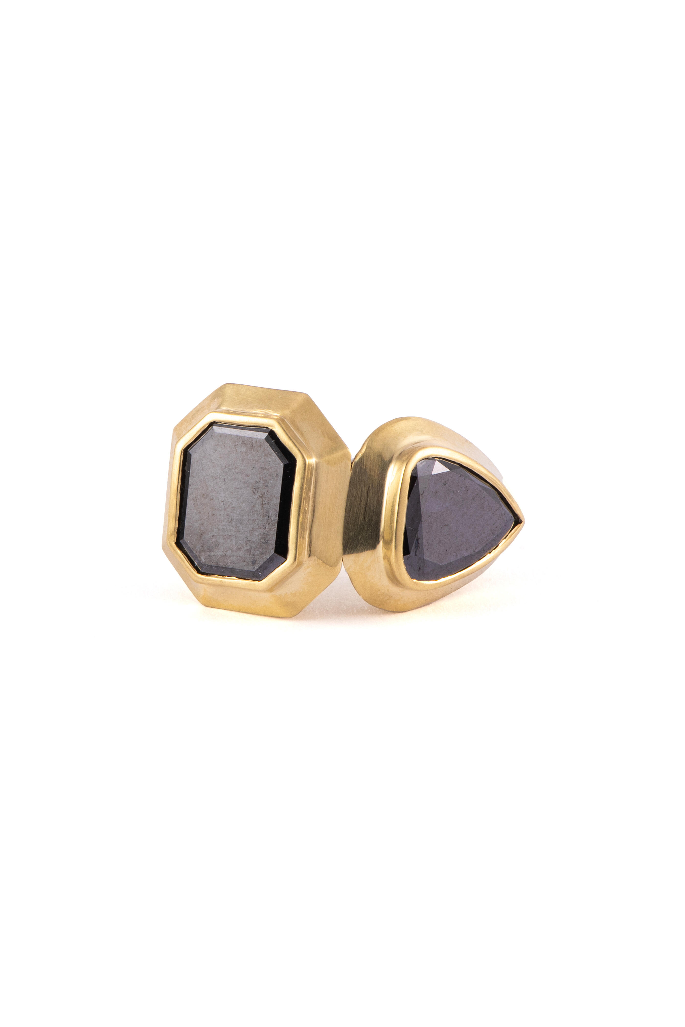 18k Yellow Gold. 2.02 ct Black Diamond. 3 ct Black Diamond.