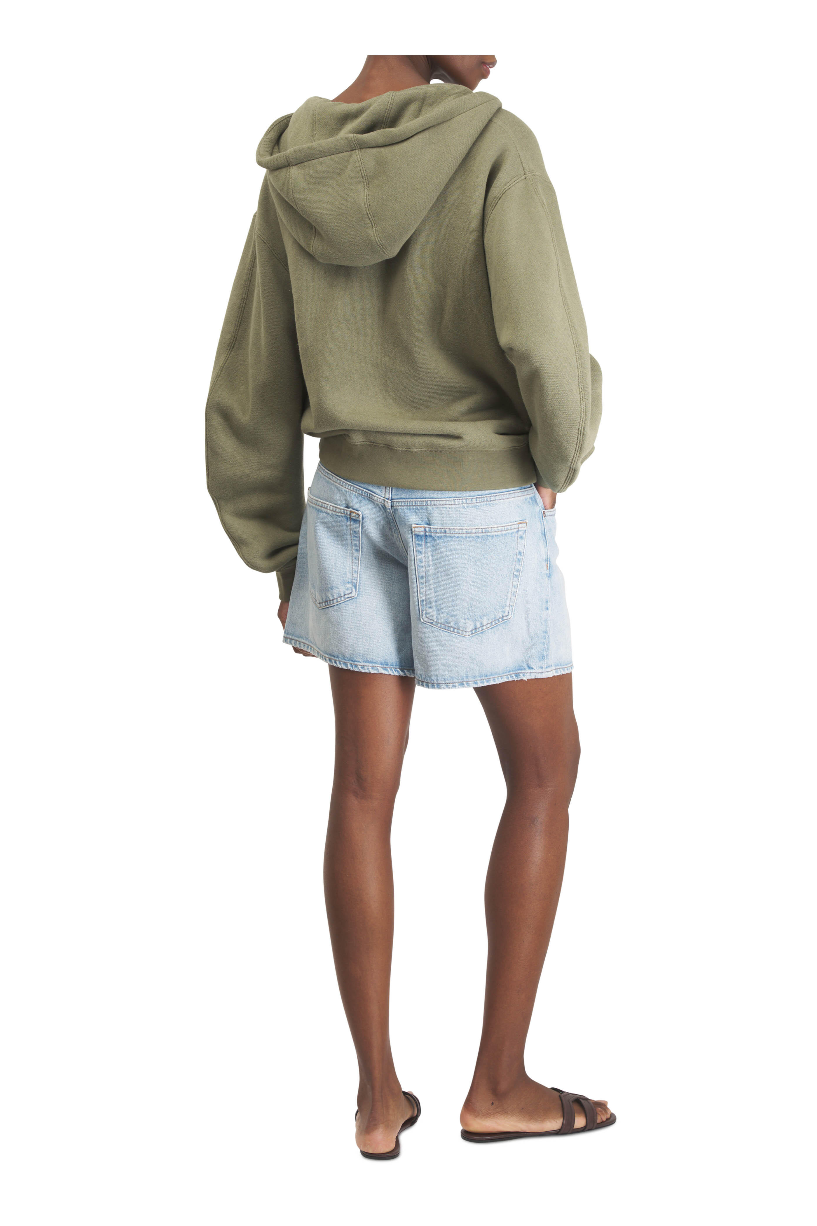 Button fly; button closure. Banded waist; belt loops. Five pocket styling. Imported. Rise: 12". Inseam: 4 3/4". Leg Opening: 25 1/2". 100% regenerative cotton. Machine wash.