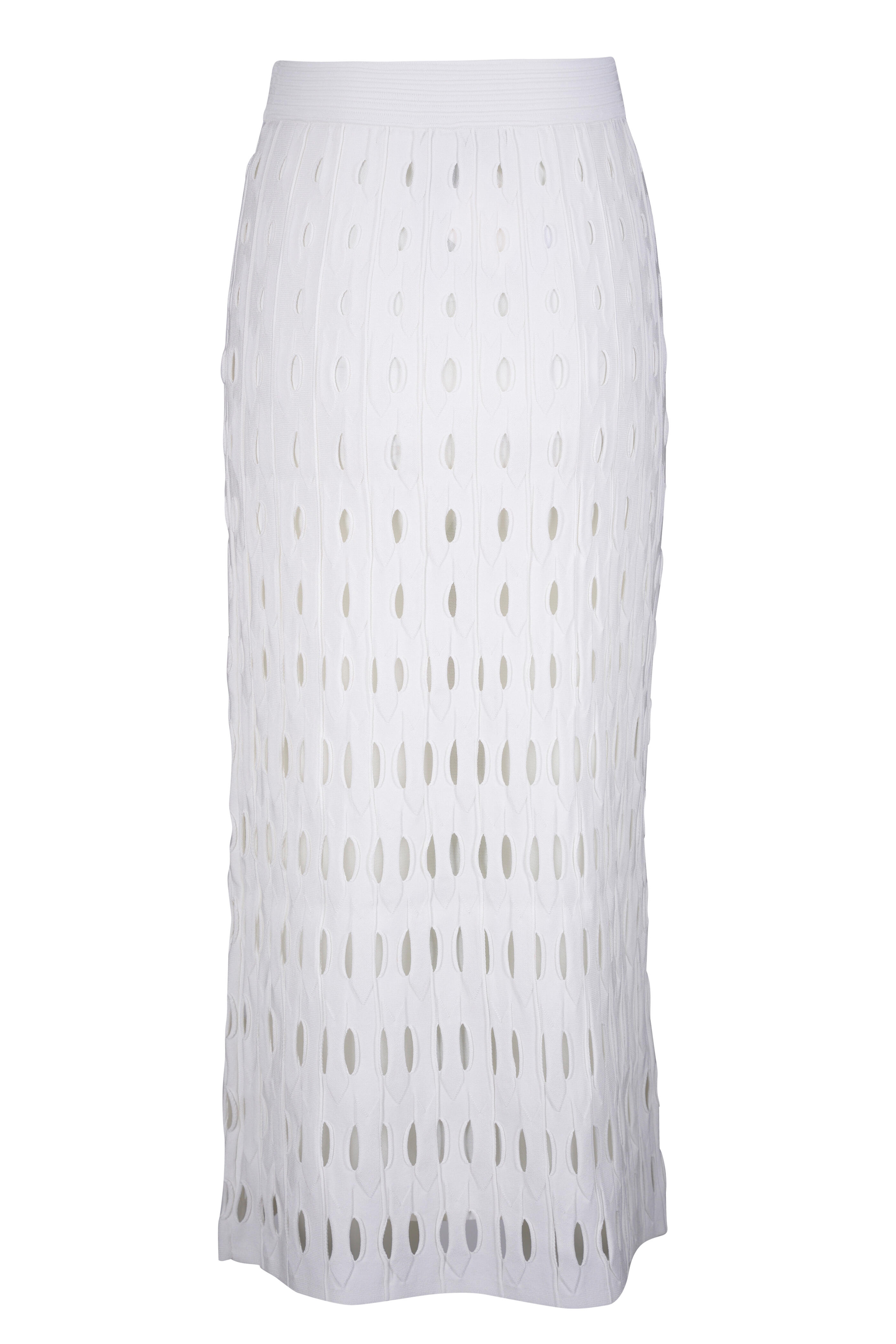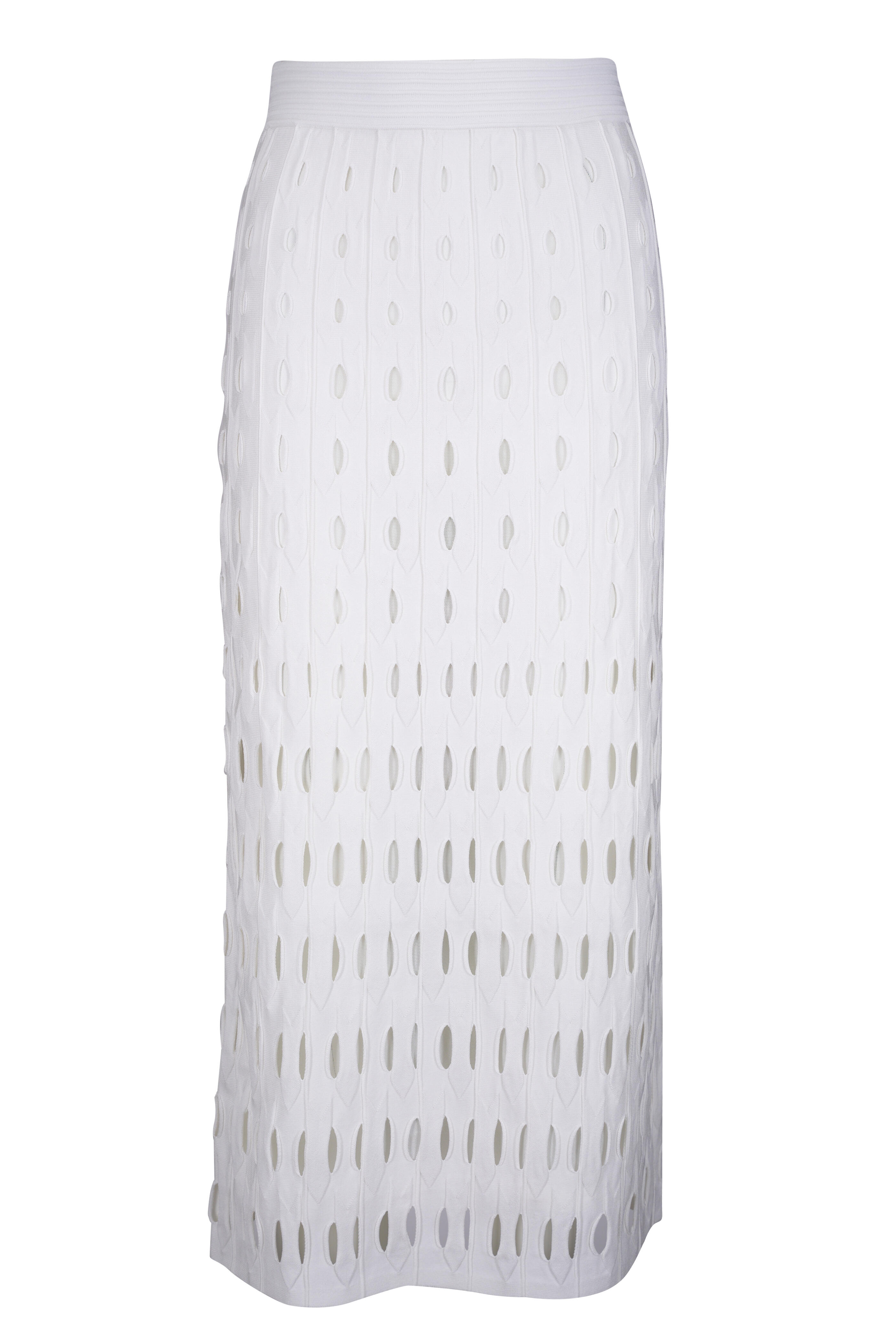 Banded waist. Pull on style. Imported. 31.5" length. 83% viscose, 17% nylon; lined. Dry clean.