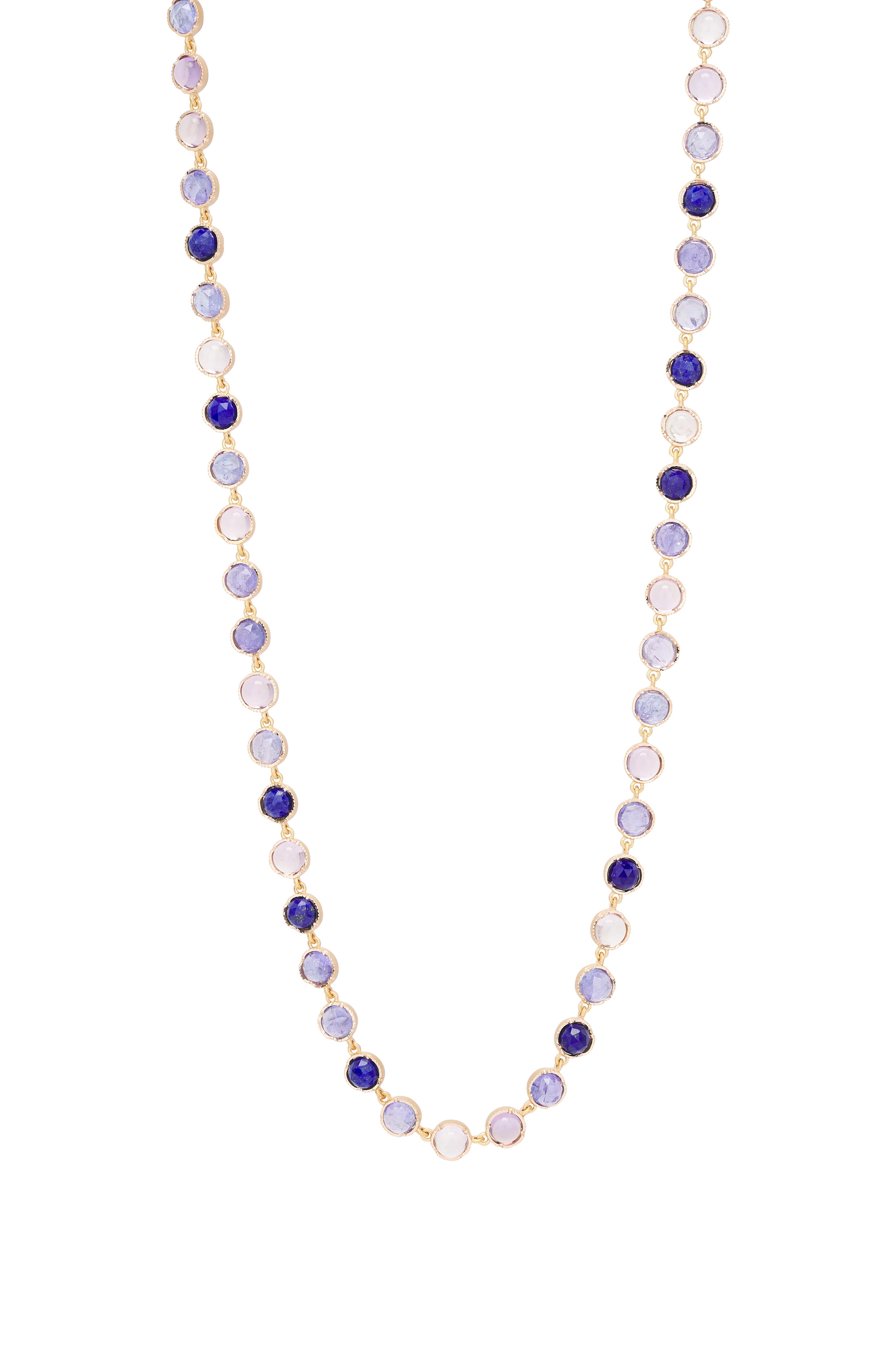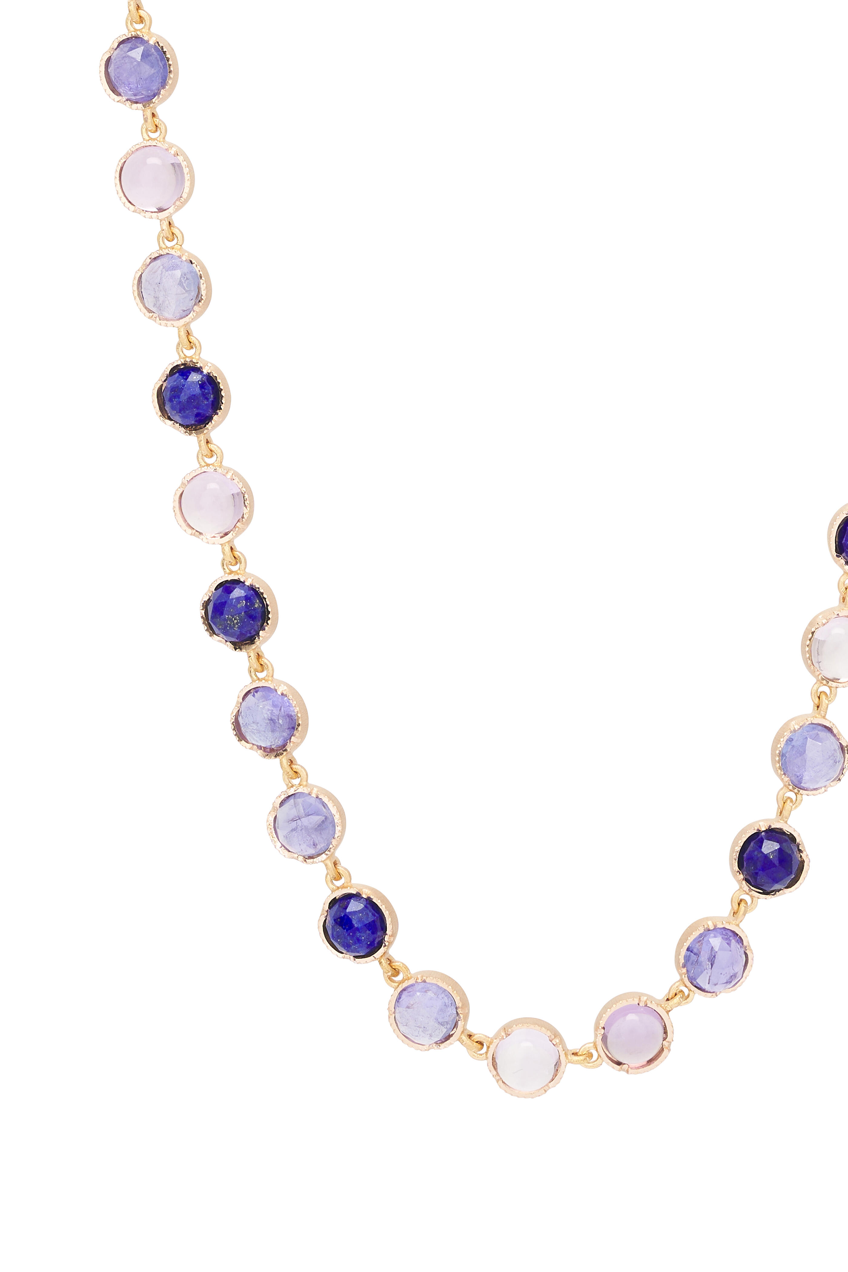 18k rose gold. 5mm. Lapis, tanzanite, rose of France.