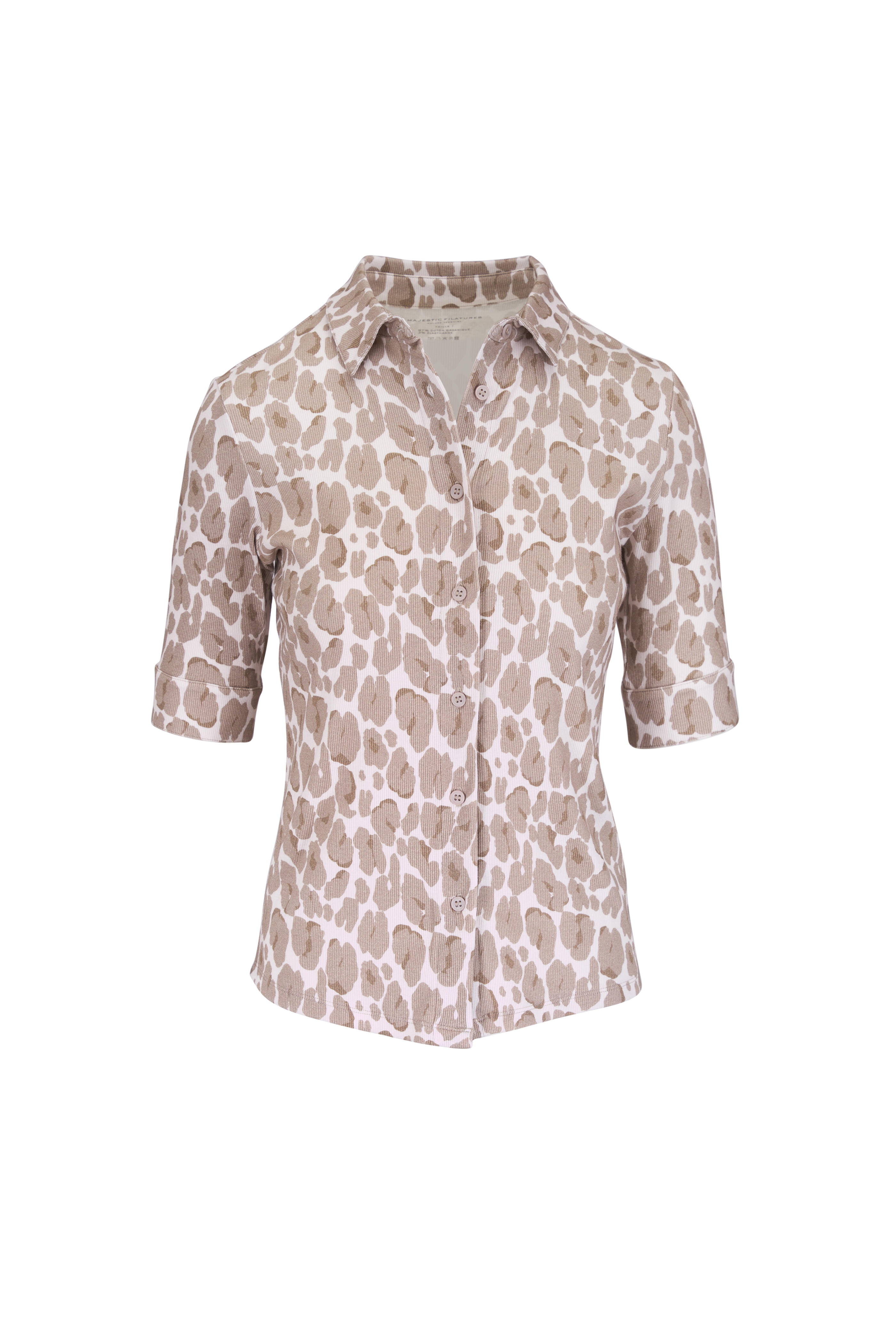 Multicolor Leopard Print Ribbed Button Up Blouse