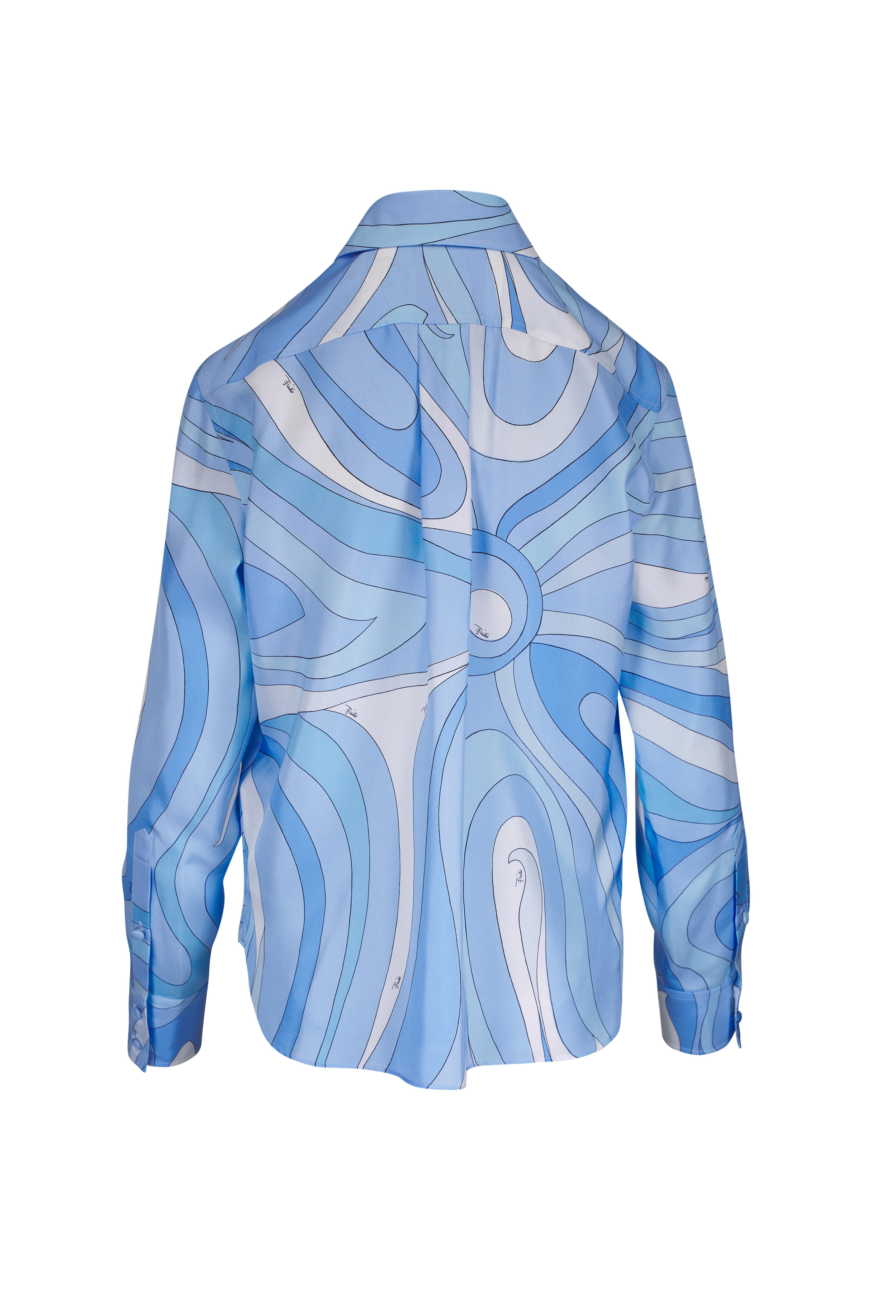 Spread collar. Front button placket. Made in Italy. 100% silk. Dry clean.