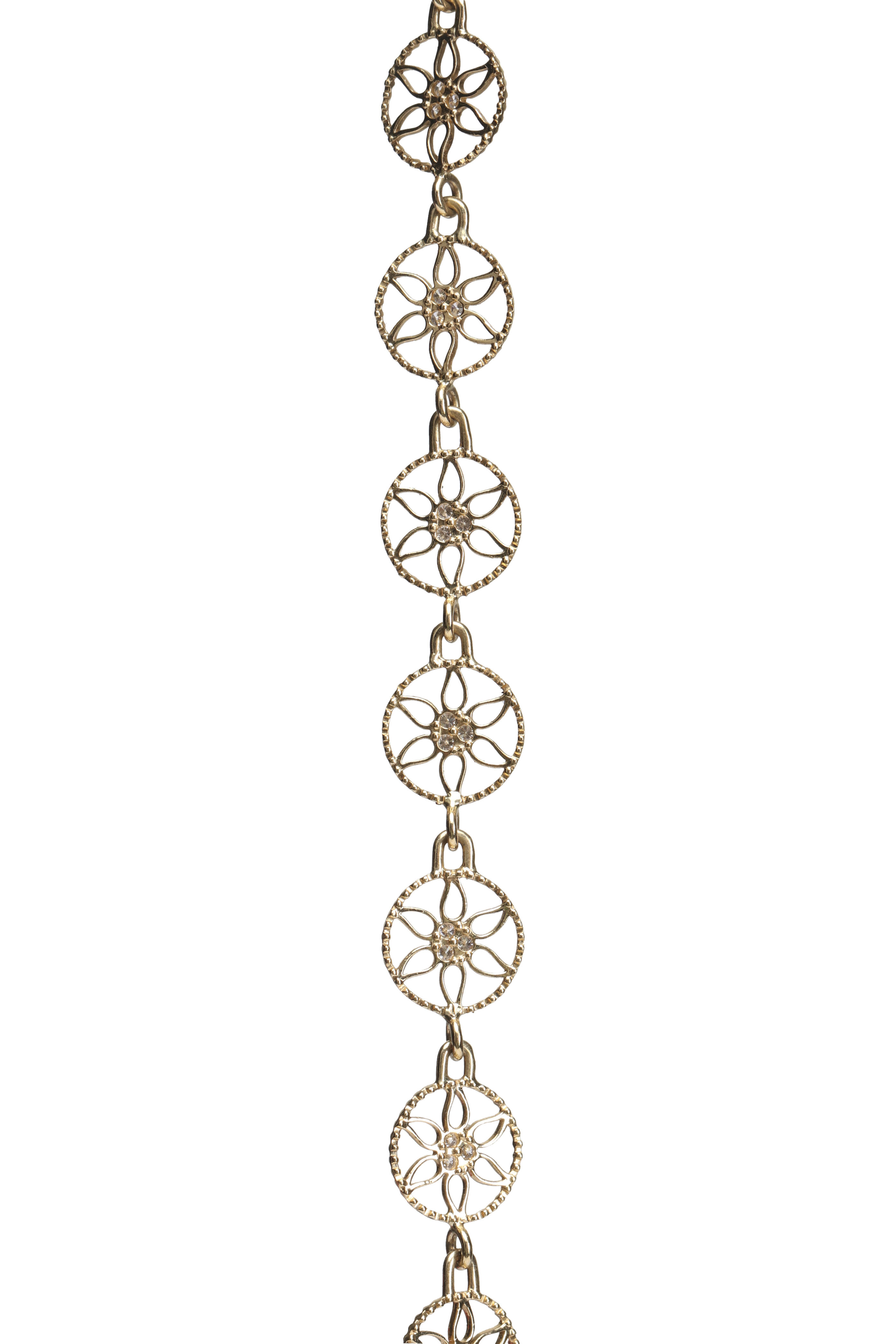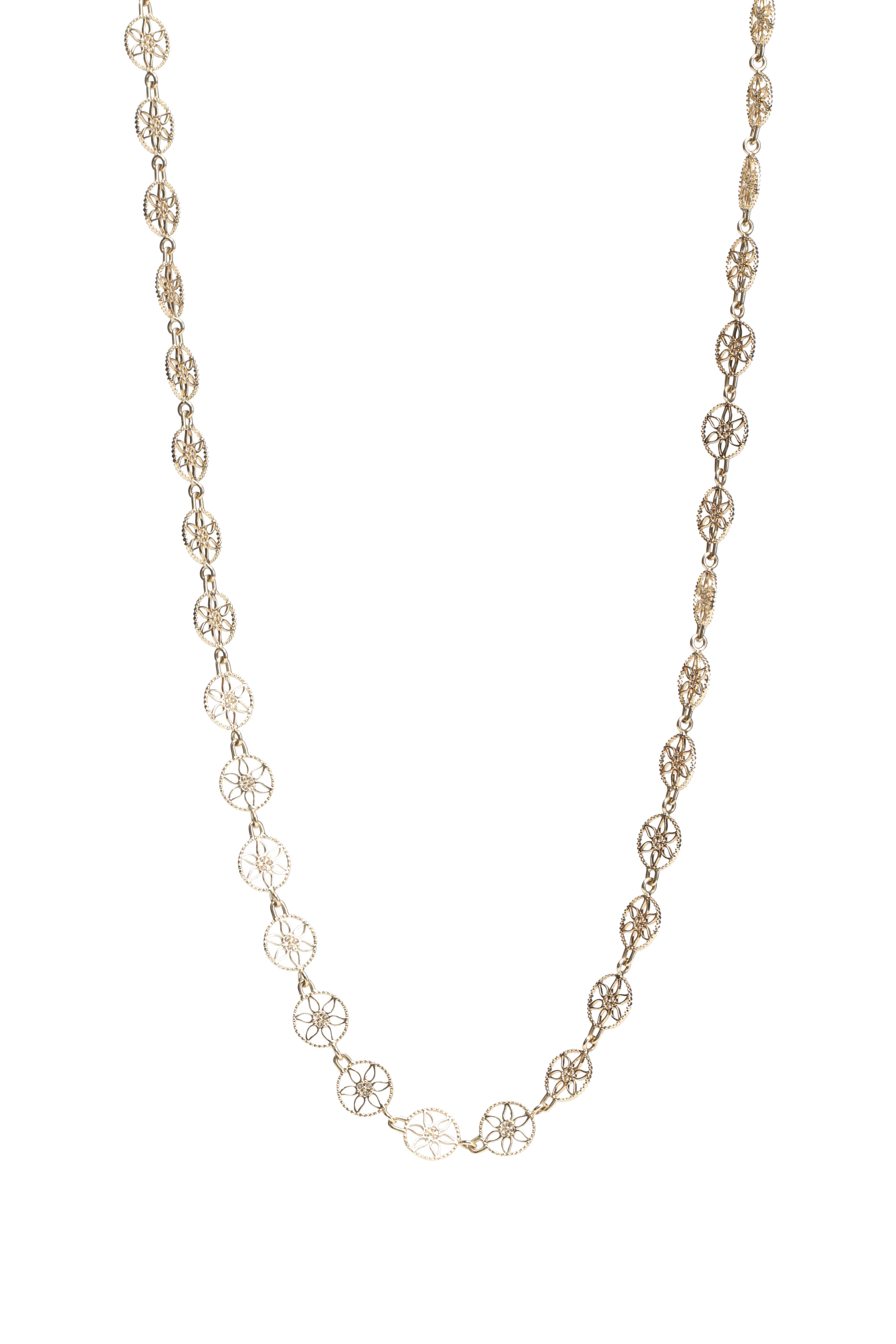 20k gold. Diamond 1.17 total carat weight. Sun design. Engraved detailing. Chain links. Lobster claw clasps. One of a kind. Handmade. Based in New York. Length: 36".