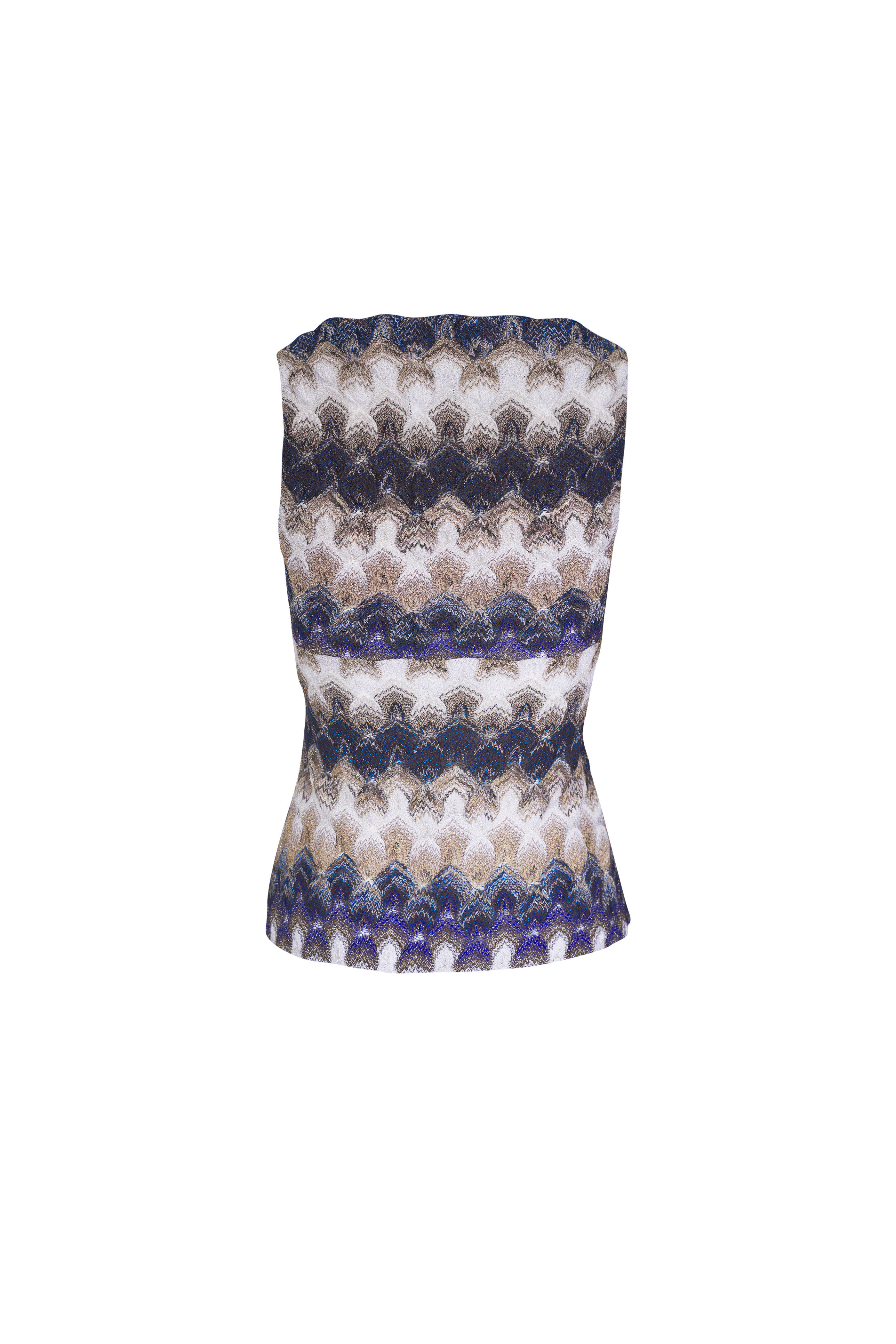Blue & White Metallic V-Neck Tank