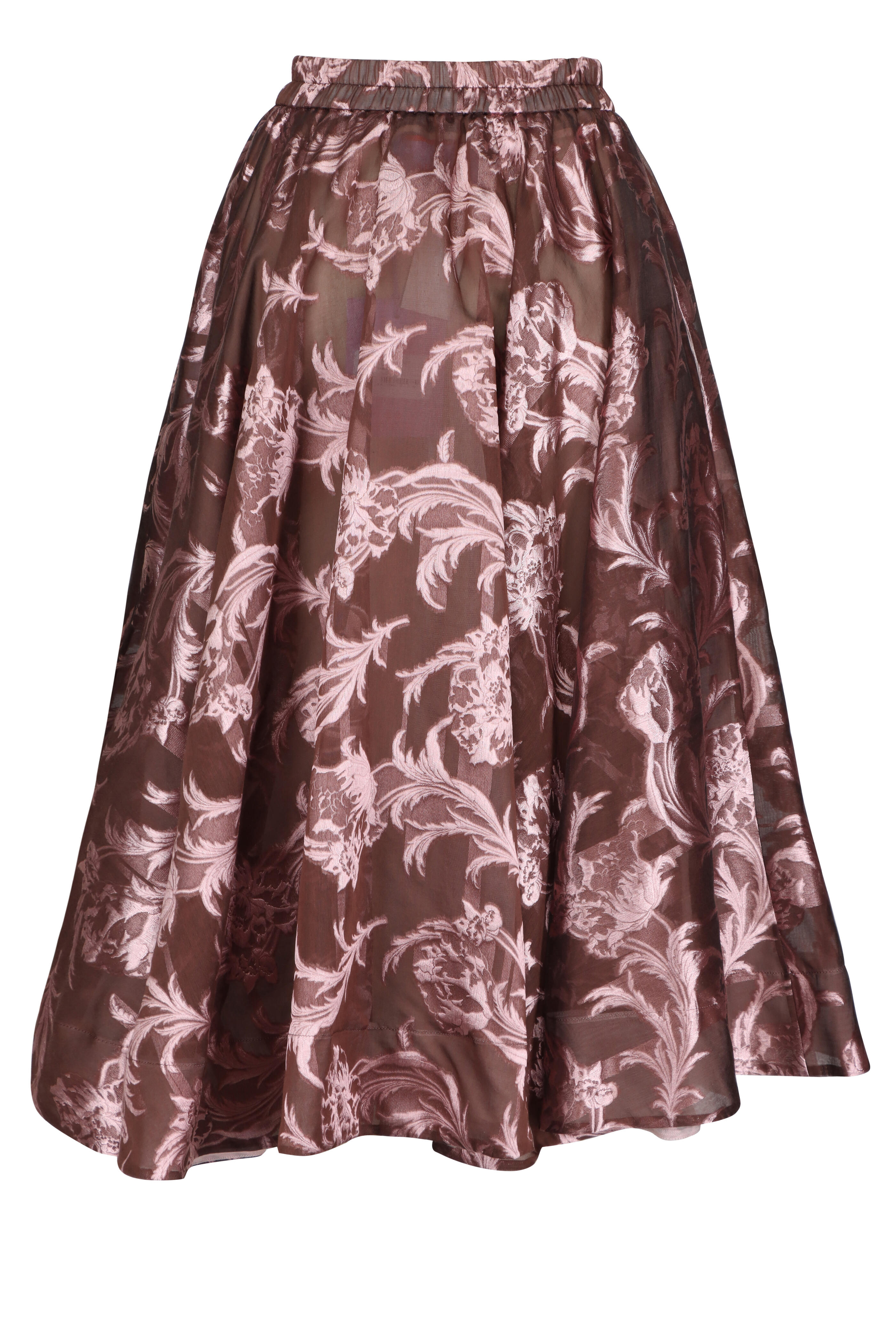 Elasticized waistband. Midi length. Placed print. Made in Italy. Garment length: 80cm. 100% Cotton. Dry clean.