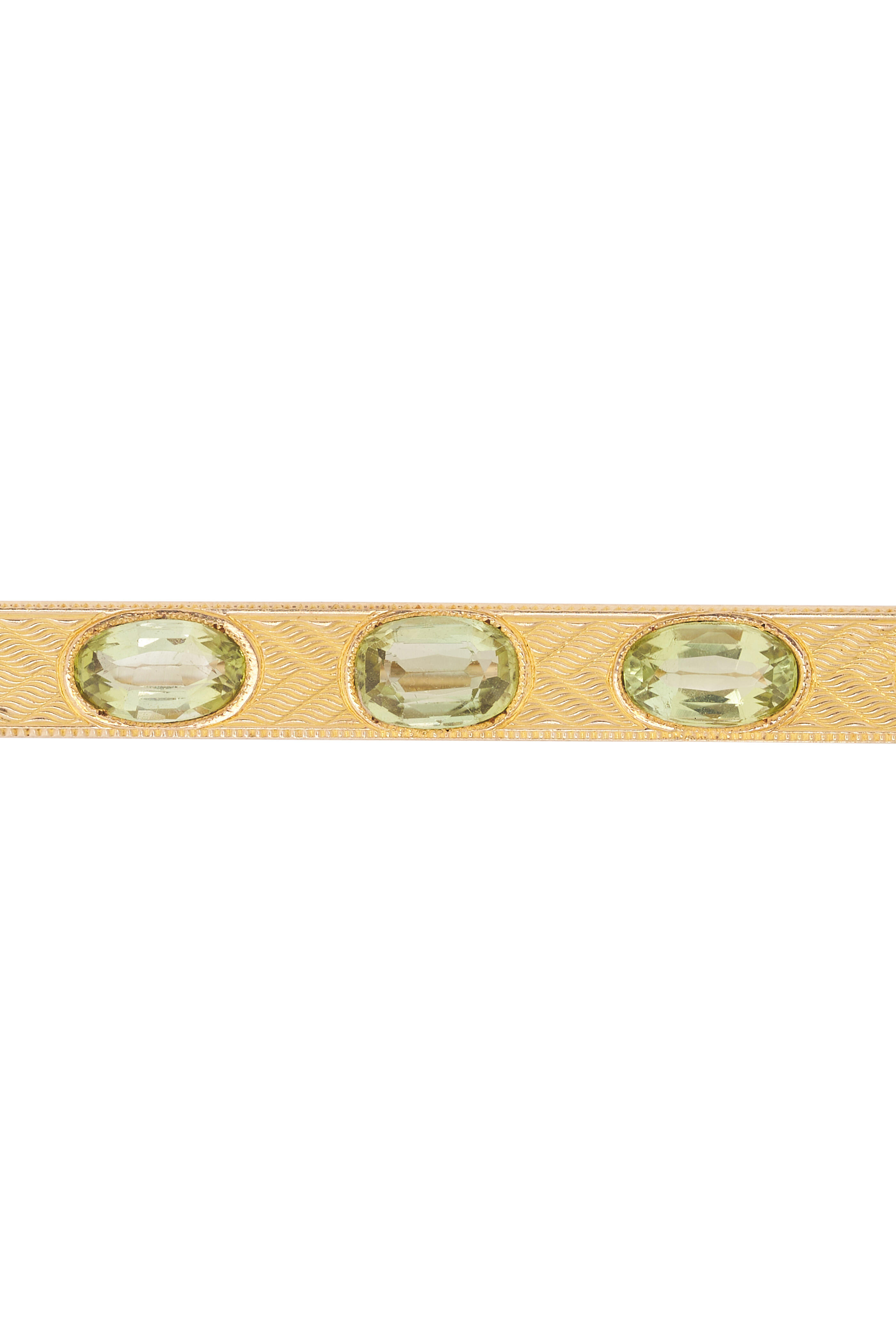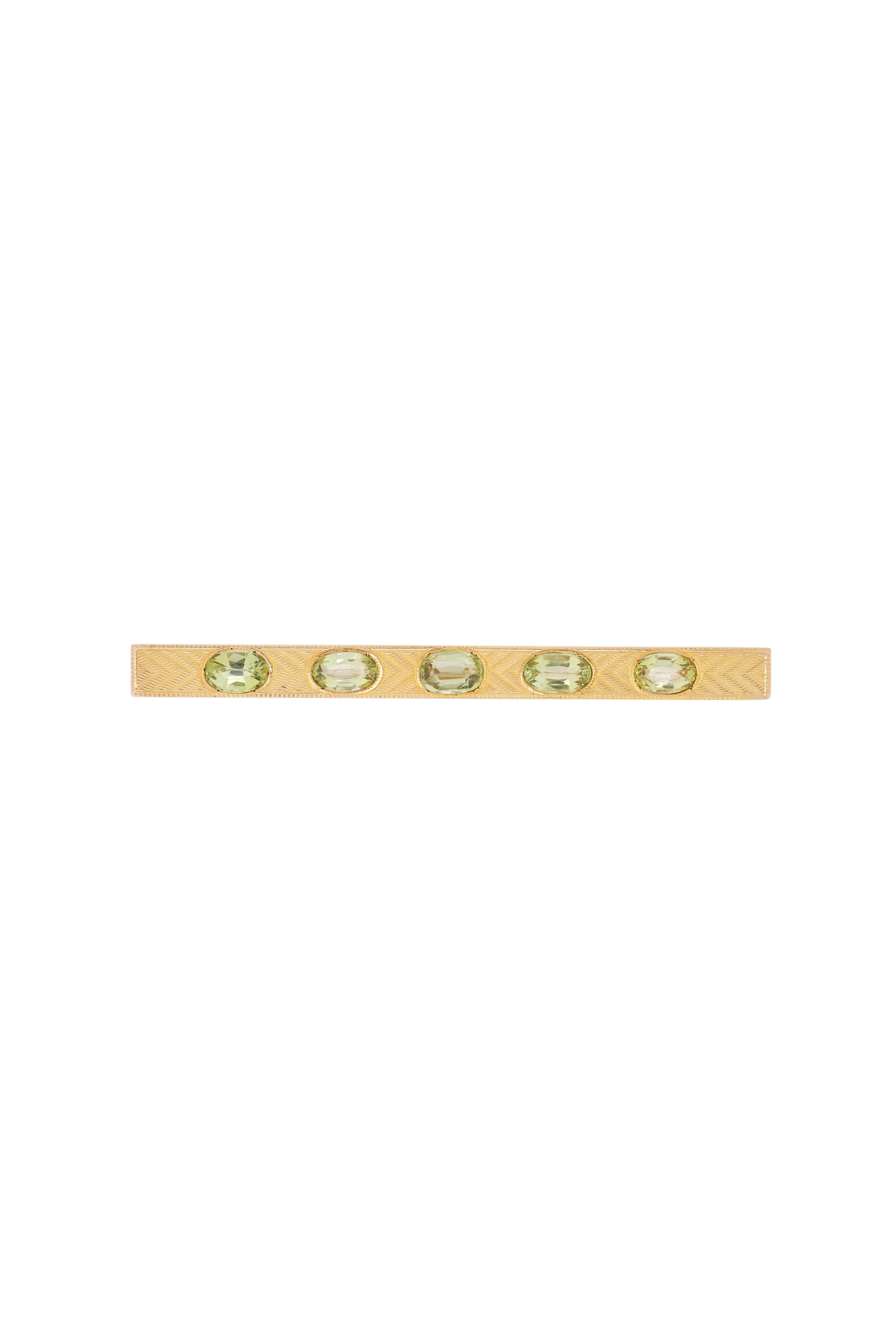 • Renee Lewis - 18k Yellow Gold Peridot Bar Brooch