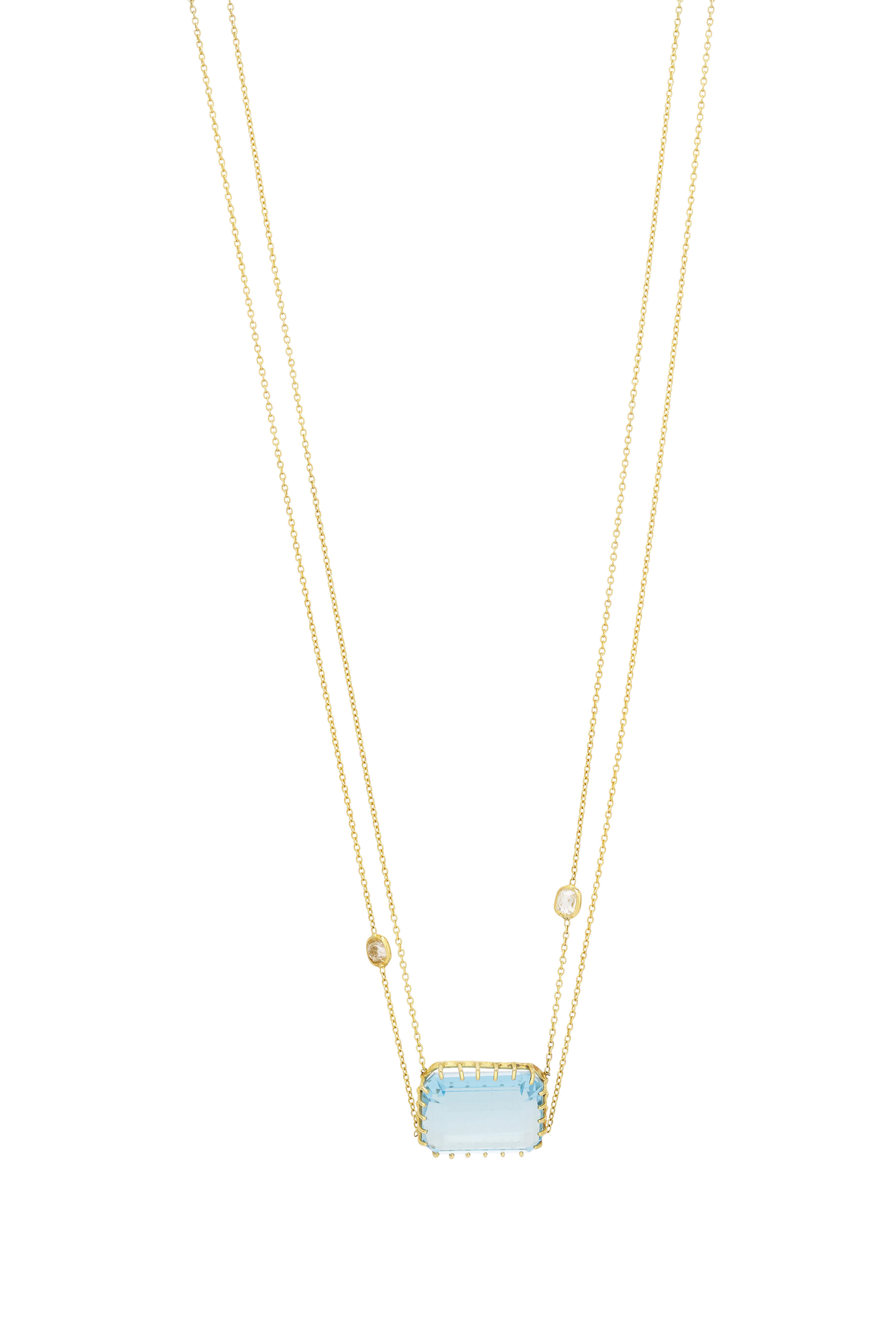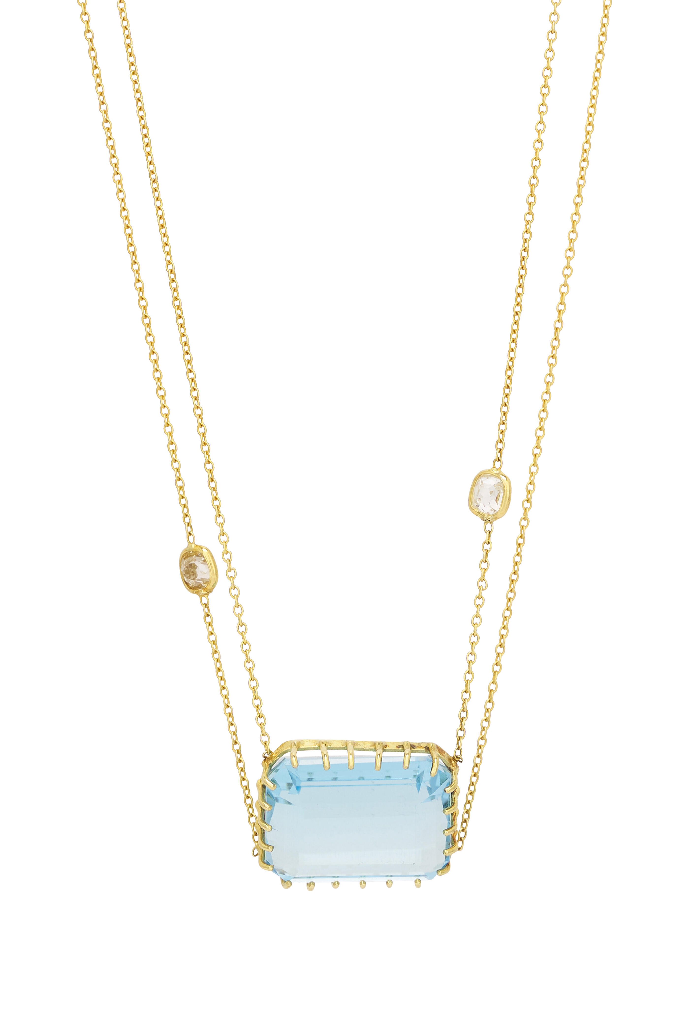 18k Yellow Gold Diamond & Blue Topaz Necklace
