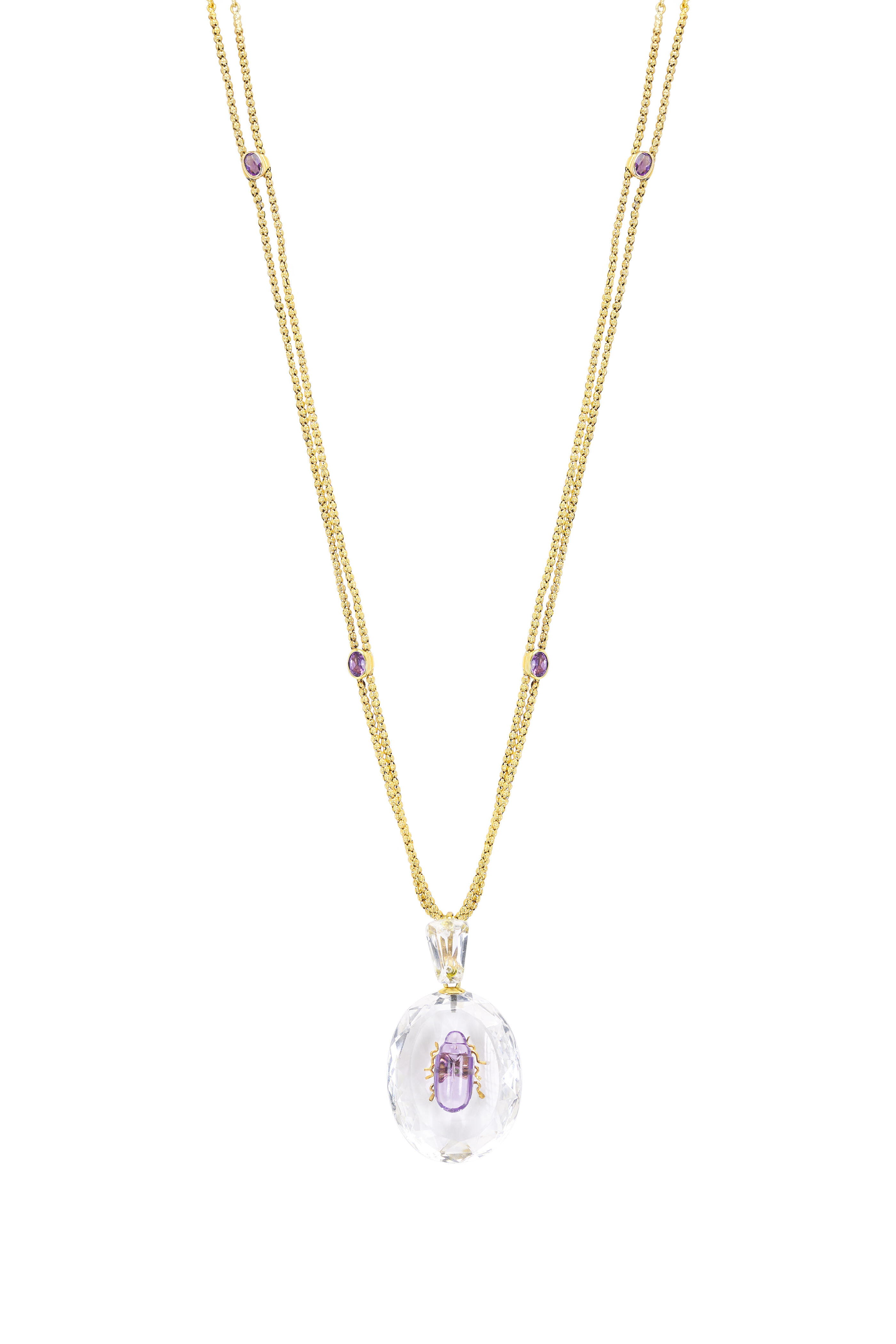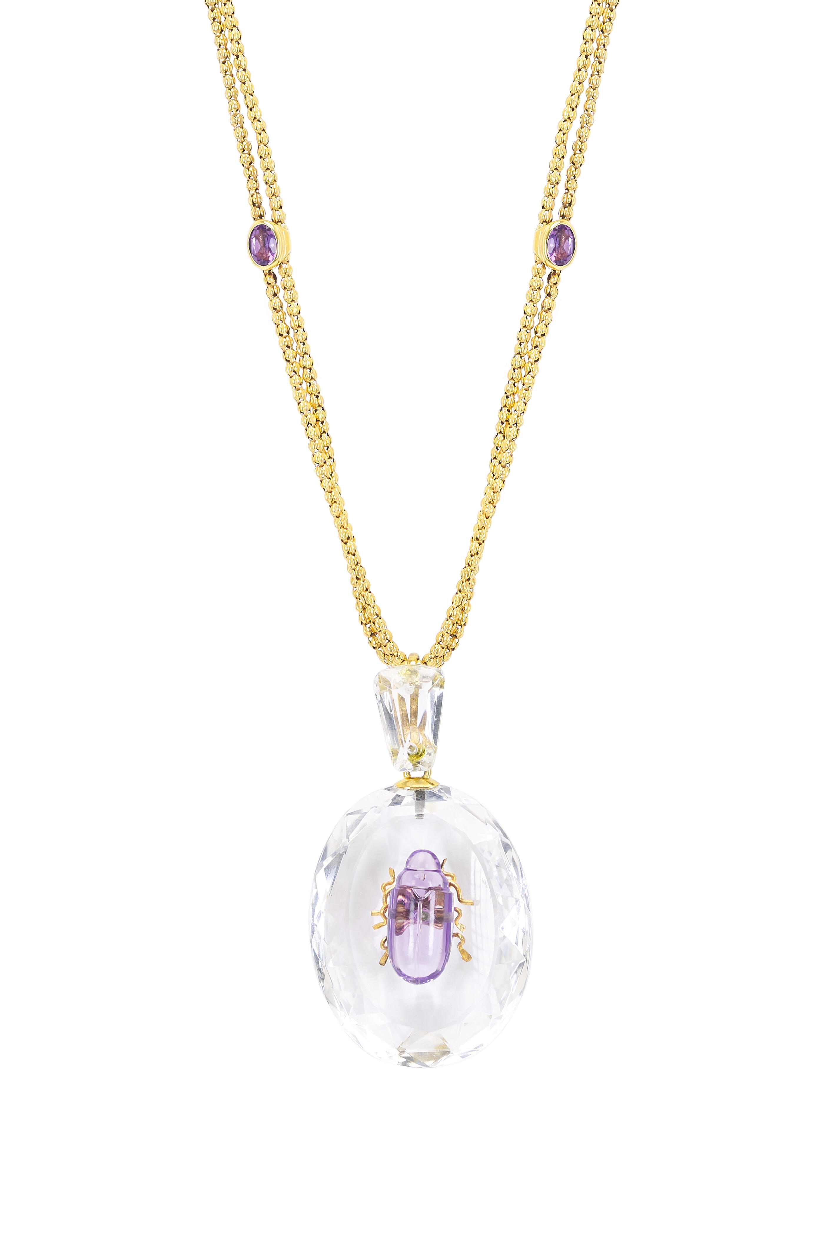 18k Yellow Gold. Amethyst. Rock Quartz.