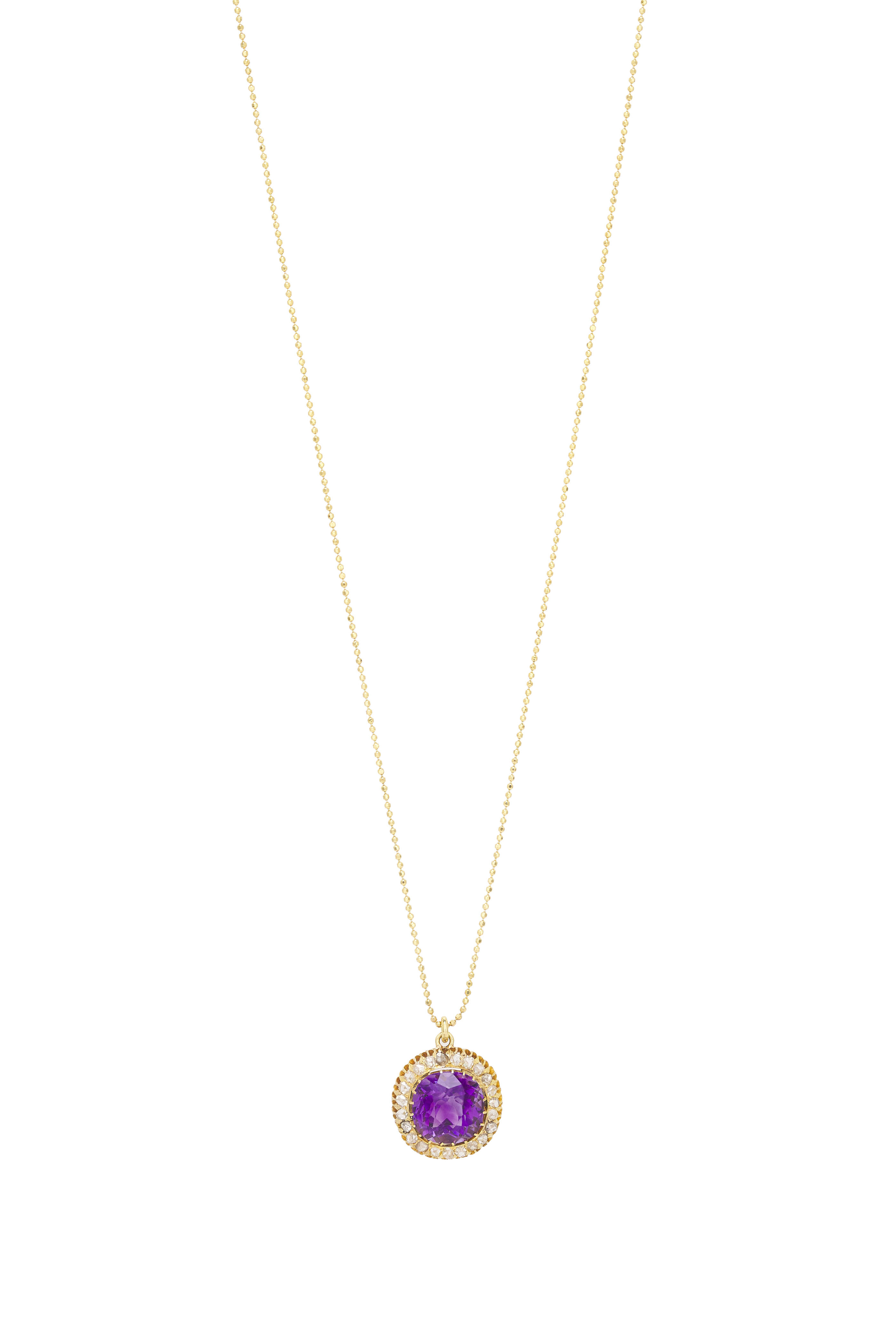 18k Yellow Gold. 1.5 ct Diamond Rimmed. 1.5 ct Amethyst.