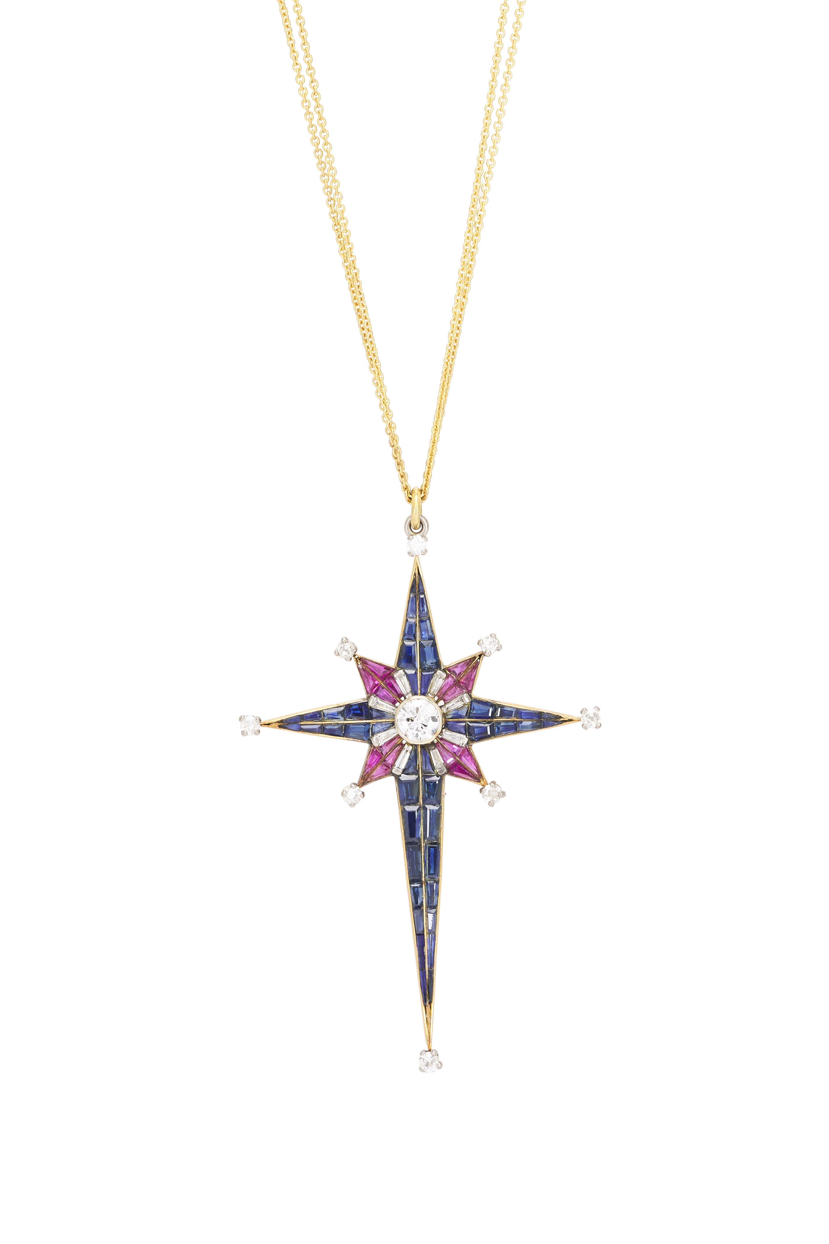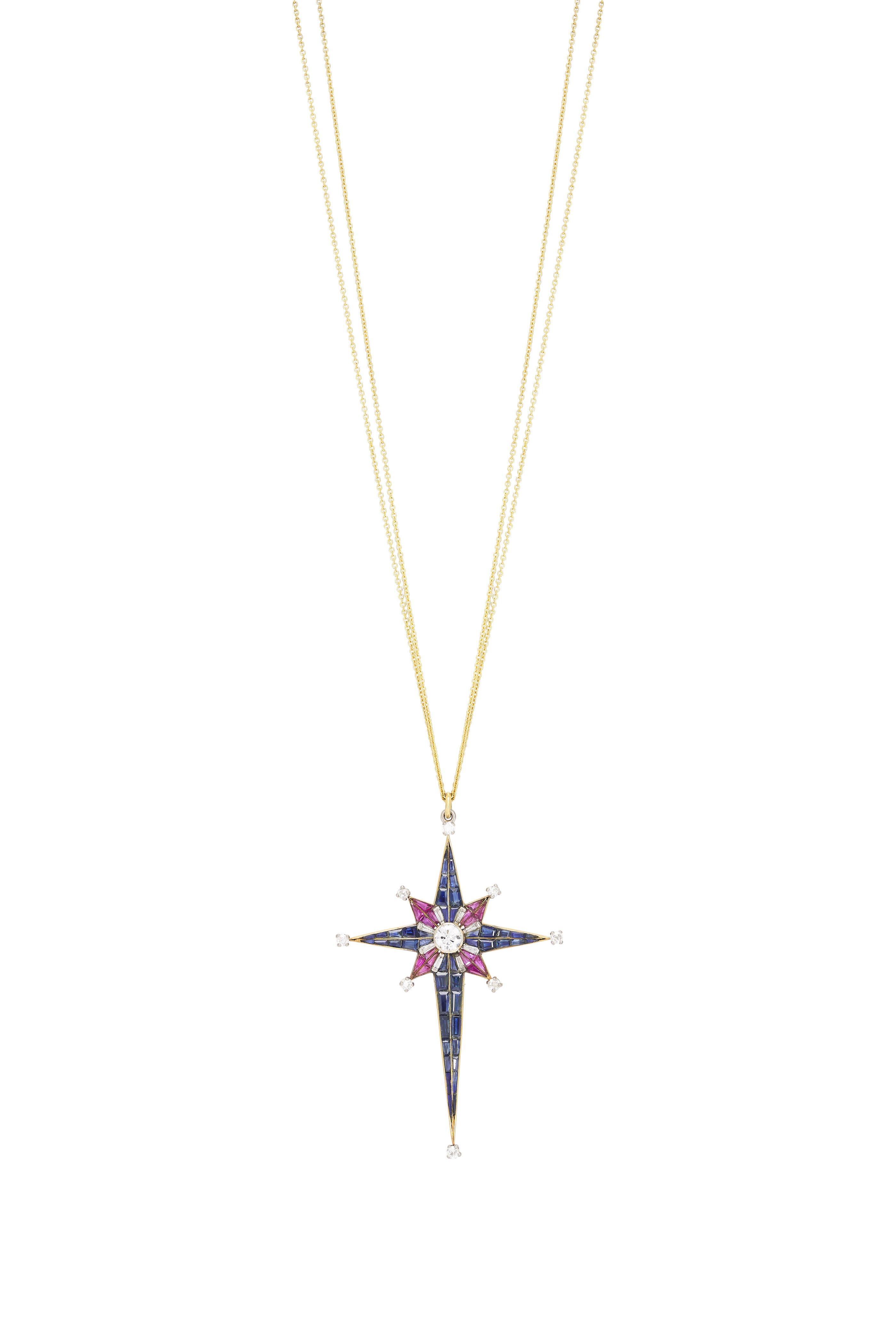 18k Yellow Gold Ruby & Diamond Starburst Necklace