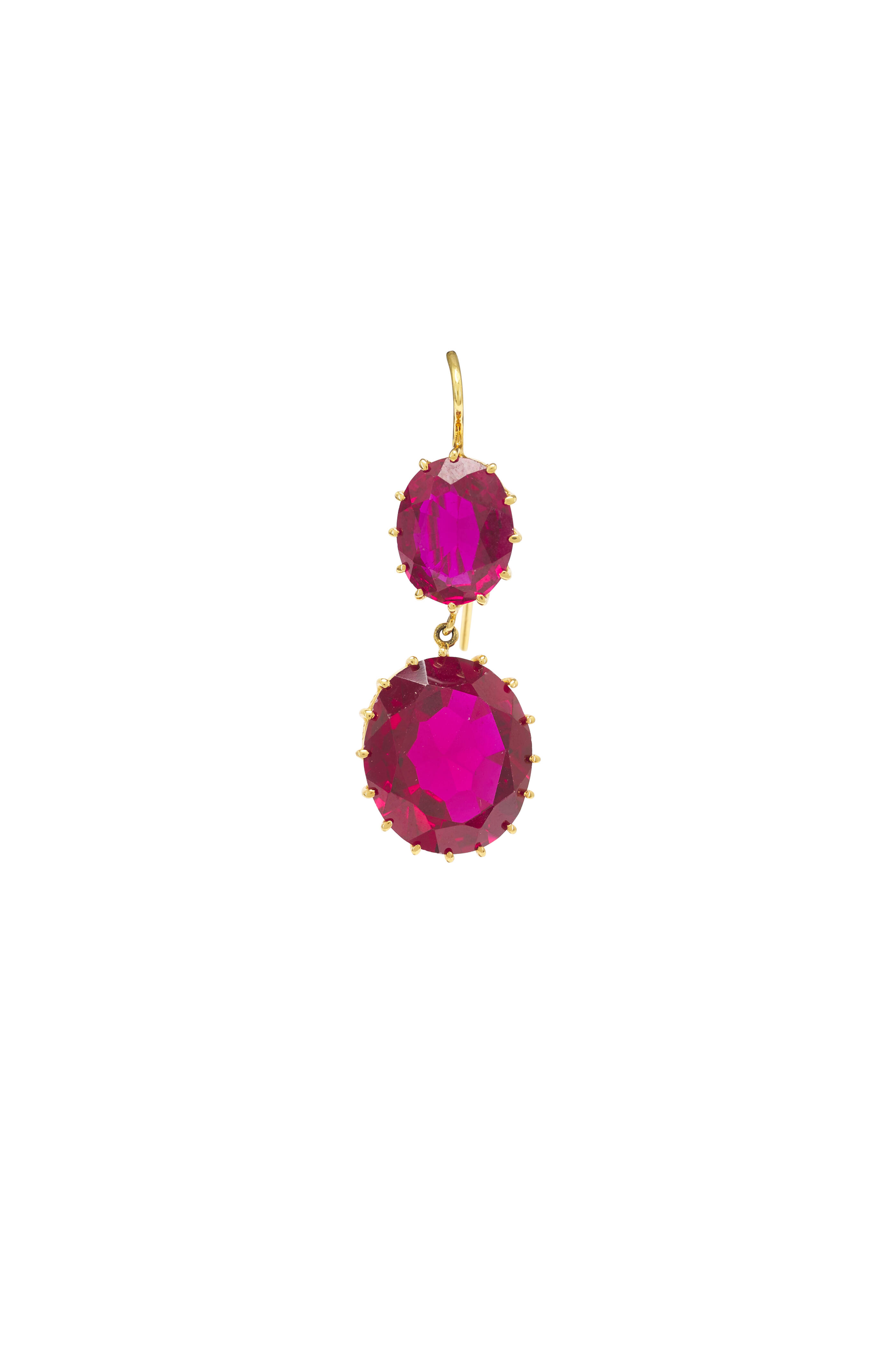 18k Yellow Gold Synthetic Ruby Drop Earring