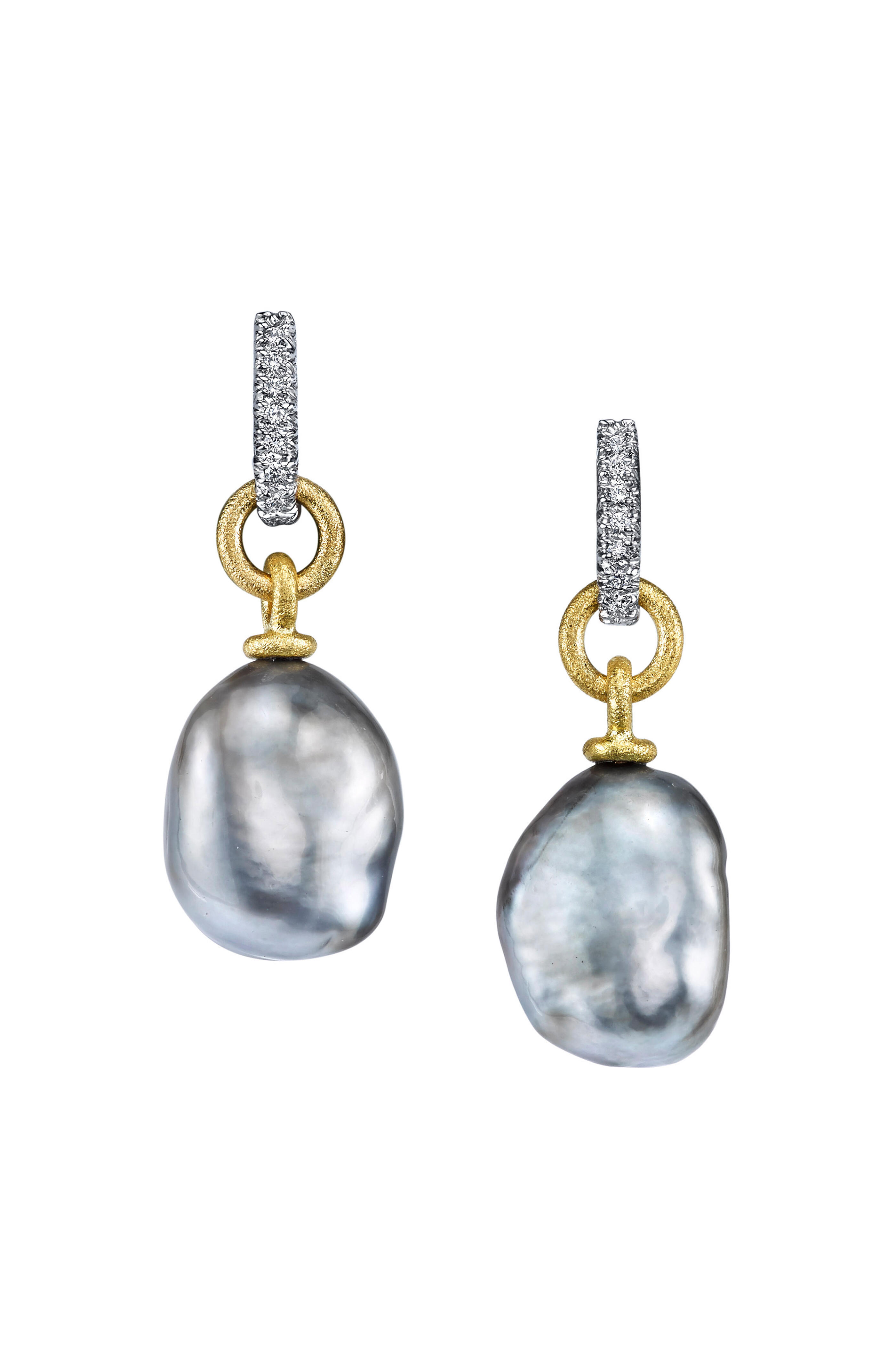 18k Gold Diamond & Baroque Pearl Drop Earring