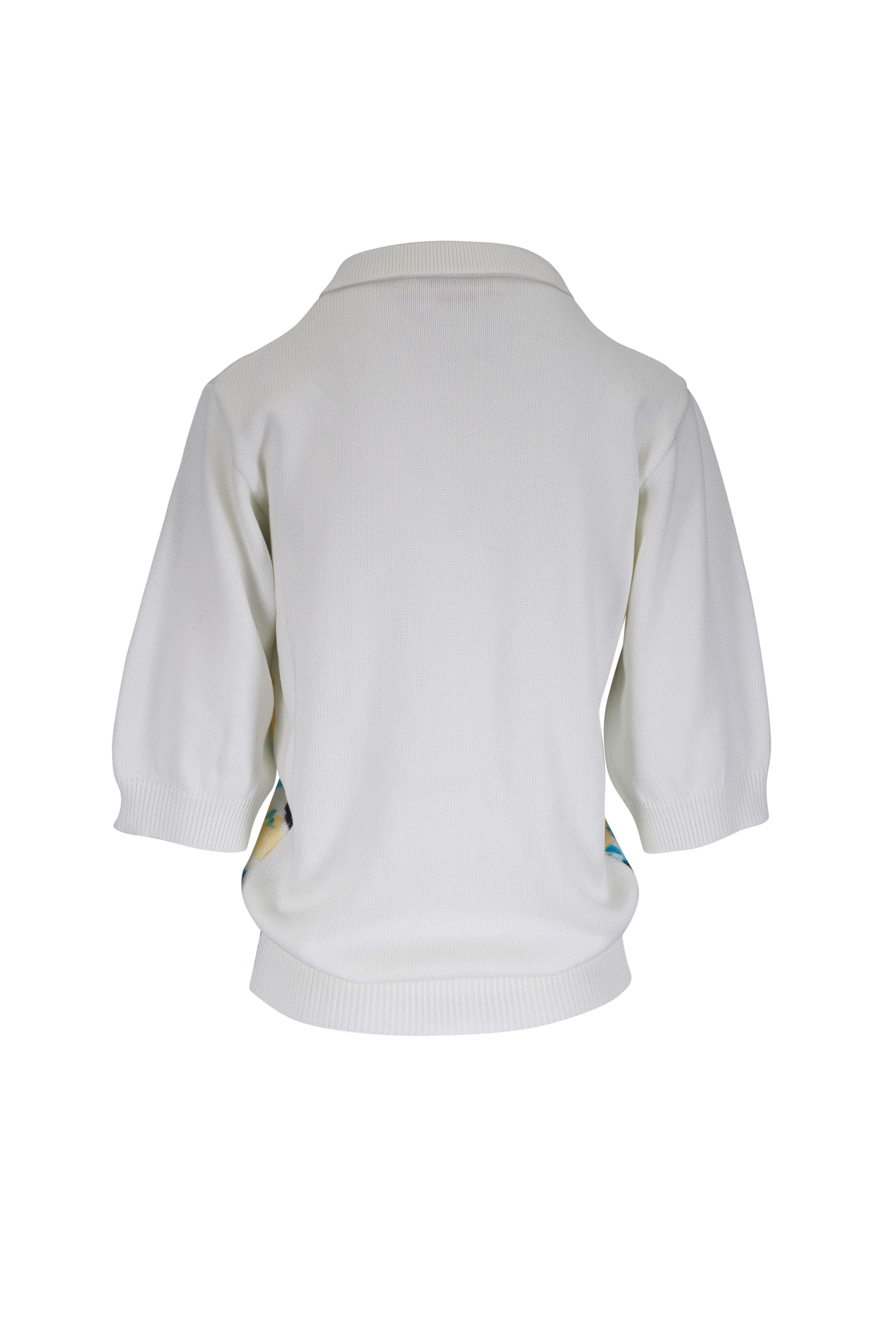 Spread collar. Front zip placket. Ribbed knit trim. Made in Italy. Approx. 23" shoulder to hem (measurements from size 4). 100% cotton. Dry clean.