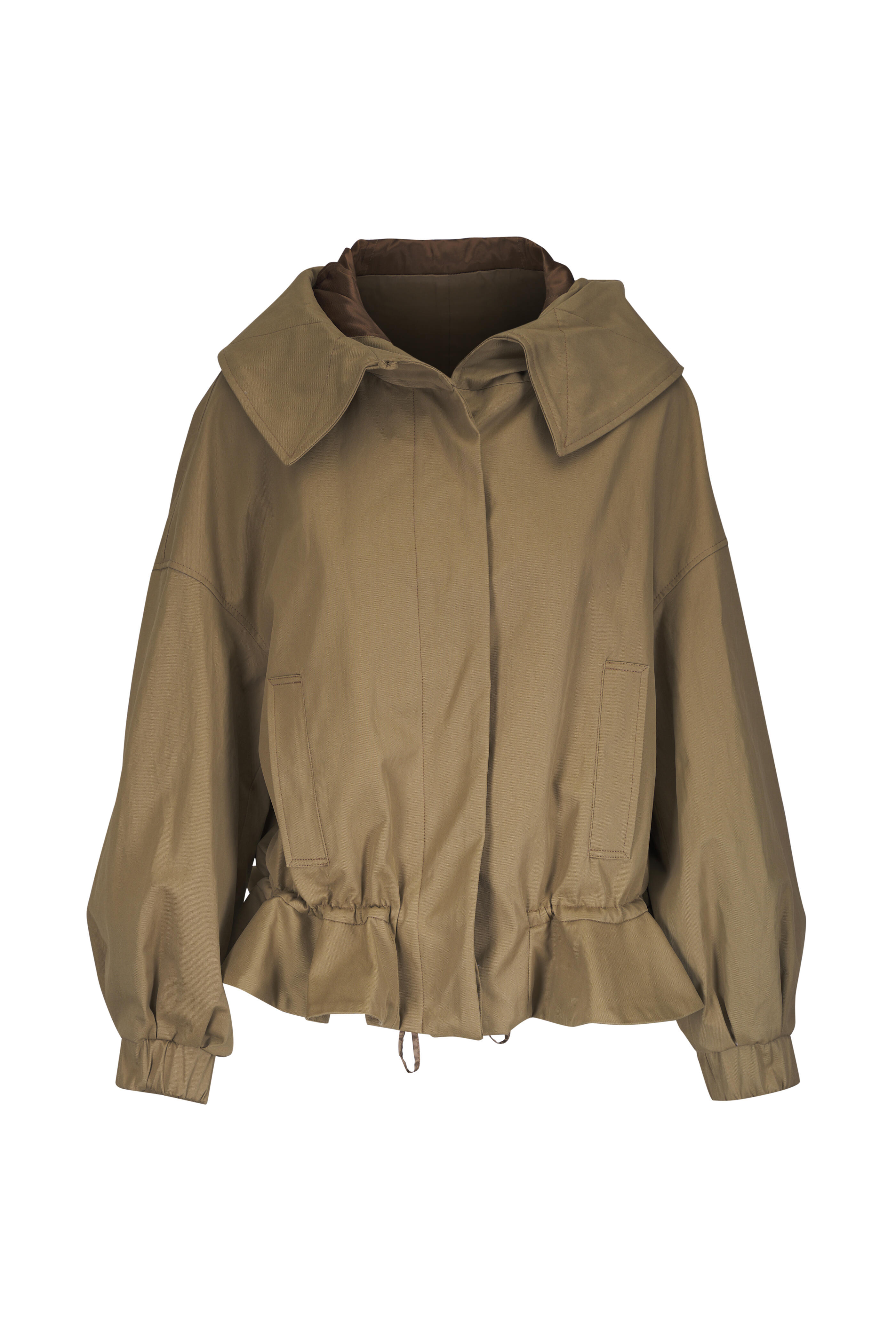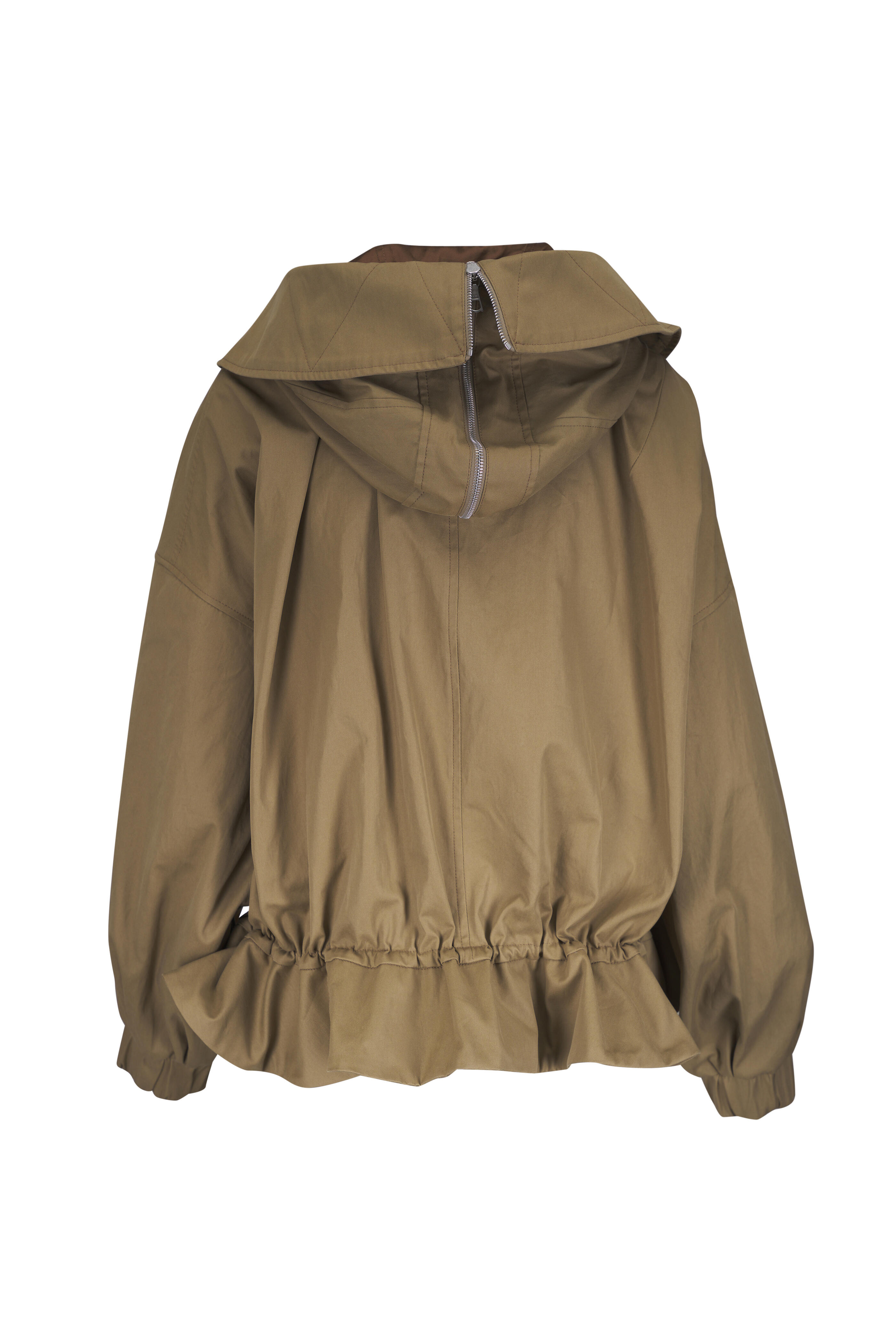 Khaki Gathered Cotton-Twill Hooded Jacket