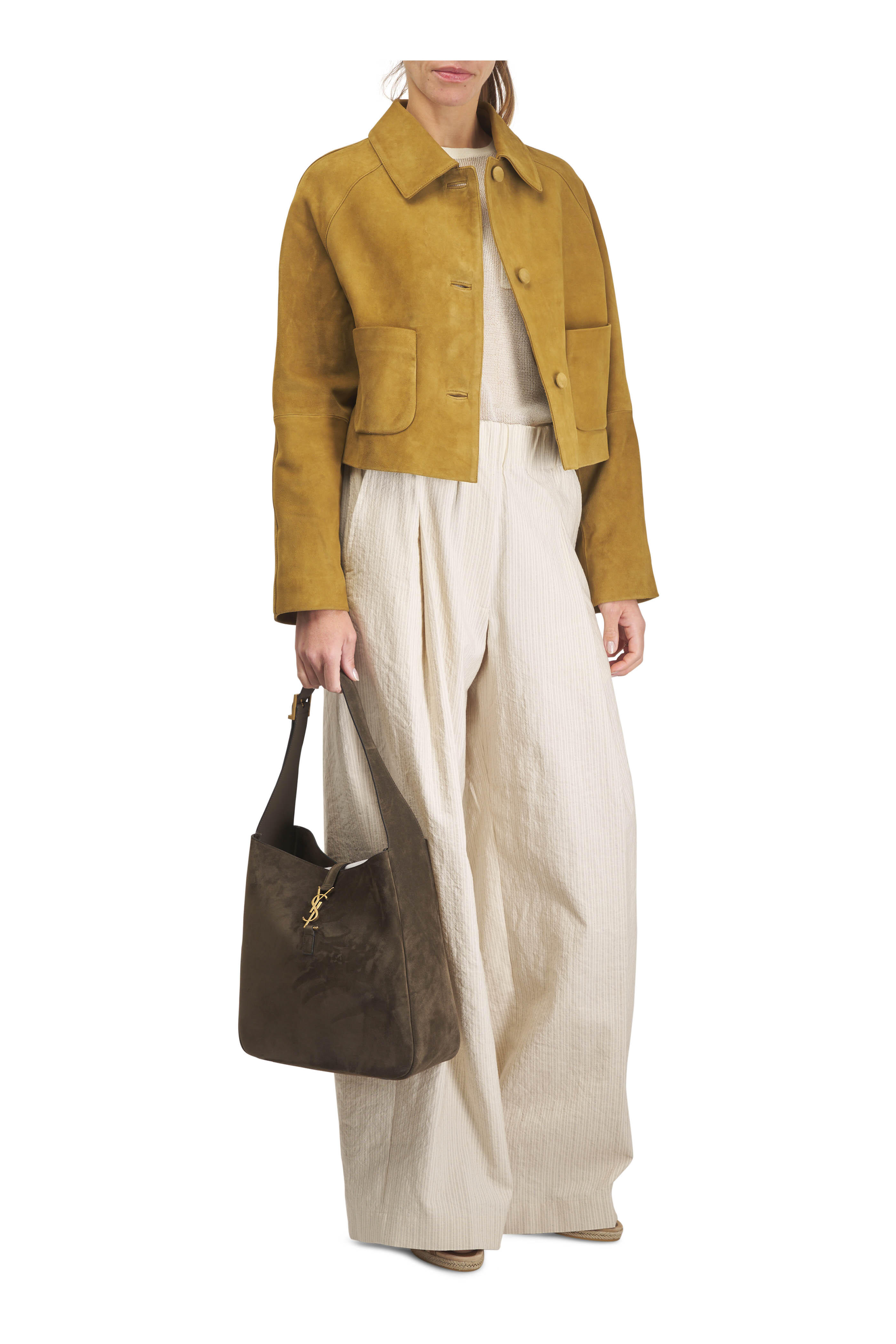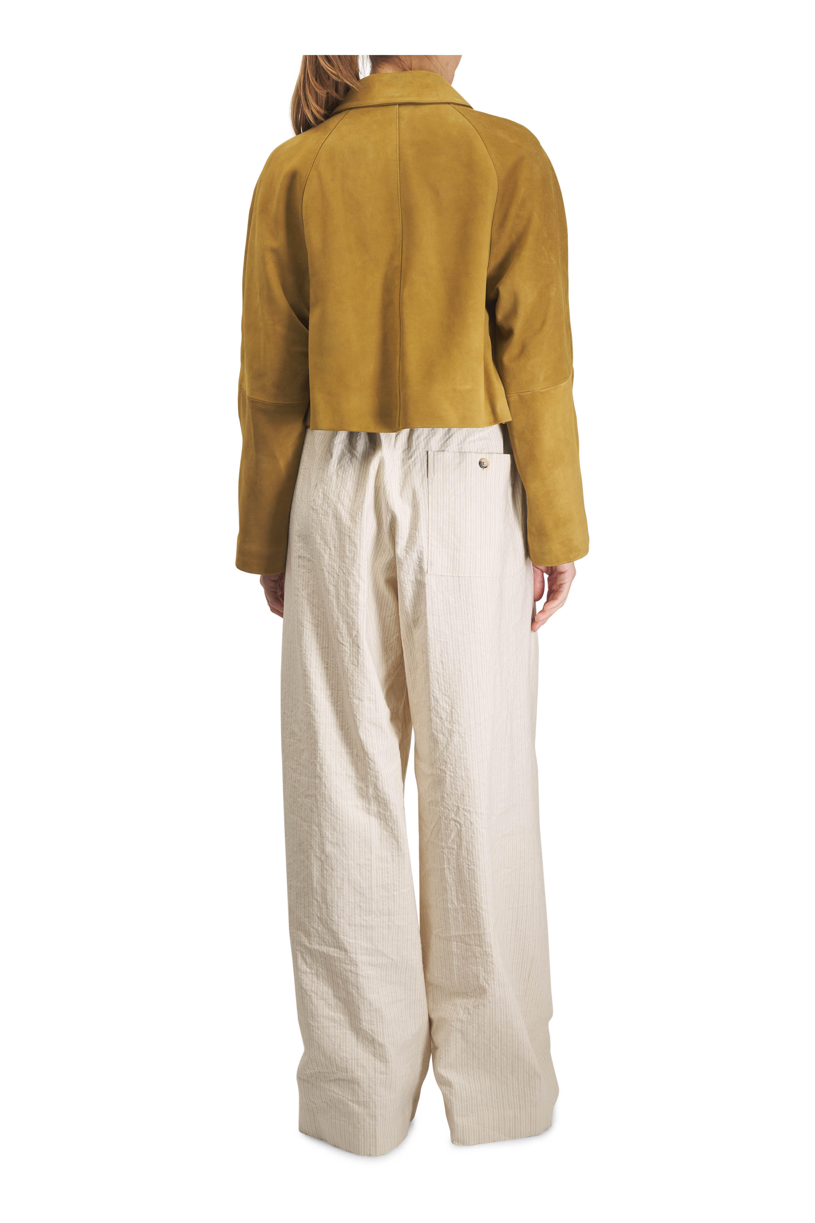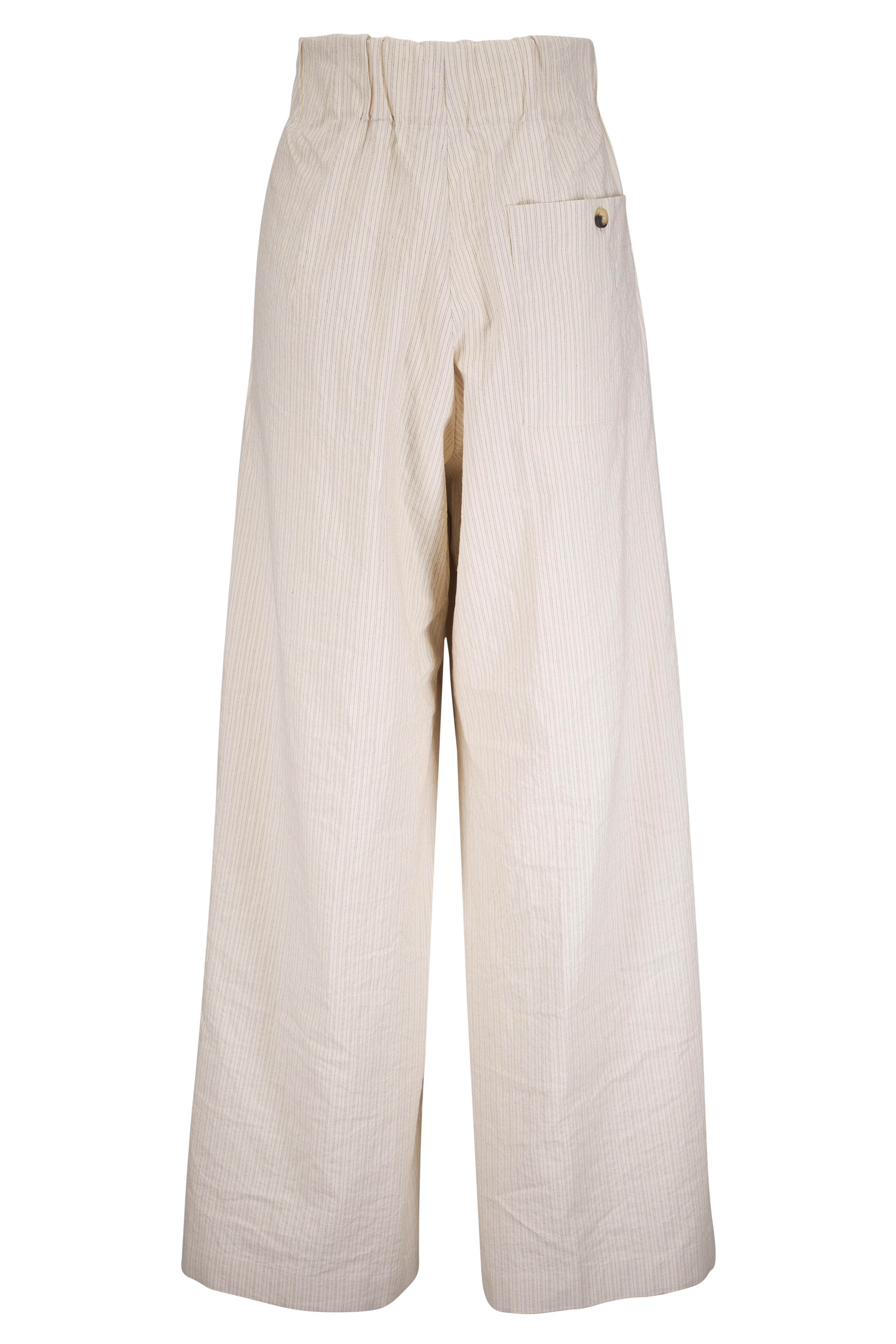 Elasticized waist; internal drawstring. Pull on style. Front slip pockets; back patch pocket. Imported. 33" inseam. 74% cotton, 26% paper yarn. Dry clean.