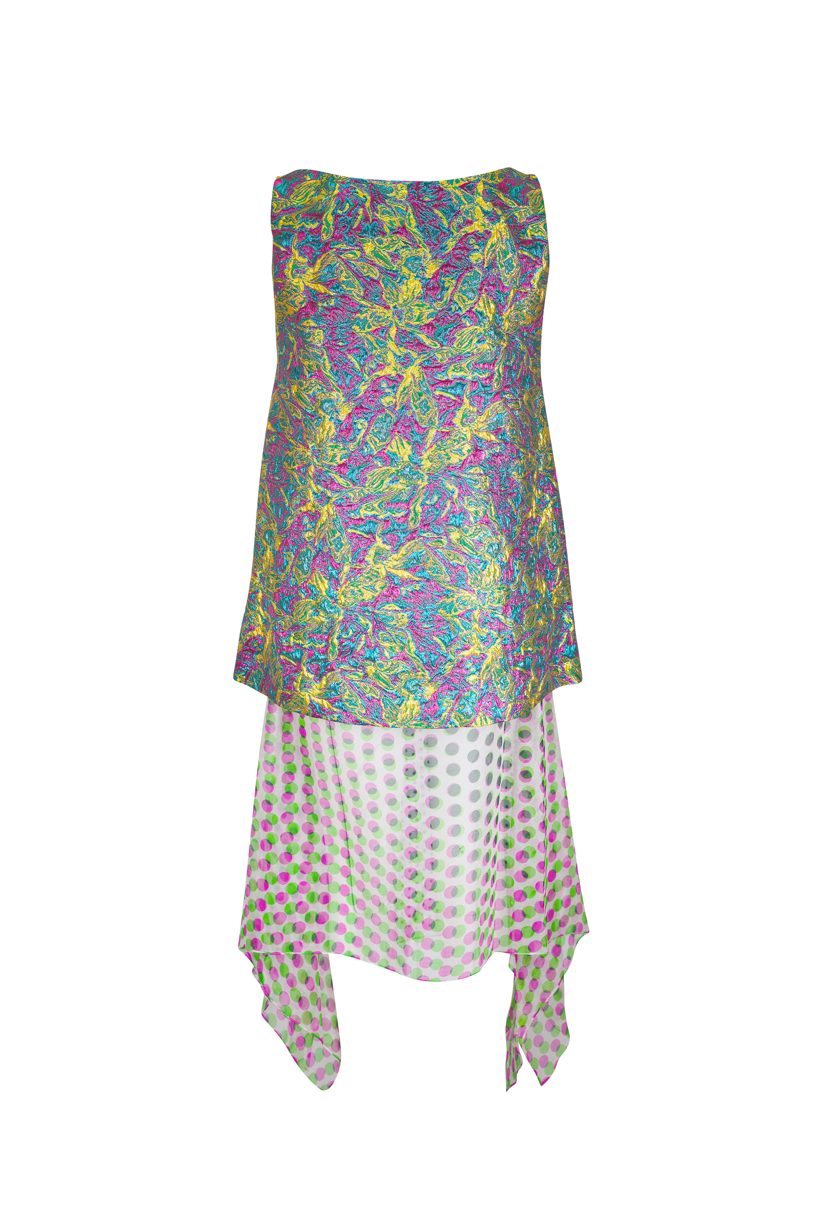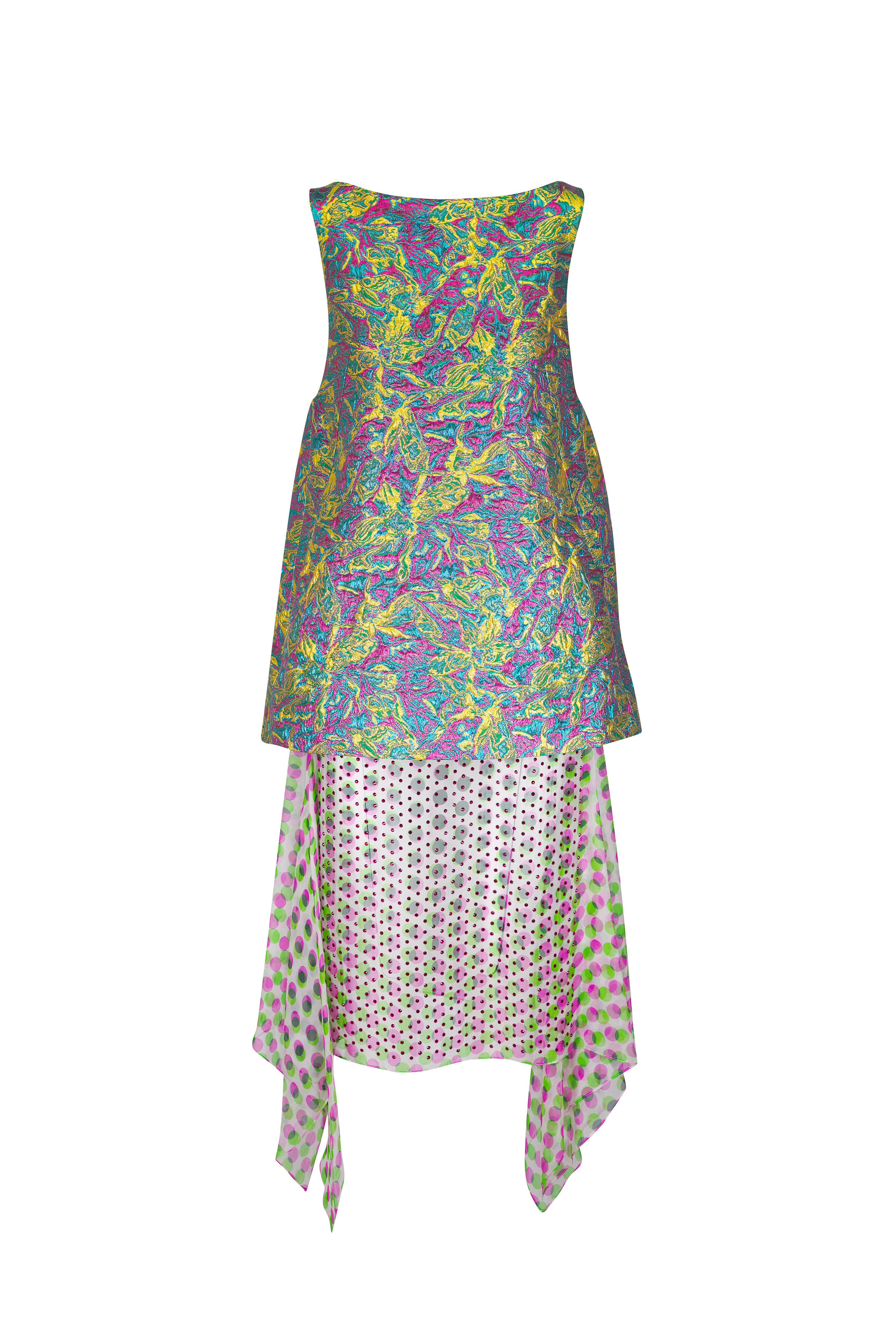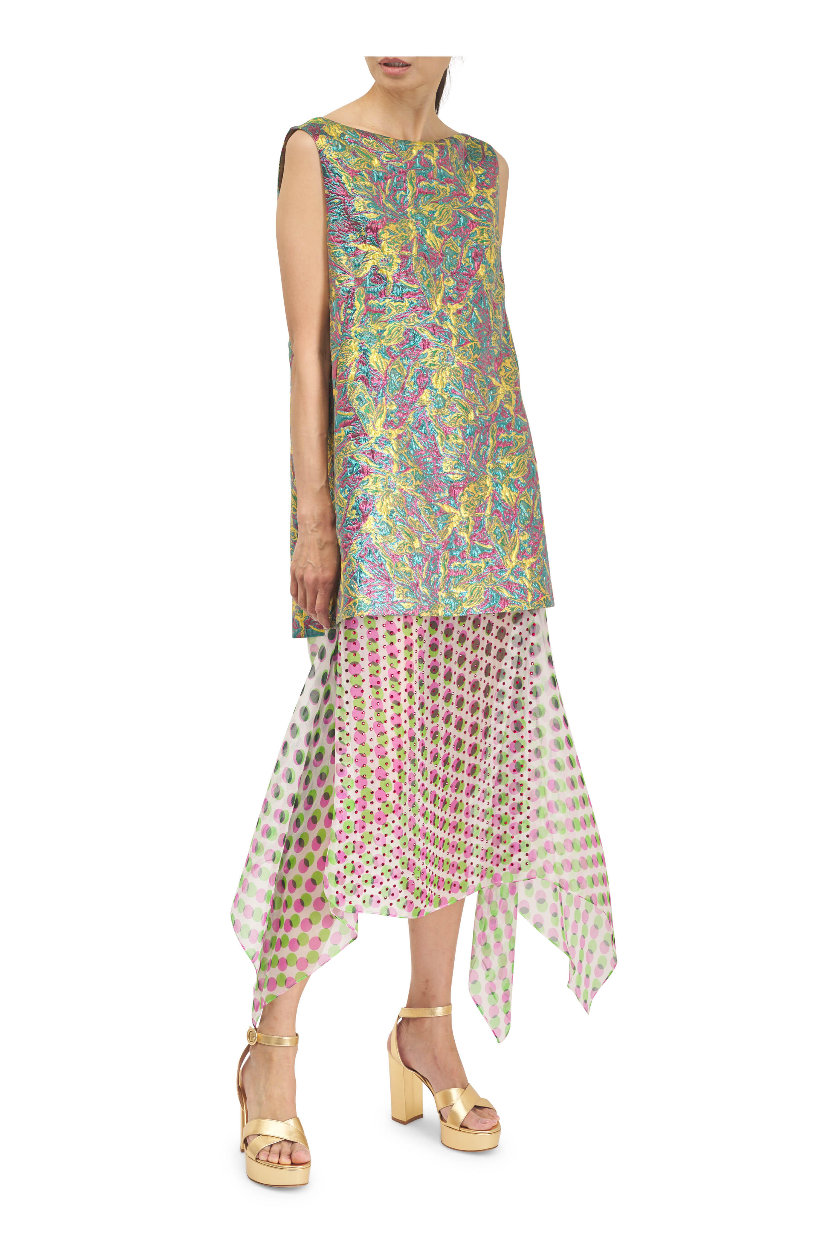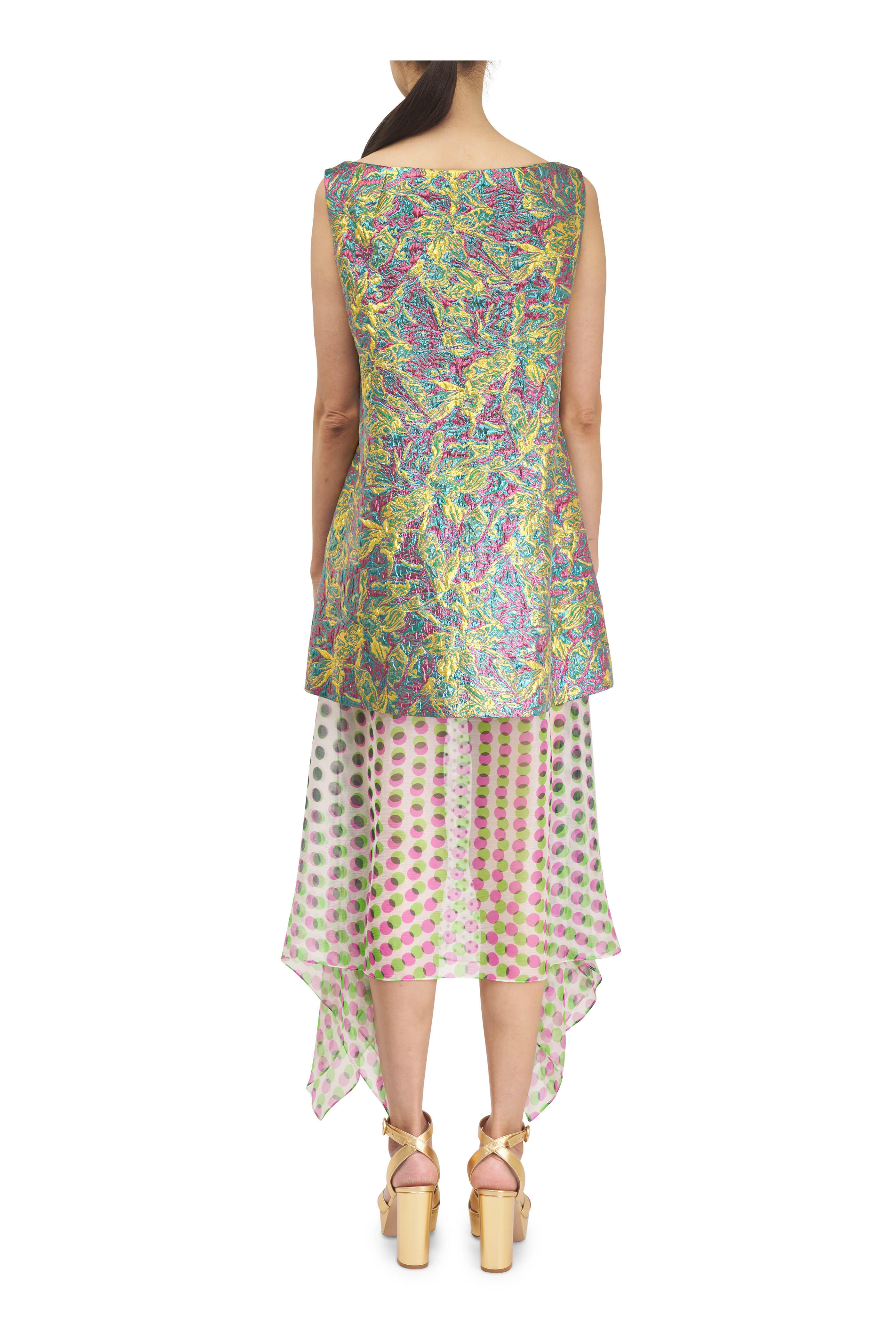 Dabel Lemon Multi Floral Jacquard Lamé Dress