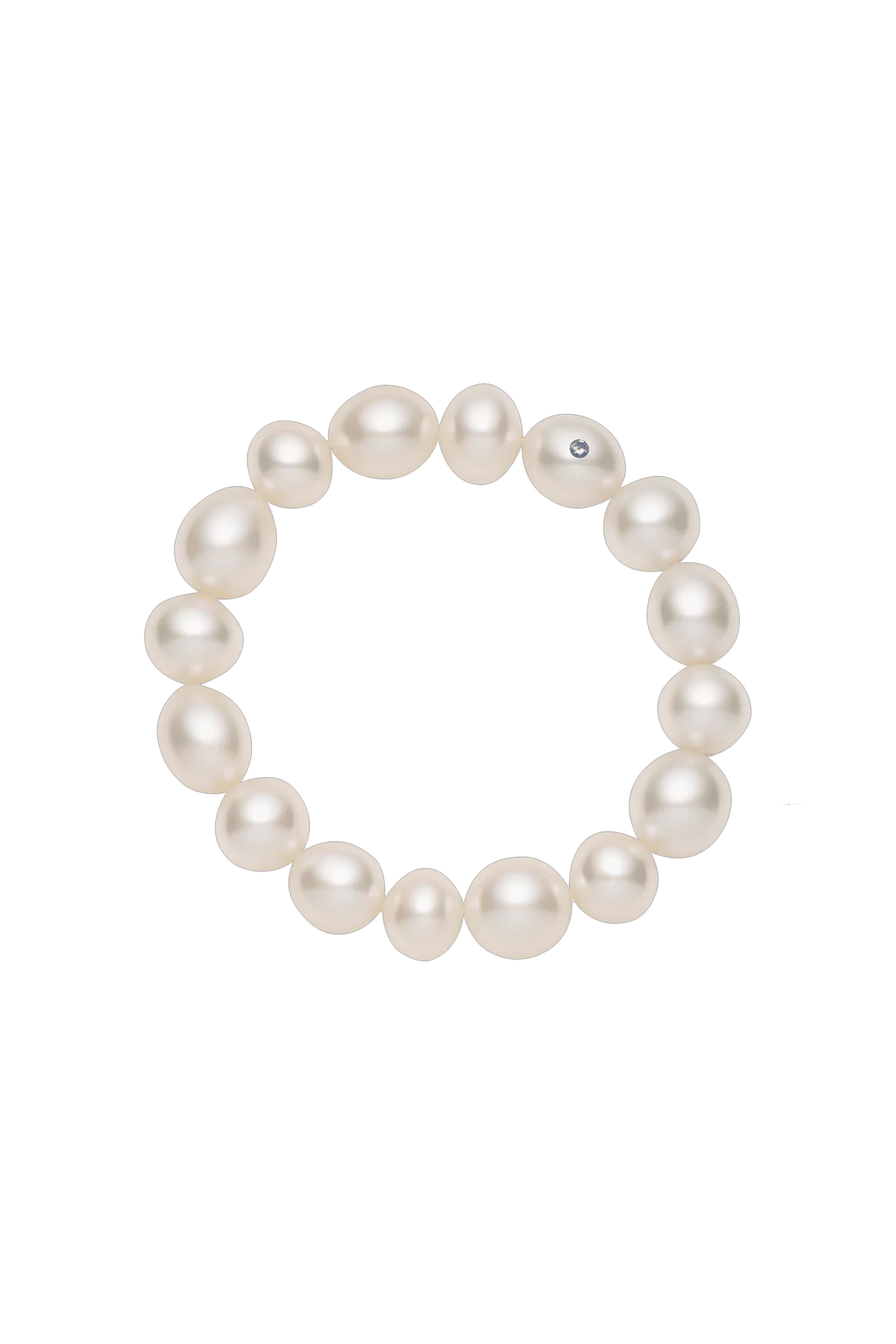 Blue sapphire. Australian South Sea Pearl. Mixed shape pearls. Beaded. Stretchy. Inspired by the rhythm of the ocean and the cyclical process of the tides. Made in Australia. Pearl size: 11mm-12mm.