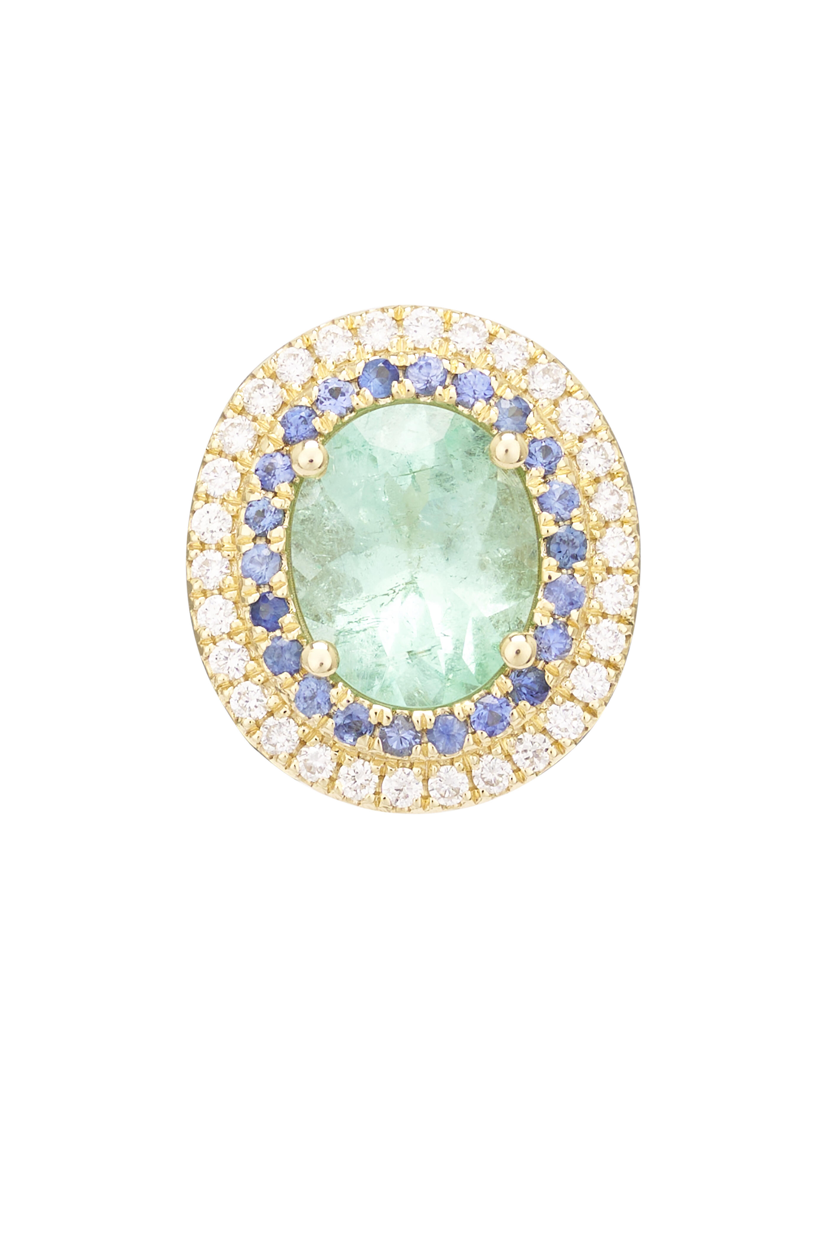 14k Yellow Gold. Diamond Pave. 3.12 ct Emerald. 0.39 ct Sapphire.