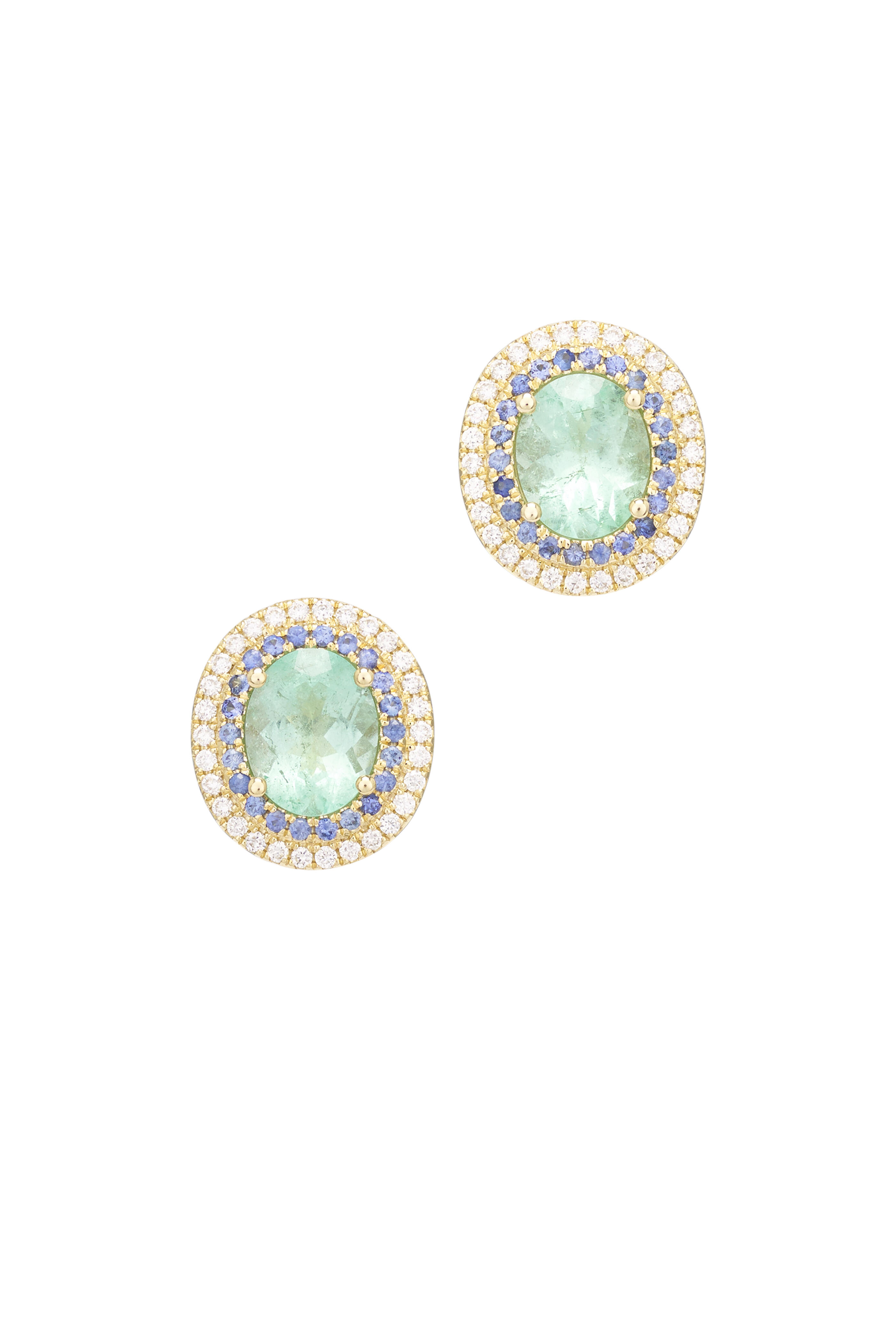 14k Yellow Gold Emerald & Sapphire Diamond Earring