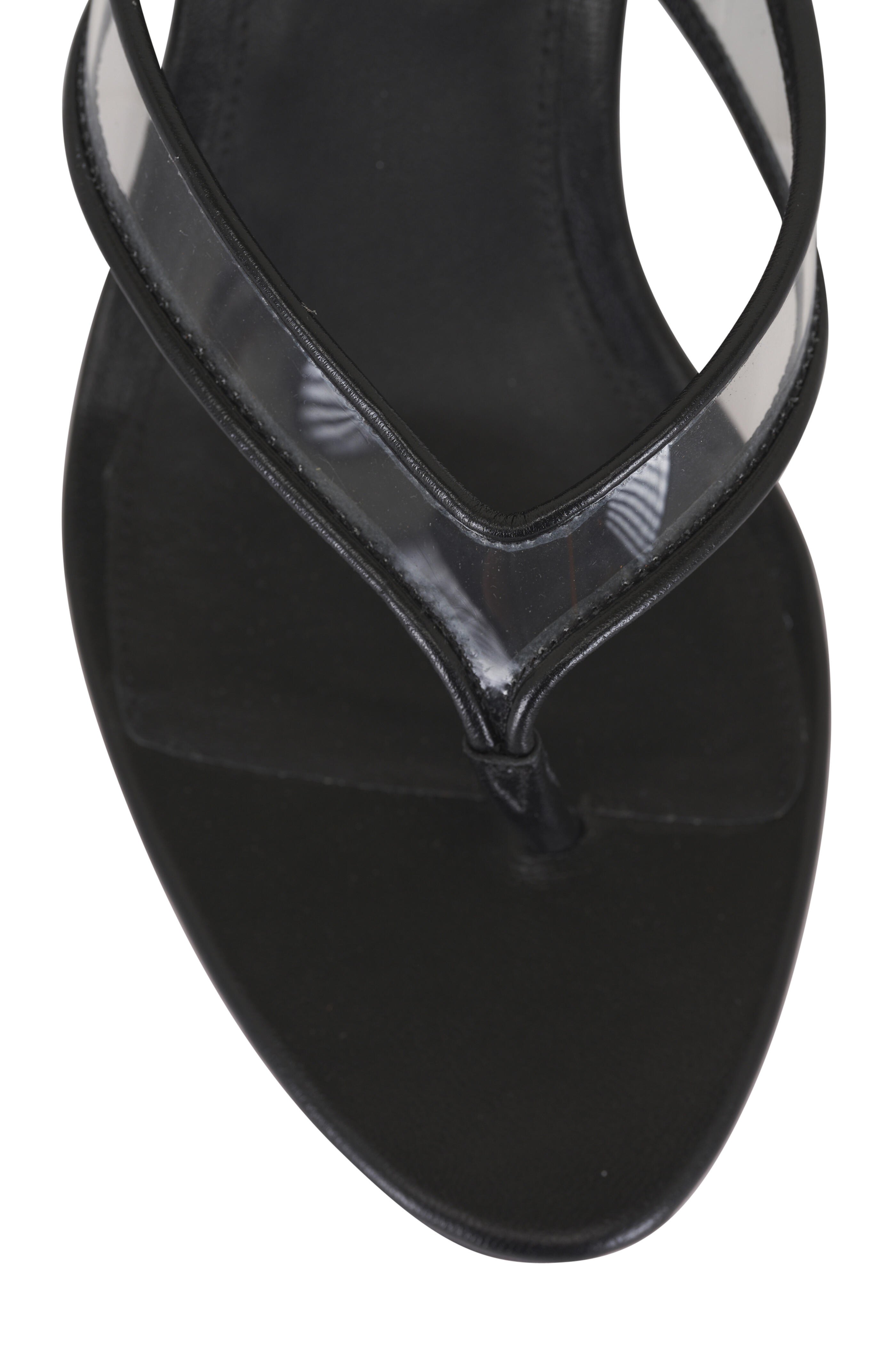 Leather and pvc upper. Open toe; thong strap. Slip on style. Leather lining. Leather sole. Made in Italy. Heel measurement: 50mm.