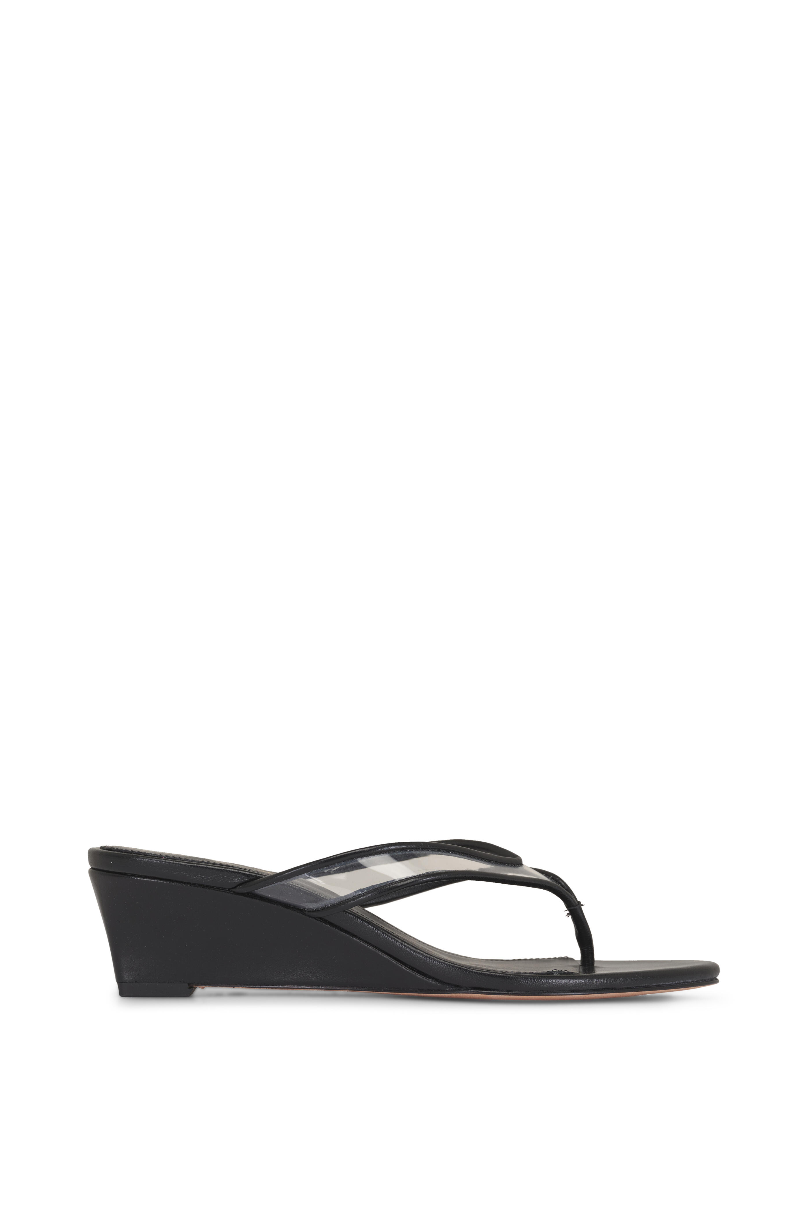 Clea Clear & Black Leather Wedge Sandal, 50mm