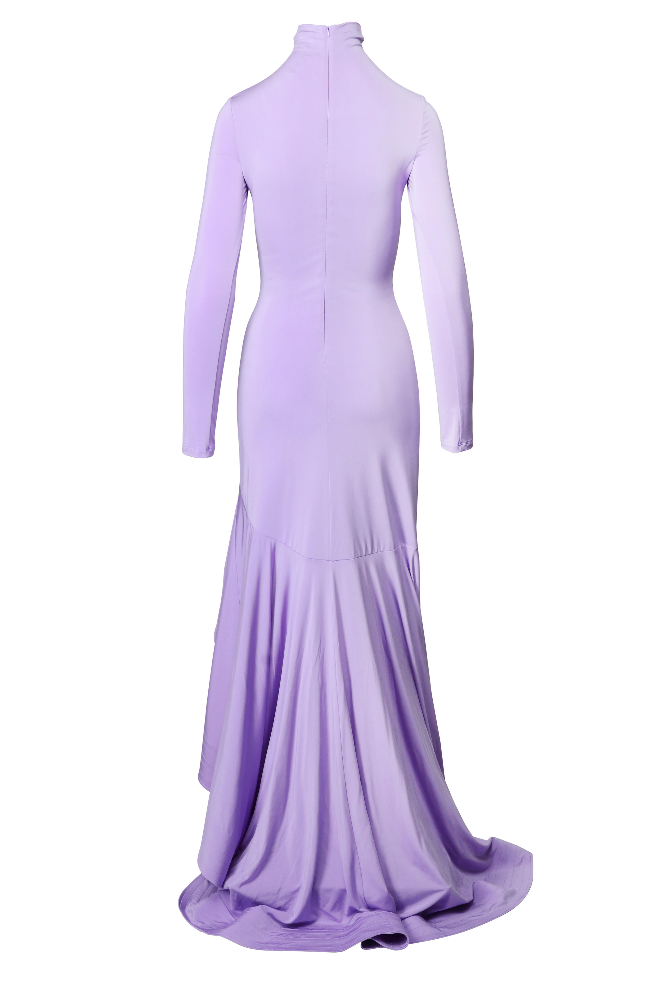 Turtleneck. Invisible back zip. Long sleeves. Trumpet silhouette. Floor sweeping hem. Made in Italy. Back length: 173cm. 88% viscose, 12% elastane. Dry clean.