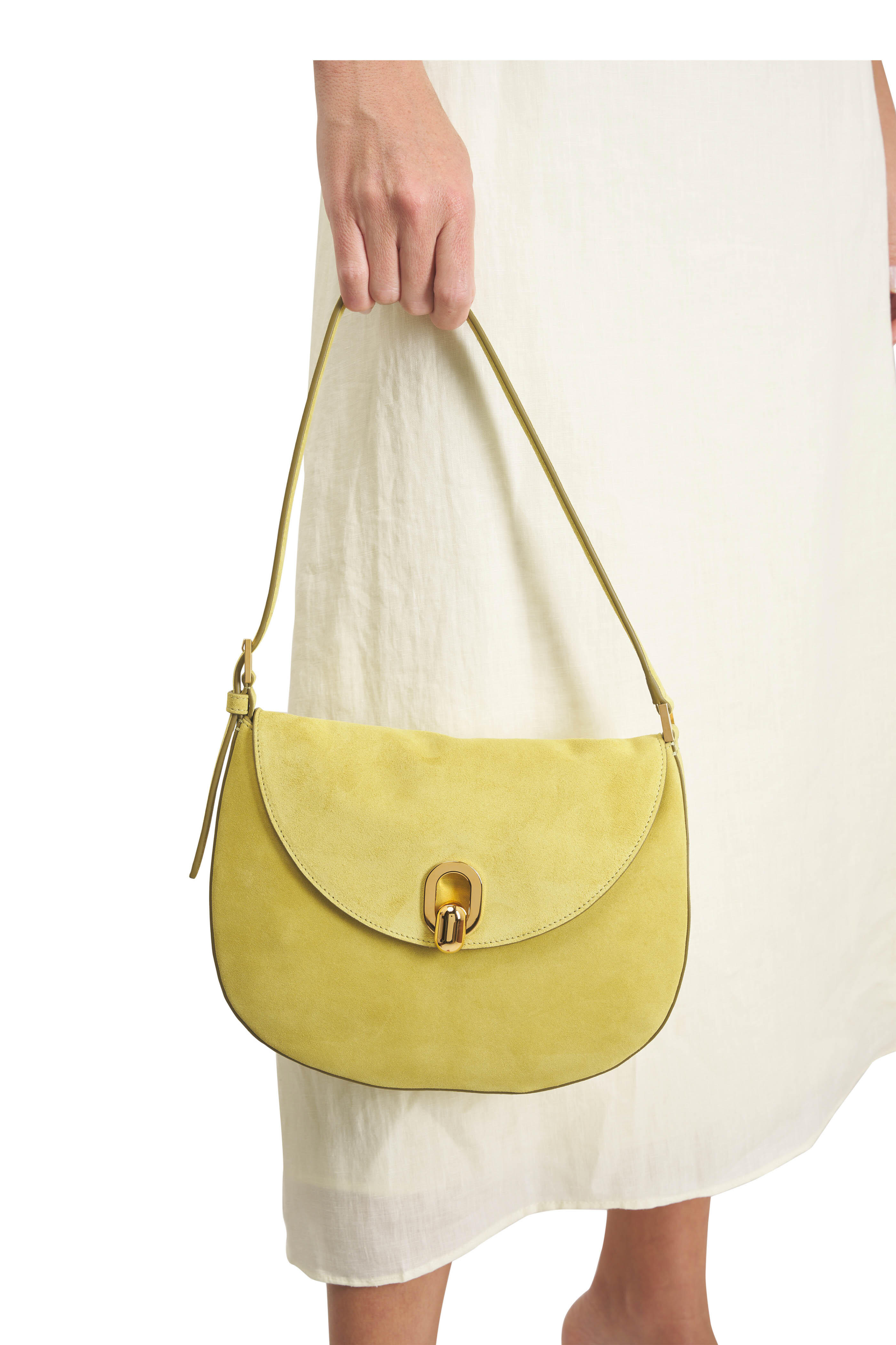 Small Tondo Chartreuse Suede Hobo Bag