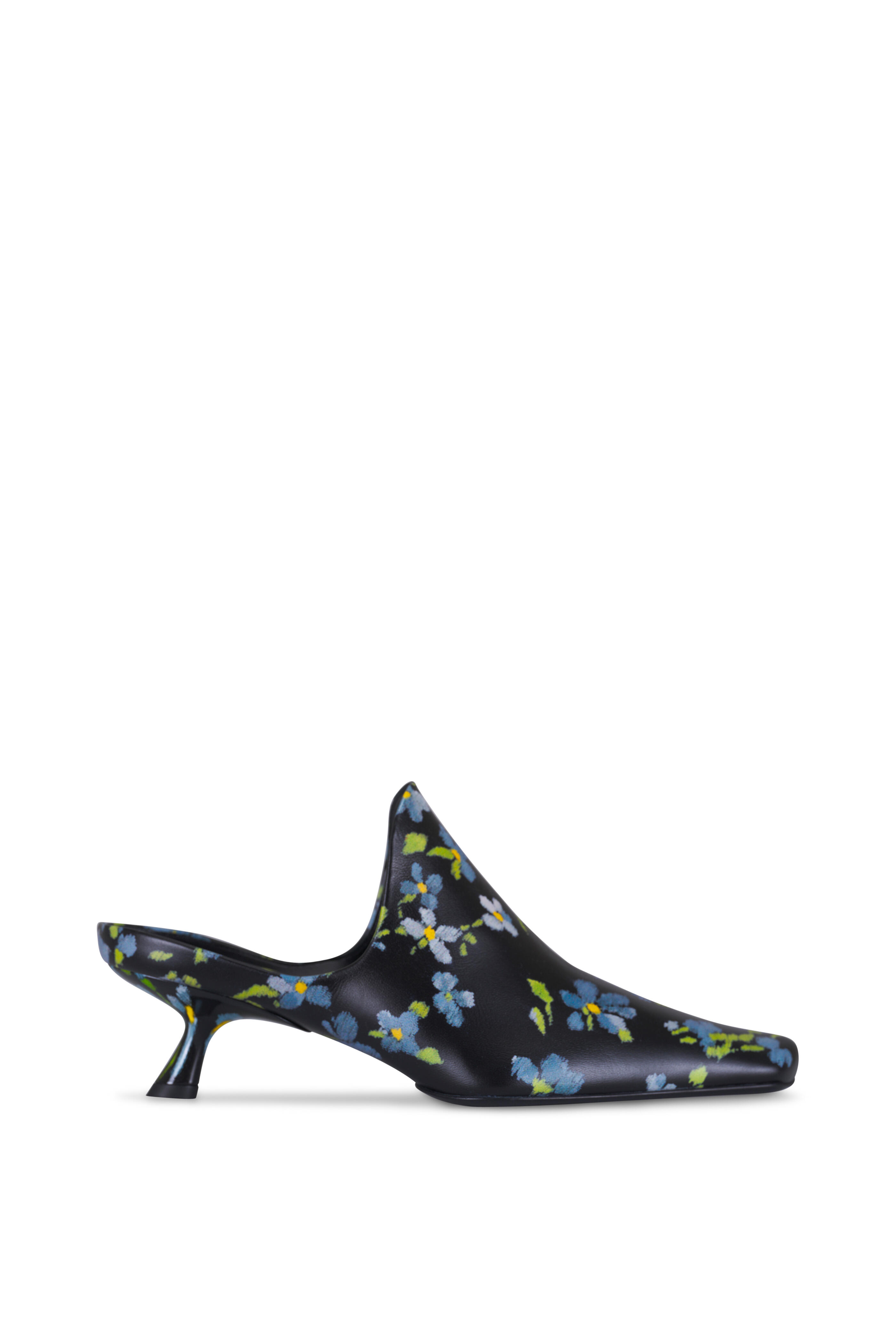 Emily Black & Blue Floral Leather Mule, 45mm