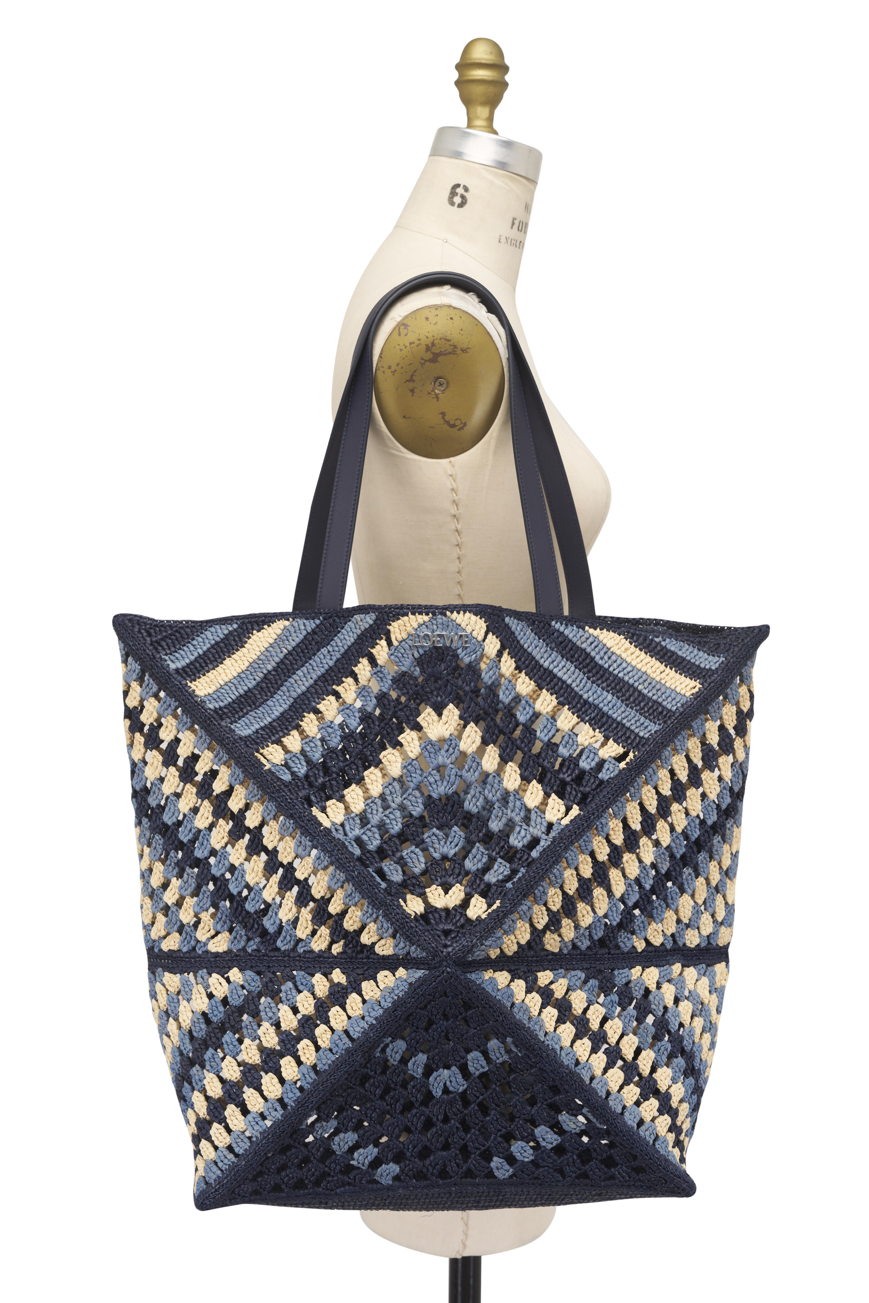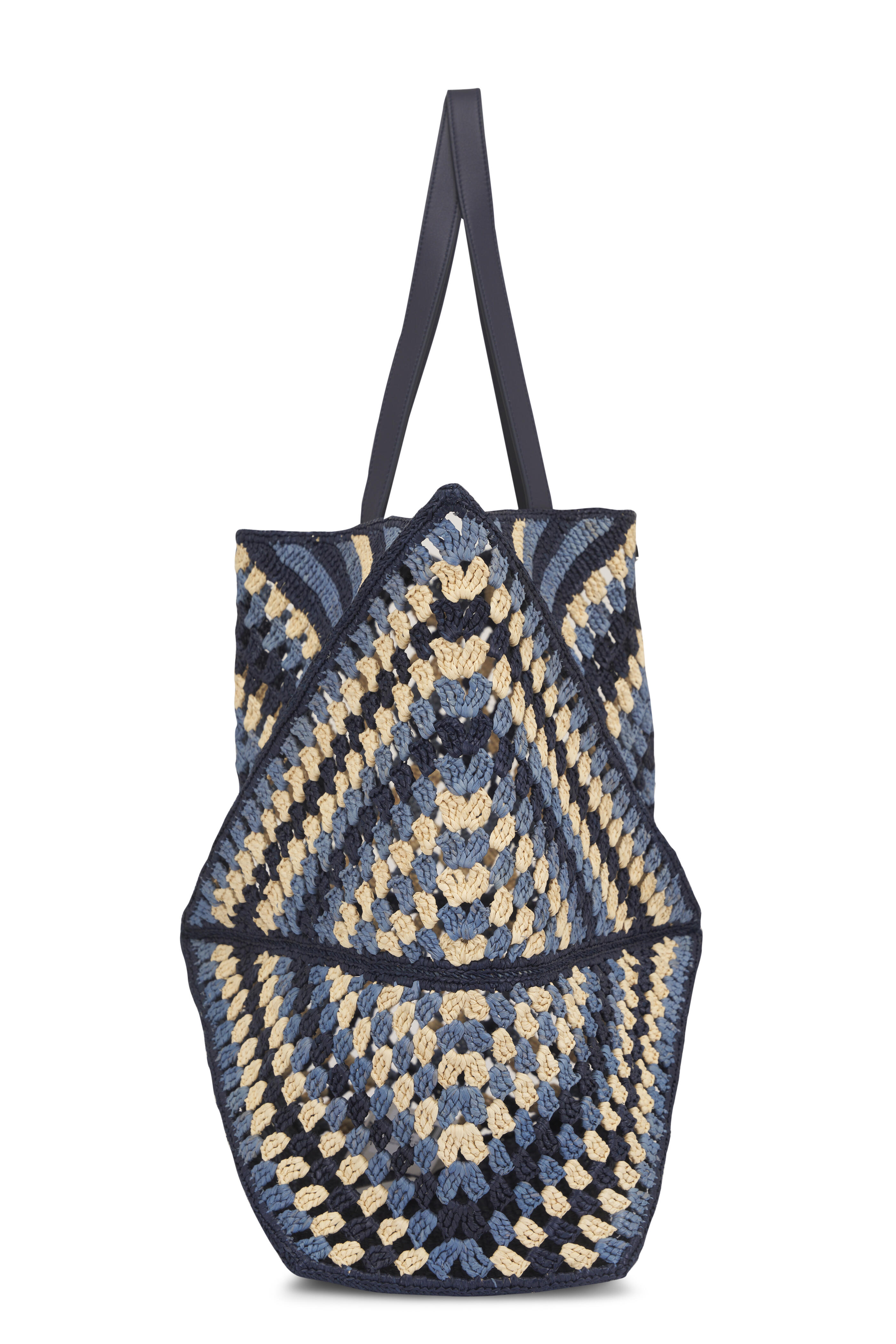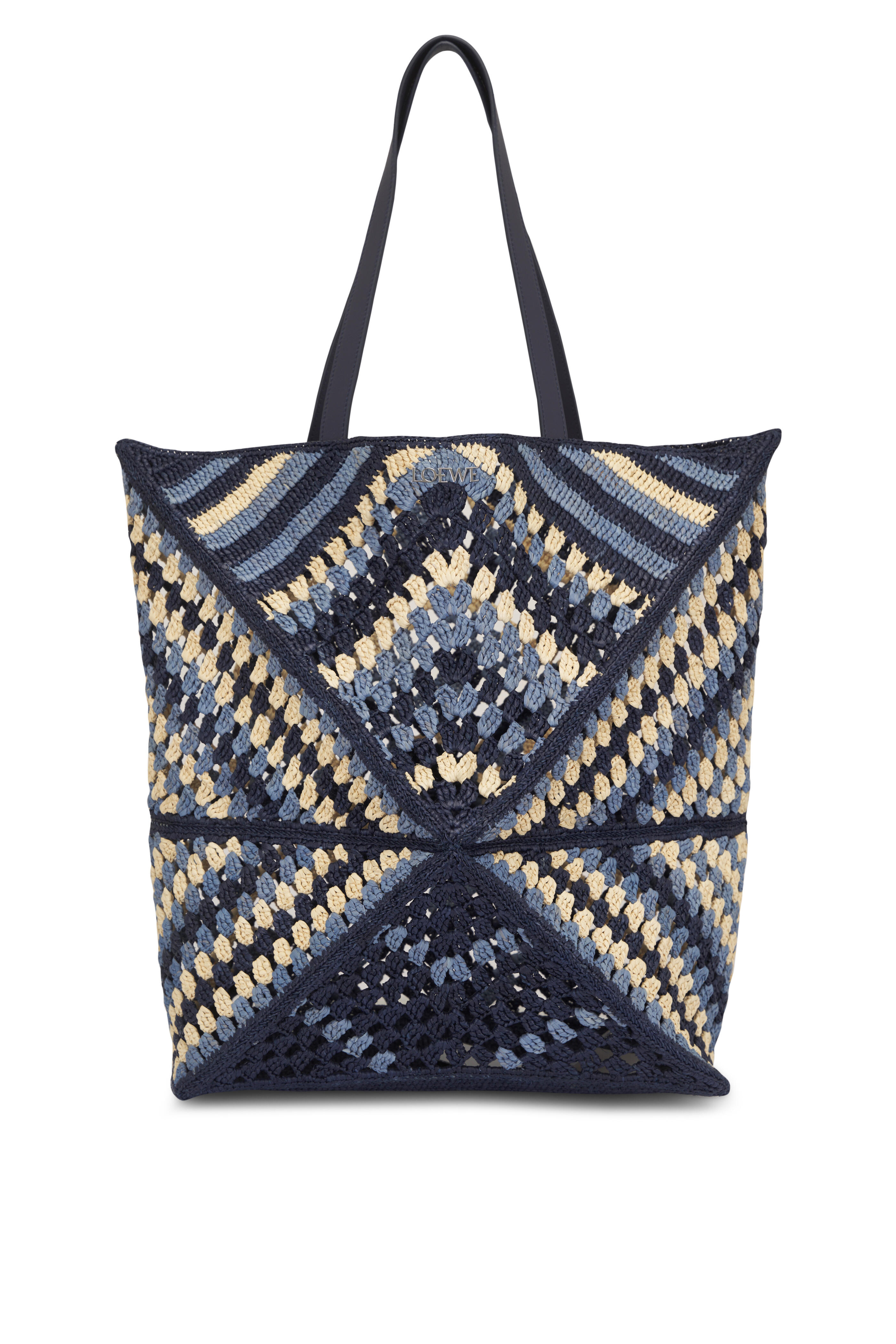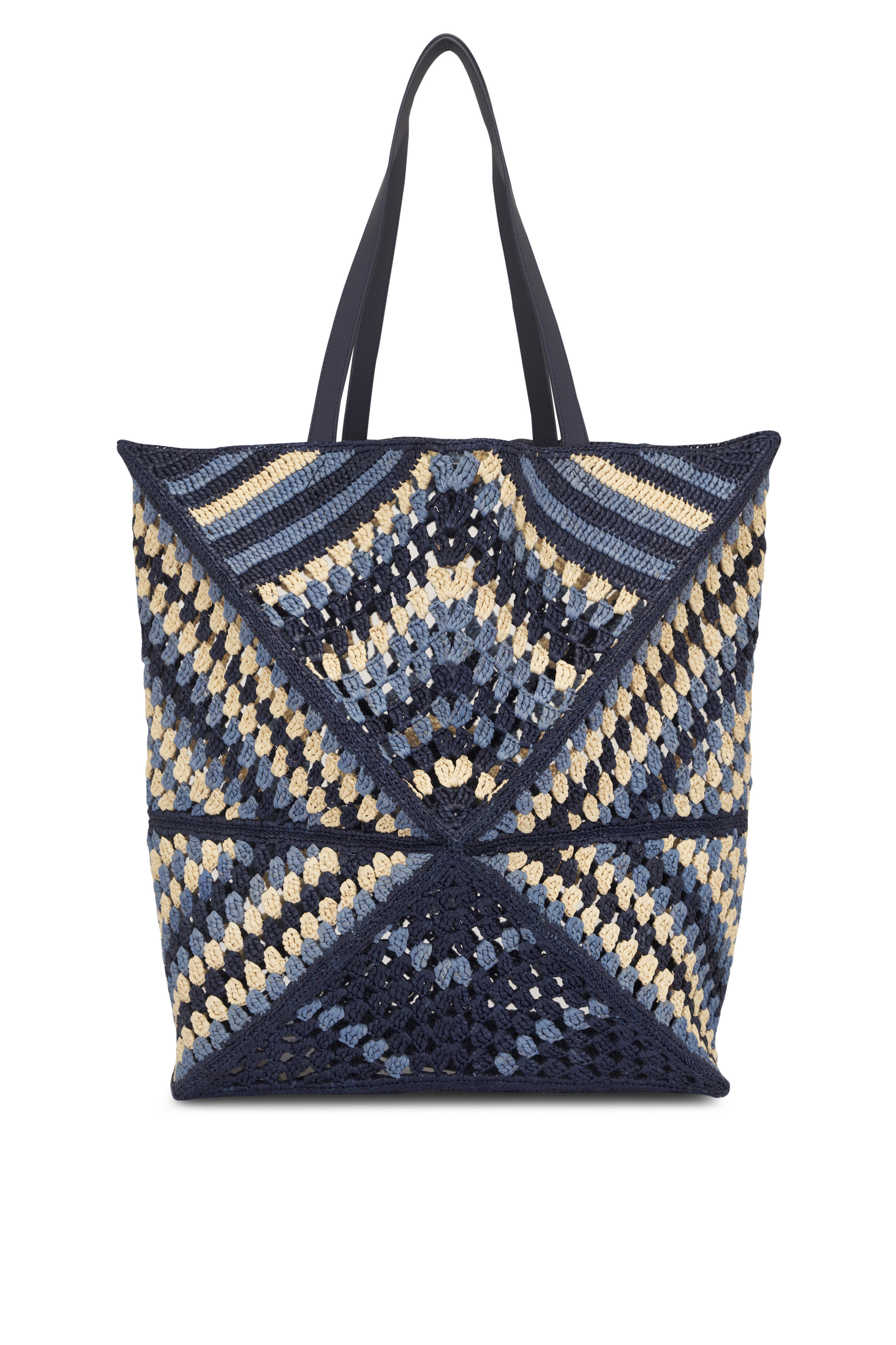 XL Crochet Navy & Sky Blue Puzzle Fold Tote