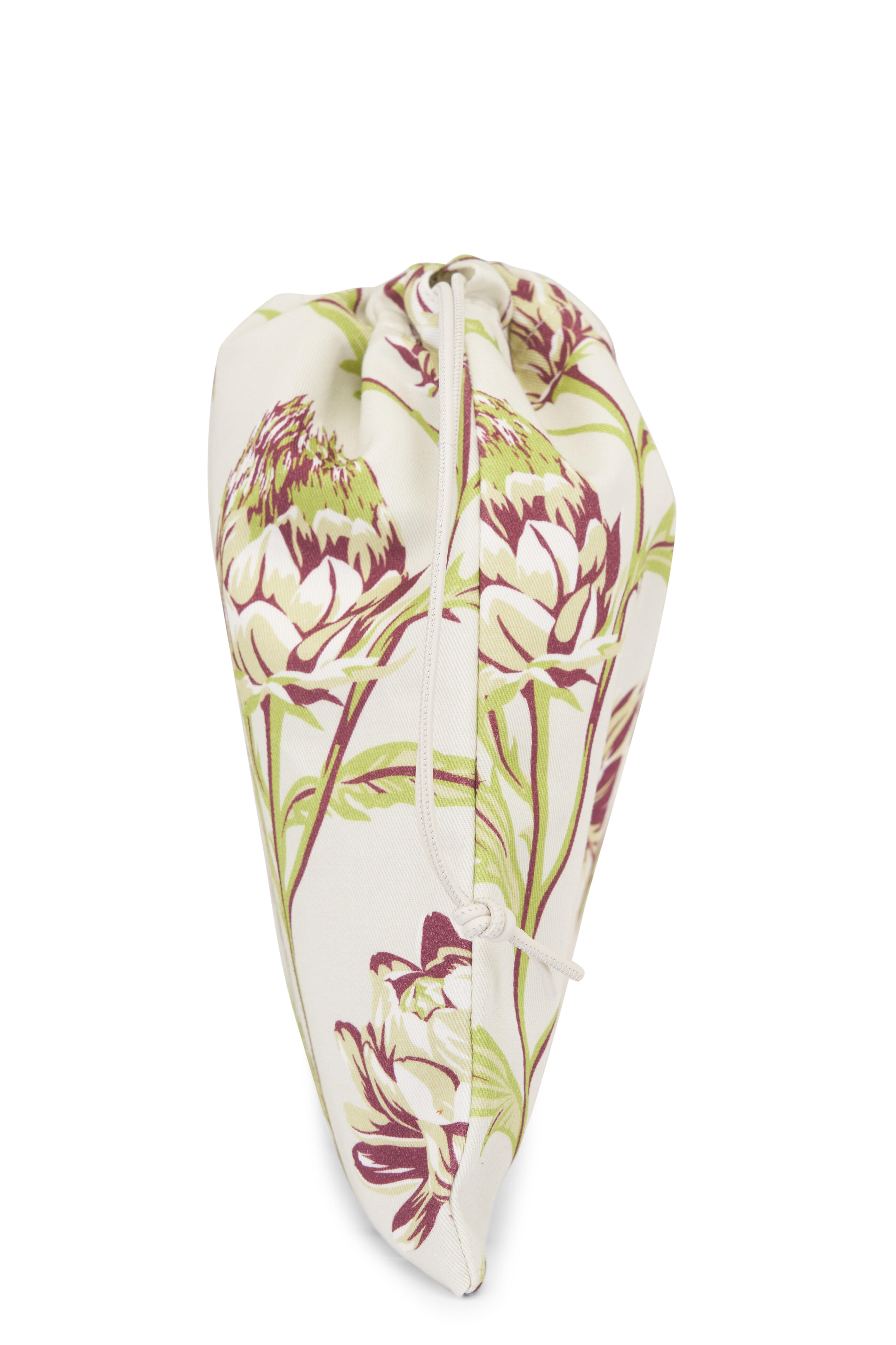 Small White Artichoke Print Drawstring Pouch