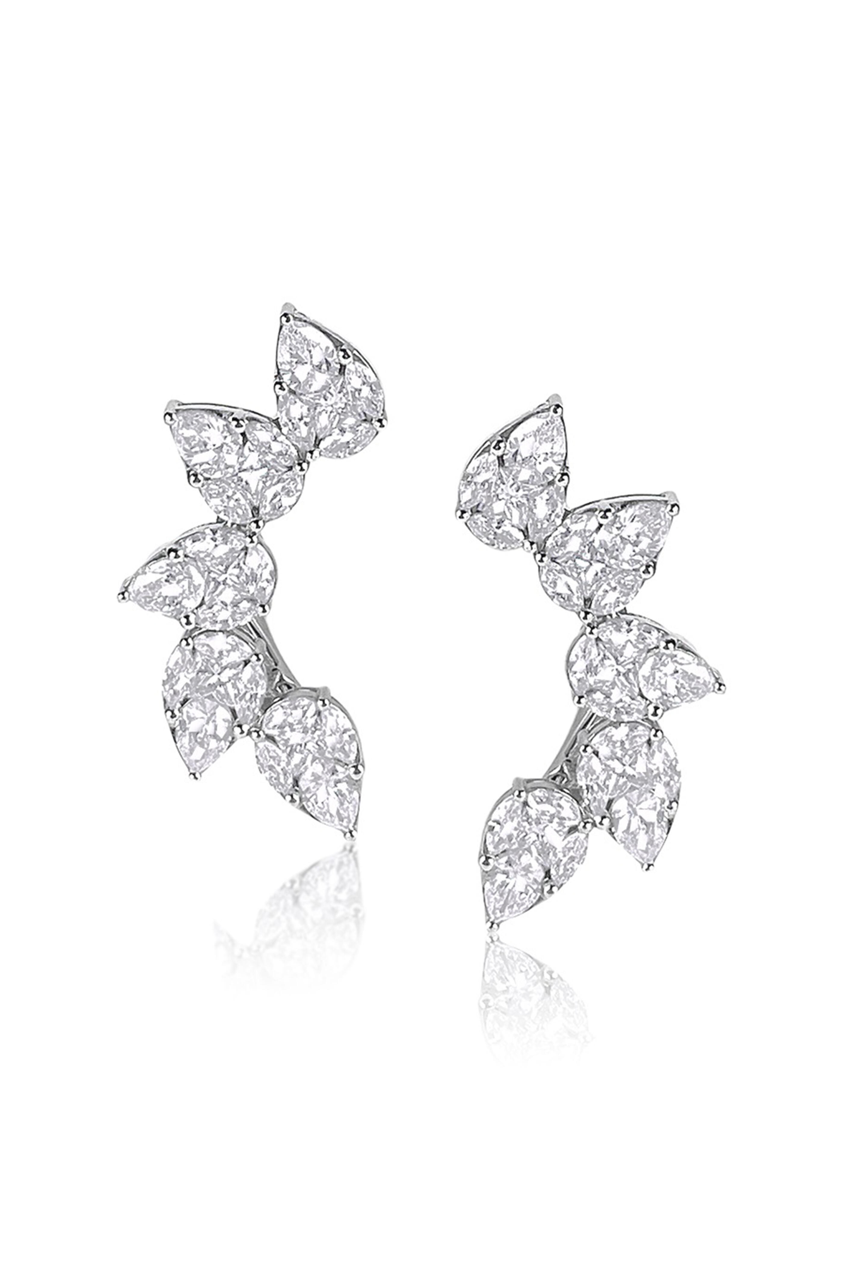 Edgy yet refined, these 18K white gold ear climbers are invisibly-set with 2.82 carats of VS, G-F color diamonds. Designed with a post and clip for a secure & comfortable fit, these arc elegantly along the ear, lending glamour and confidence to every look.