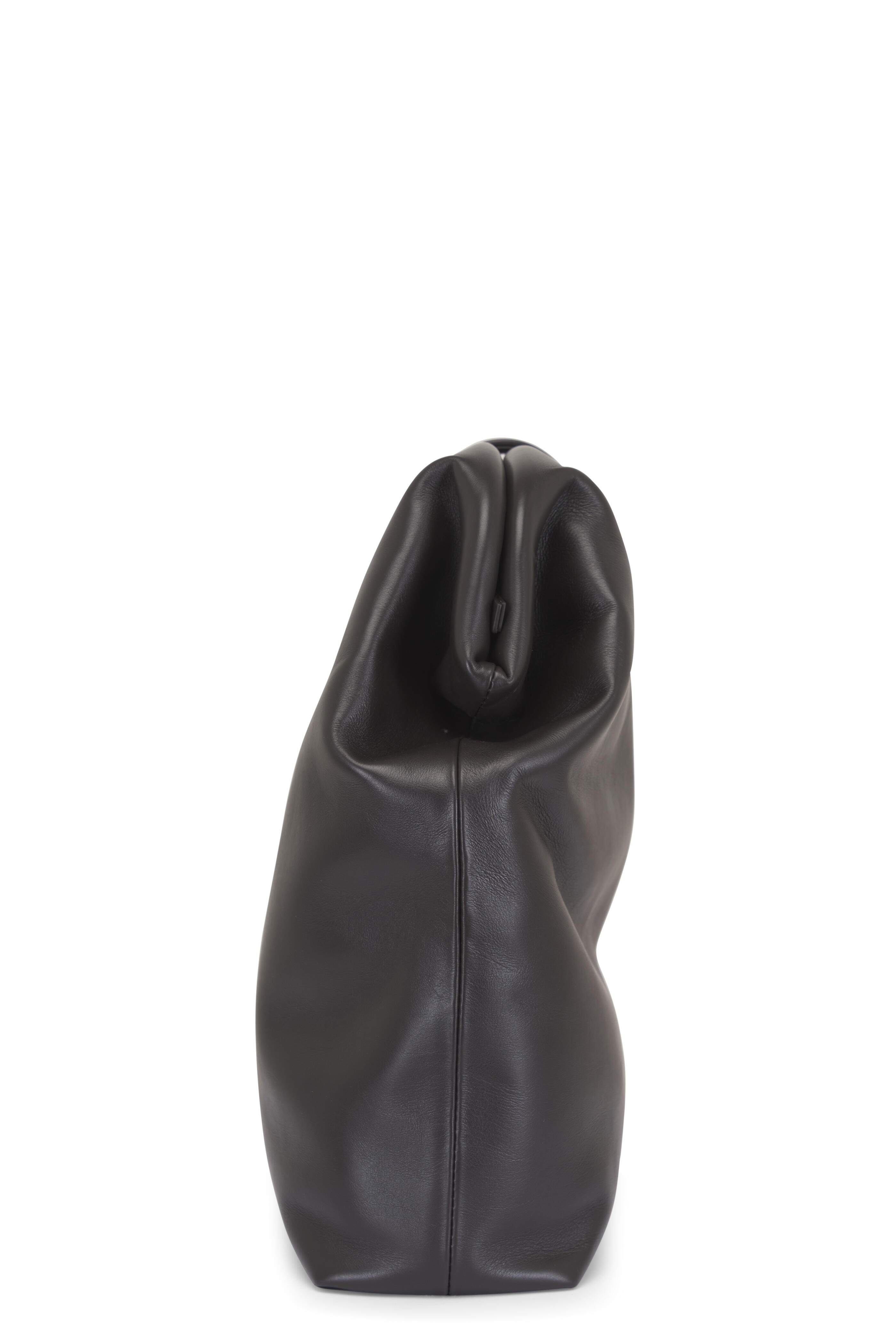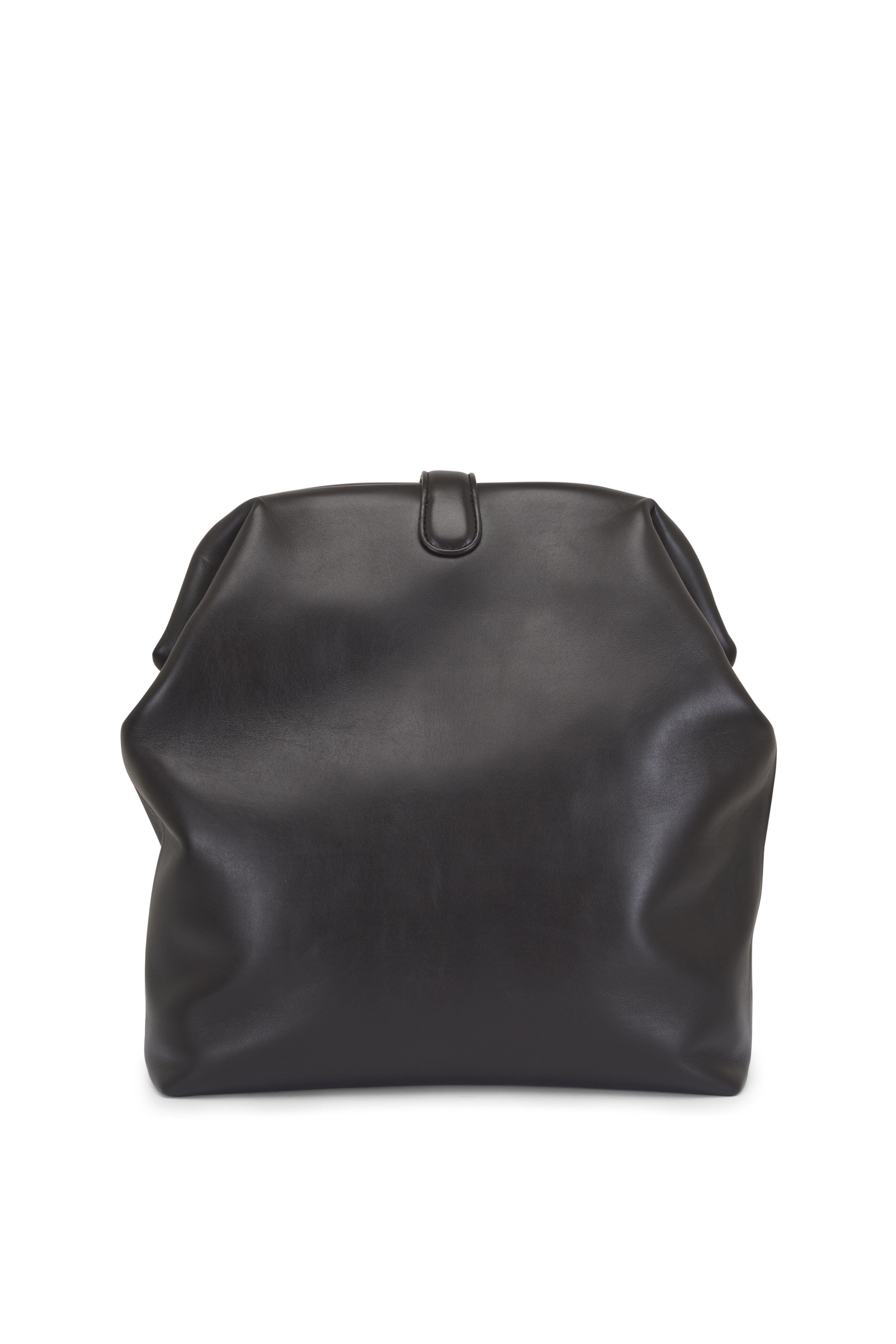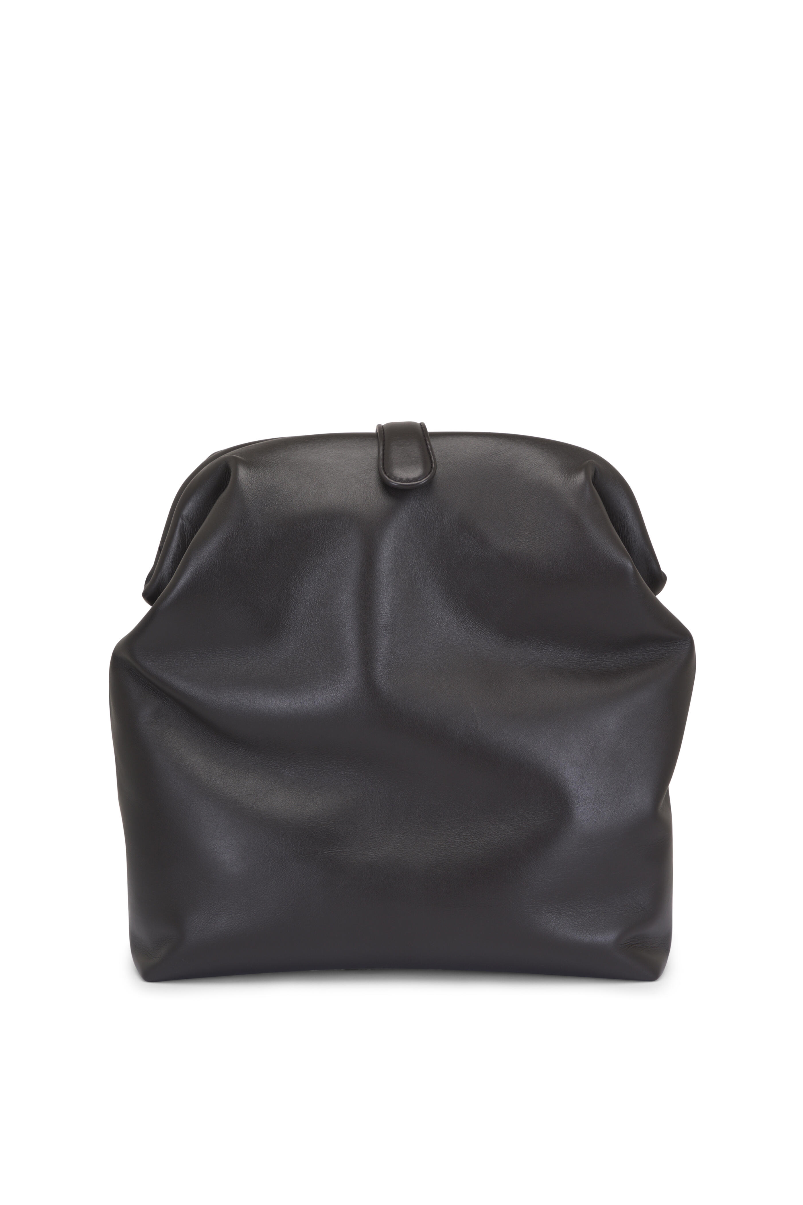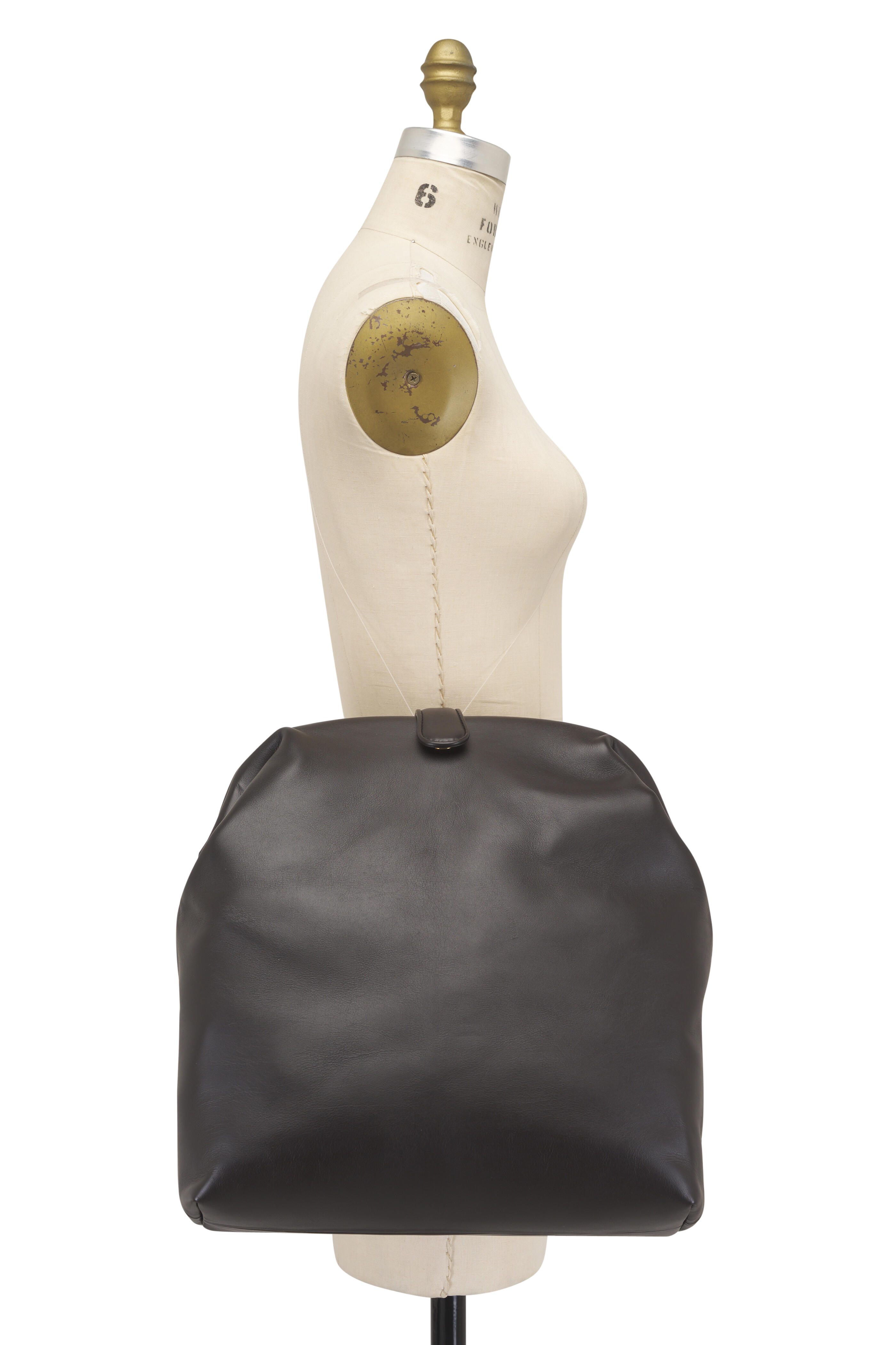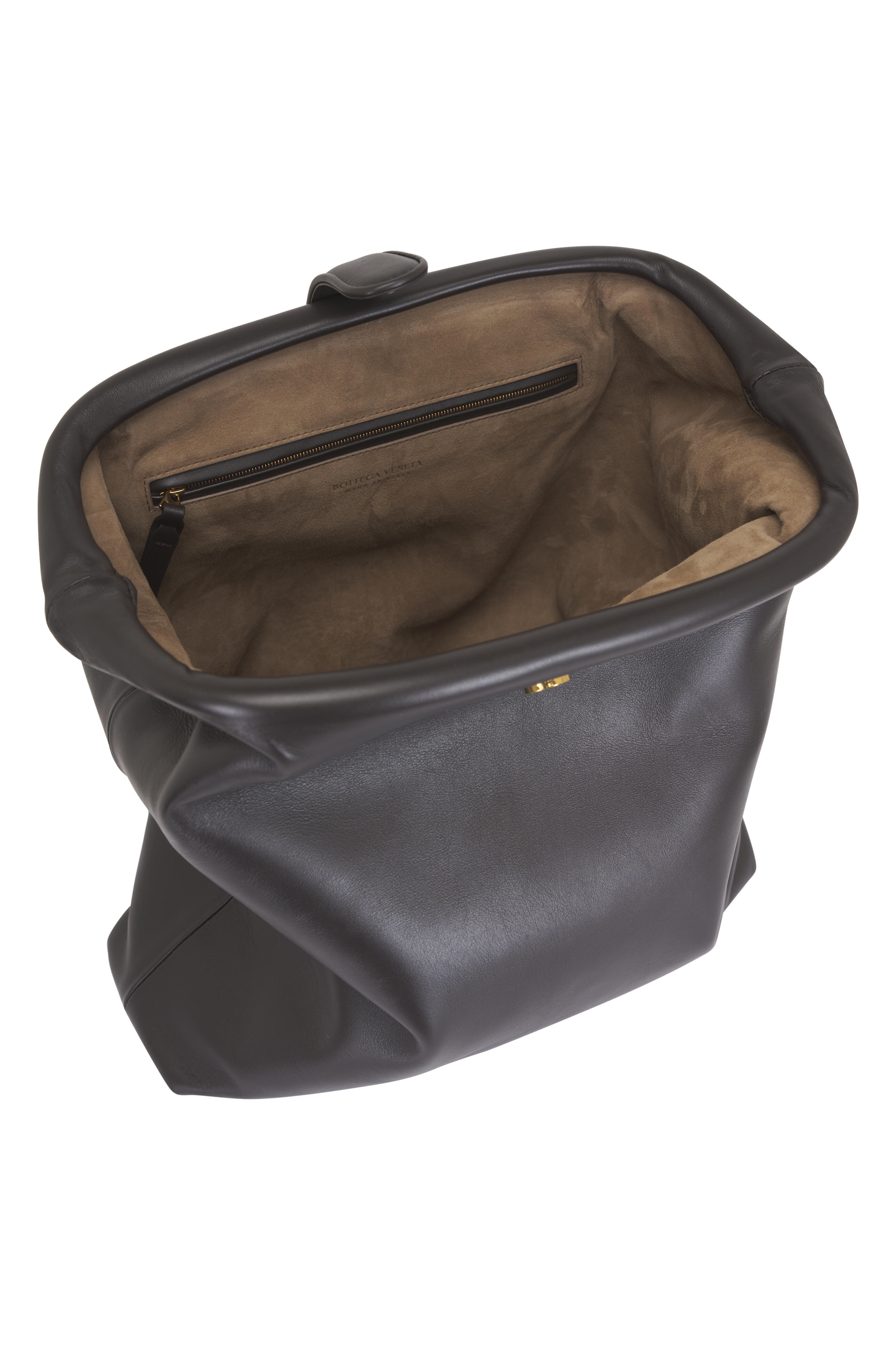 Smooth leather. Magnetic flap closure. Single compartment. One zip pocket. Suede lining. Brass-tone hardware. Made in Italy. Height: 13.3". Width: 12.8". Depth: 3.9".