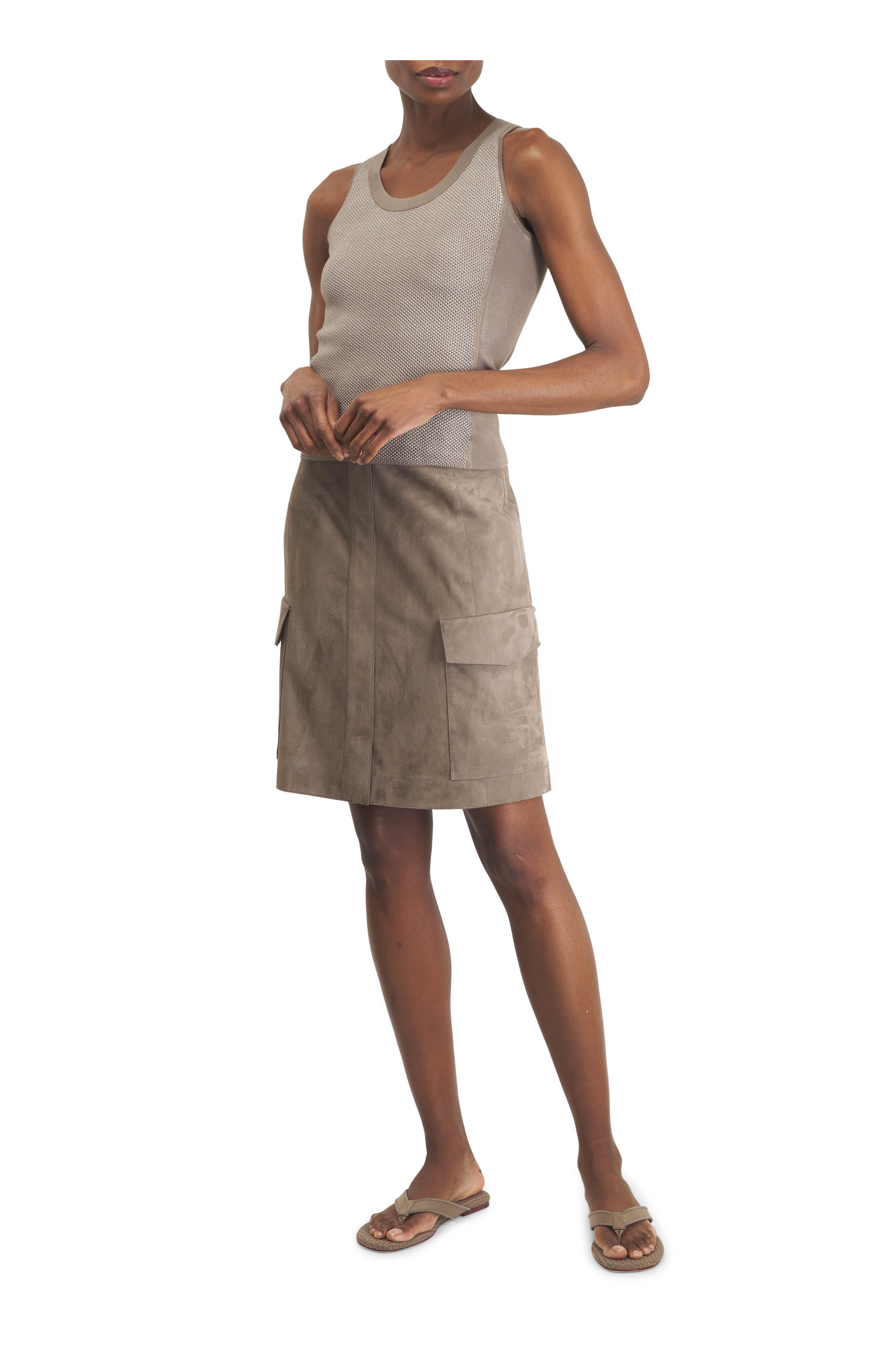 Taupe Suede Cargo Mini Skirt