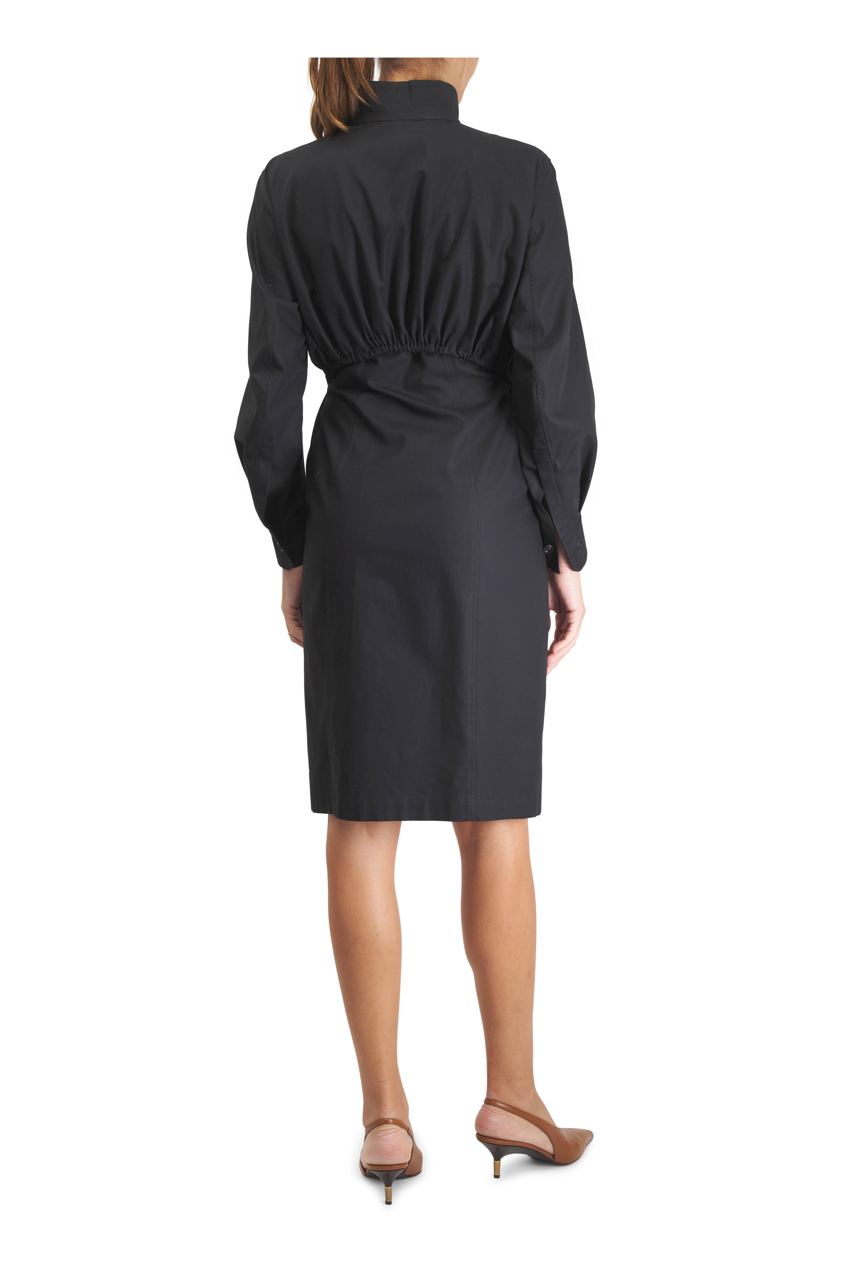 Black Cotton Stretch Midi Shirtdress