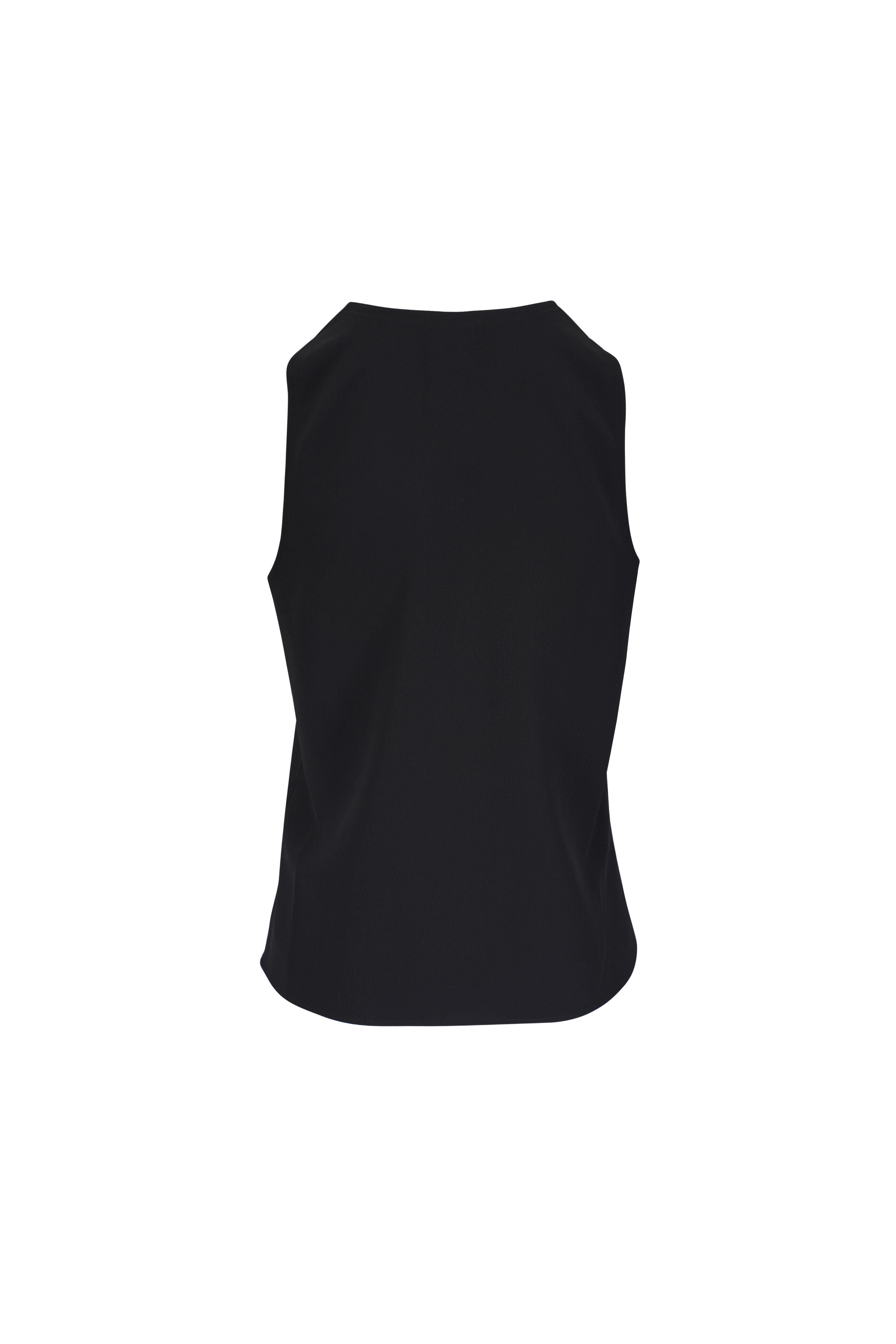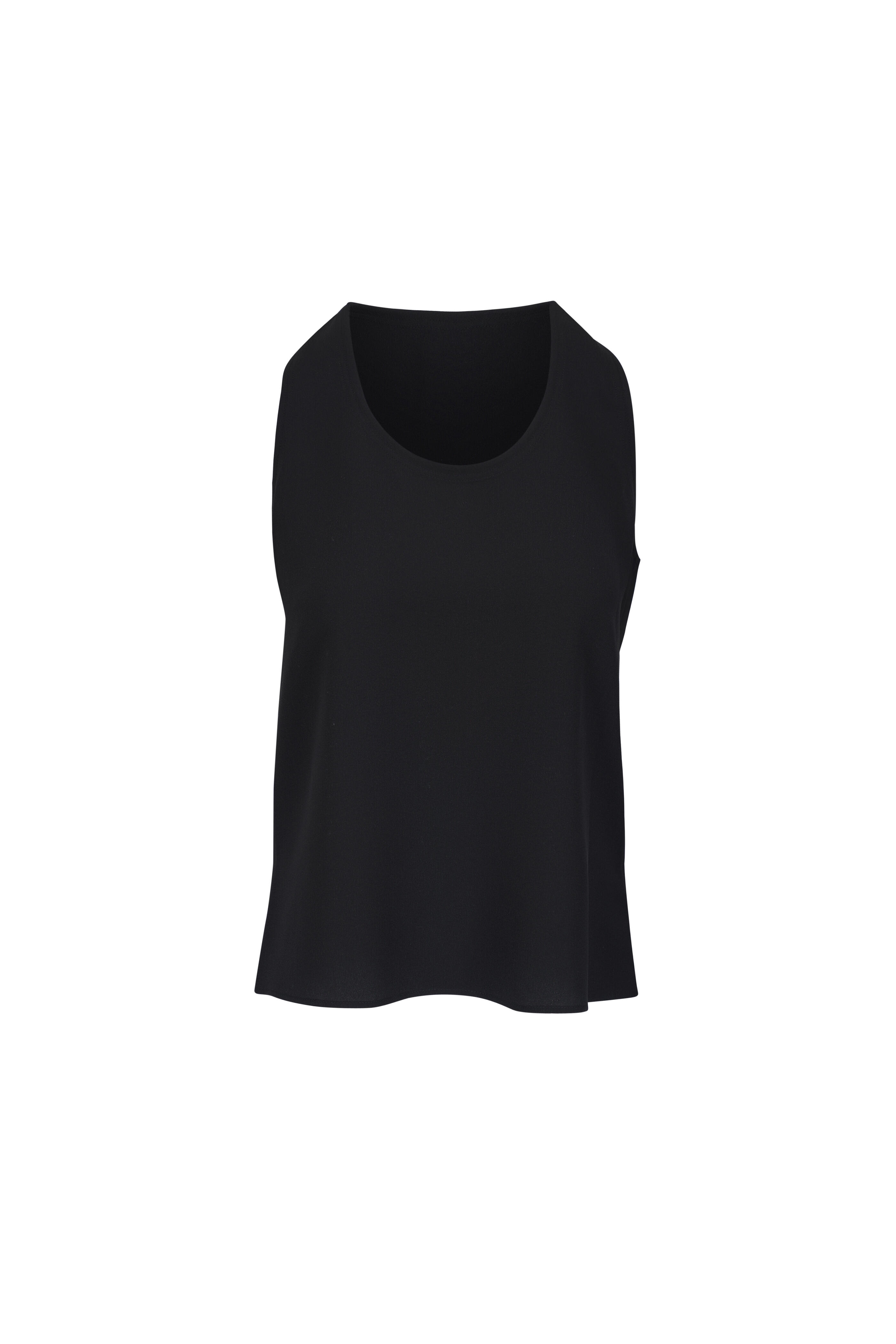 Scoop neckline. Vented hem. Fabric from Italy; Imported. 21" shoulder to hem (size 4). 100% mulberry silk. Dry clean.