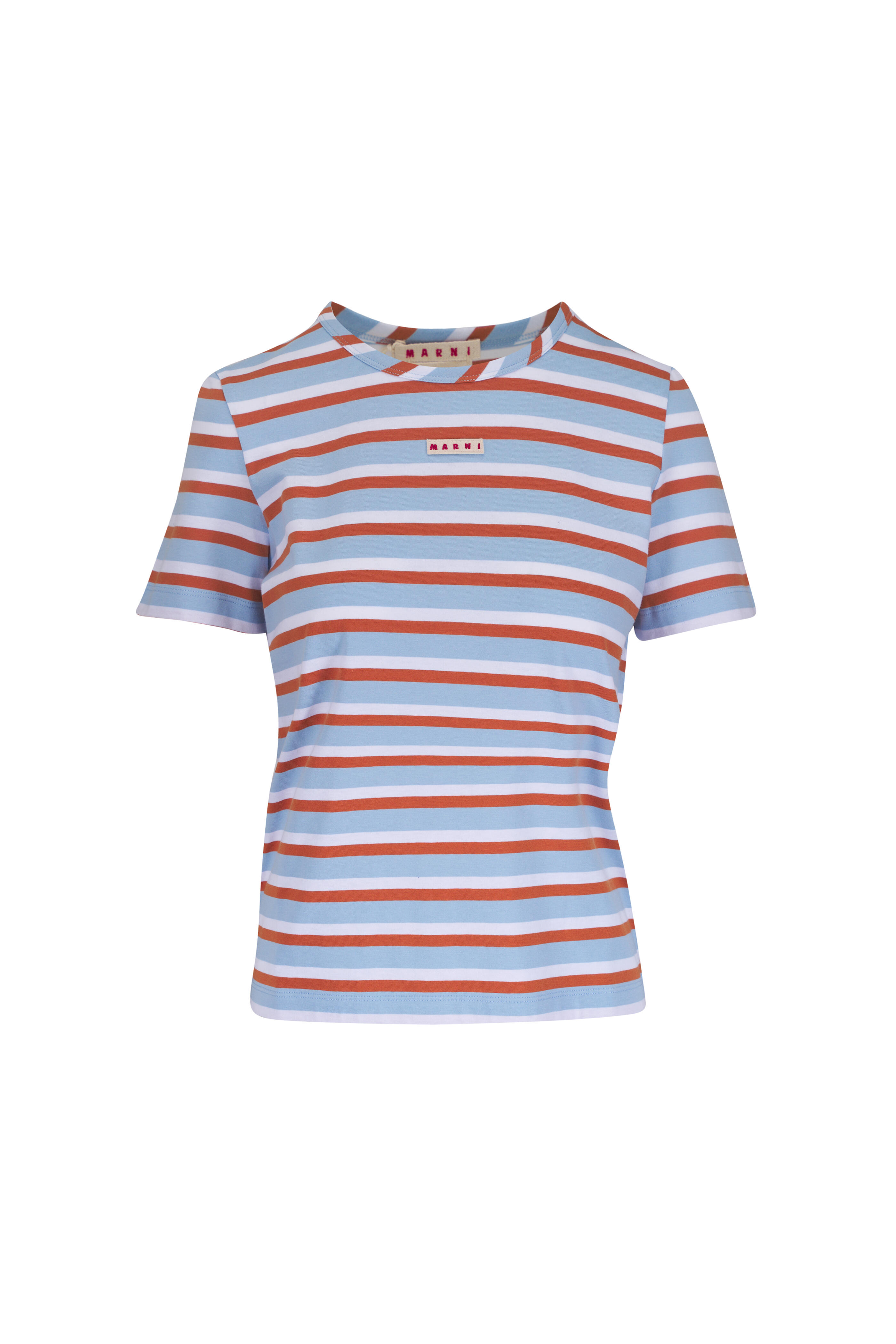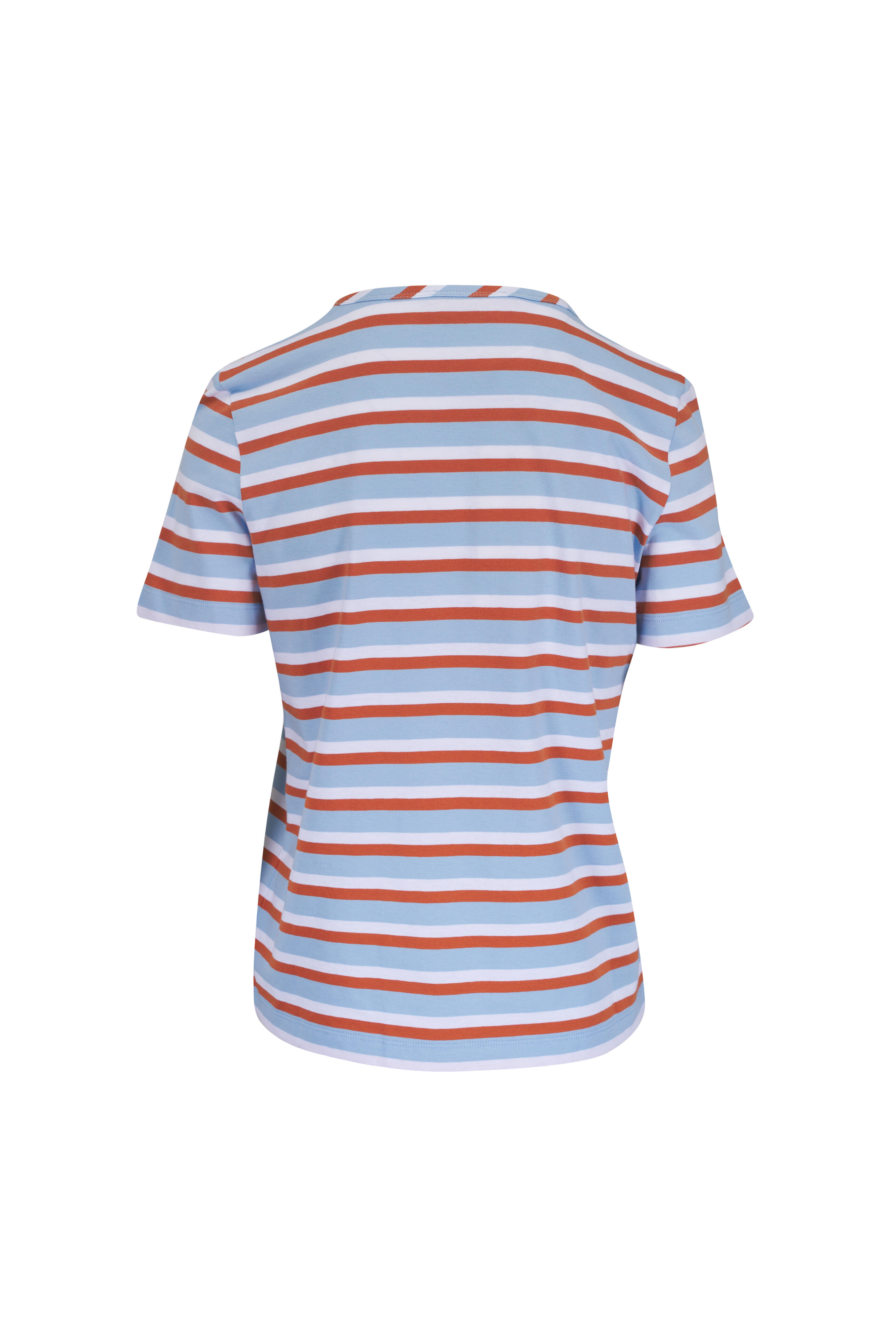 Light Blue, White & Copper Stripe Cotton T-Shirt
