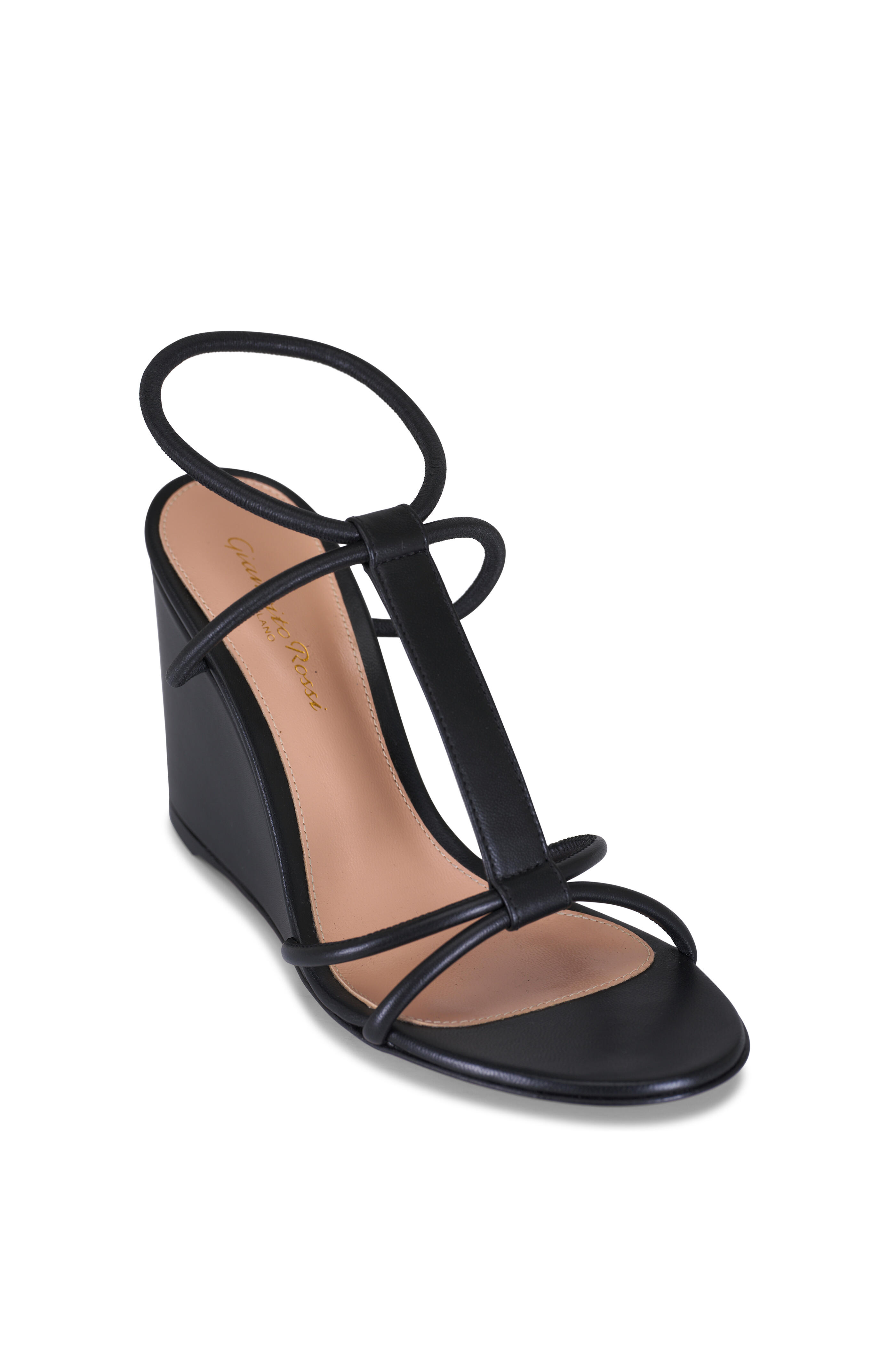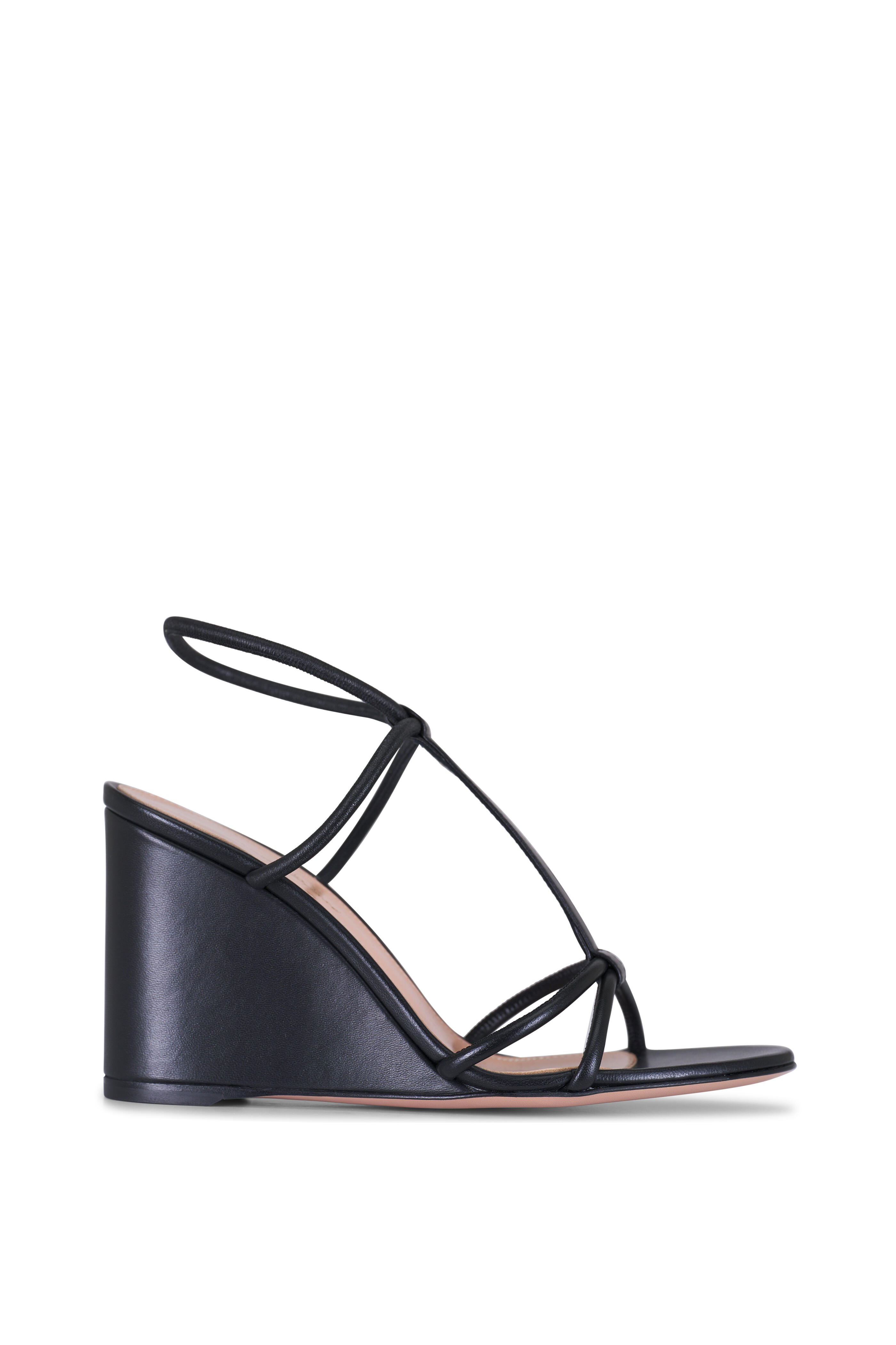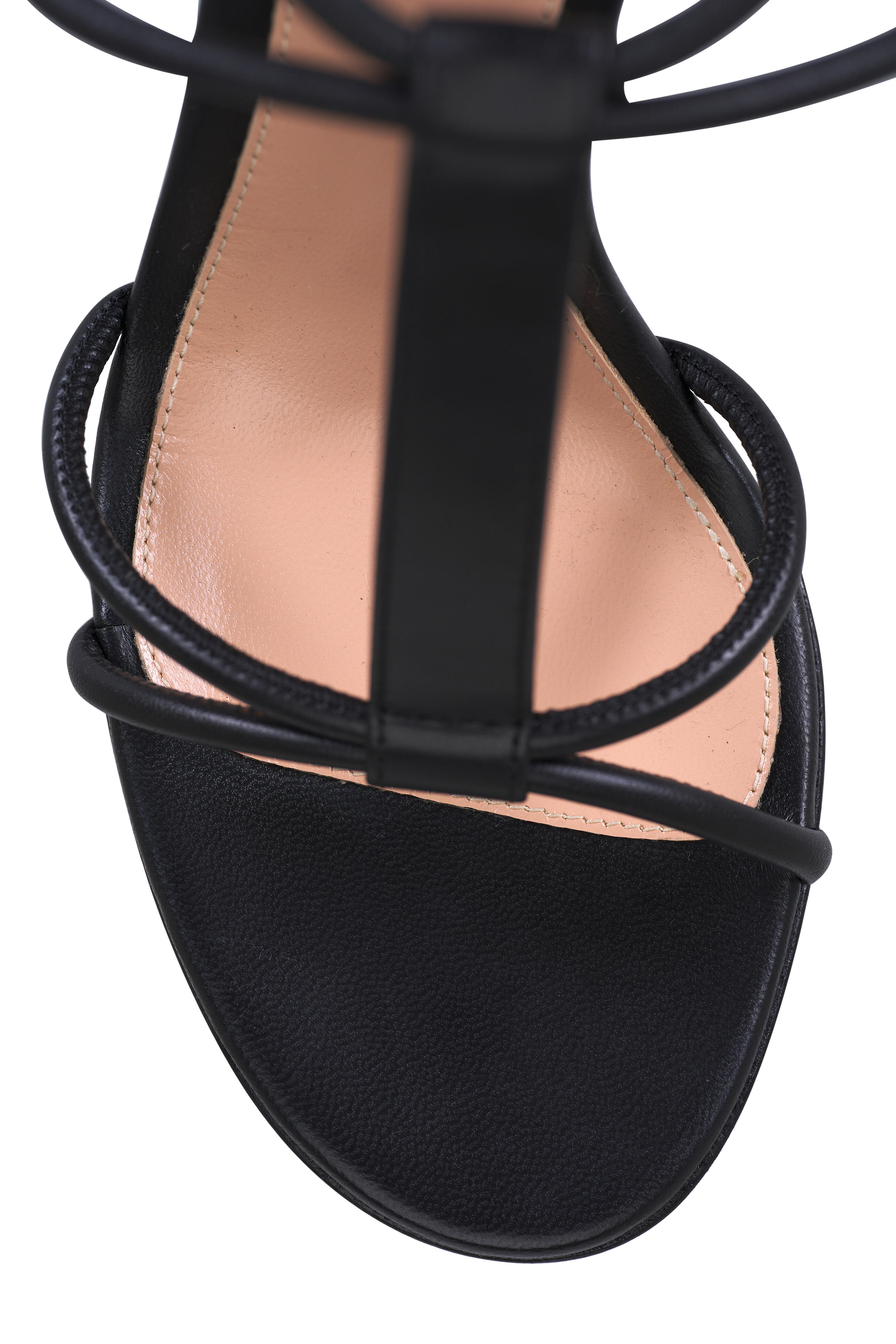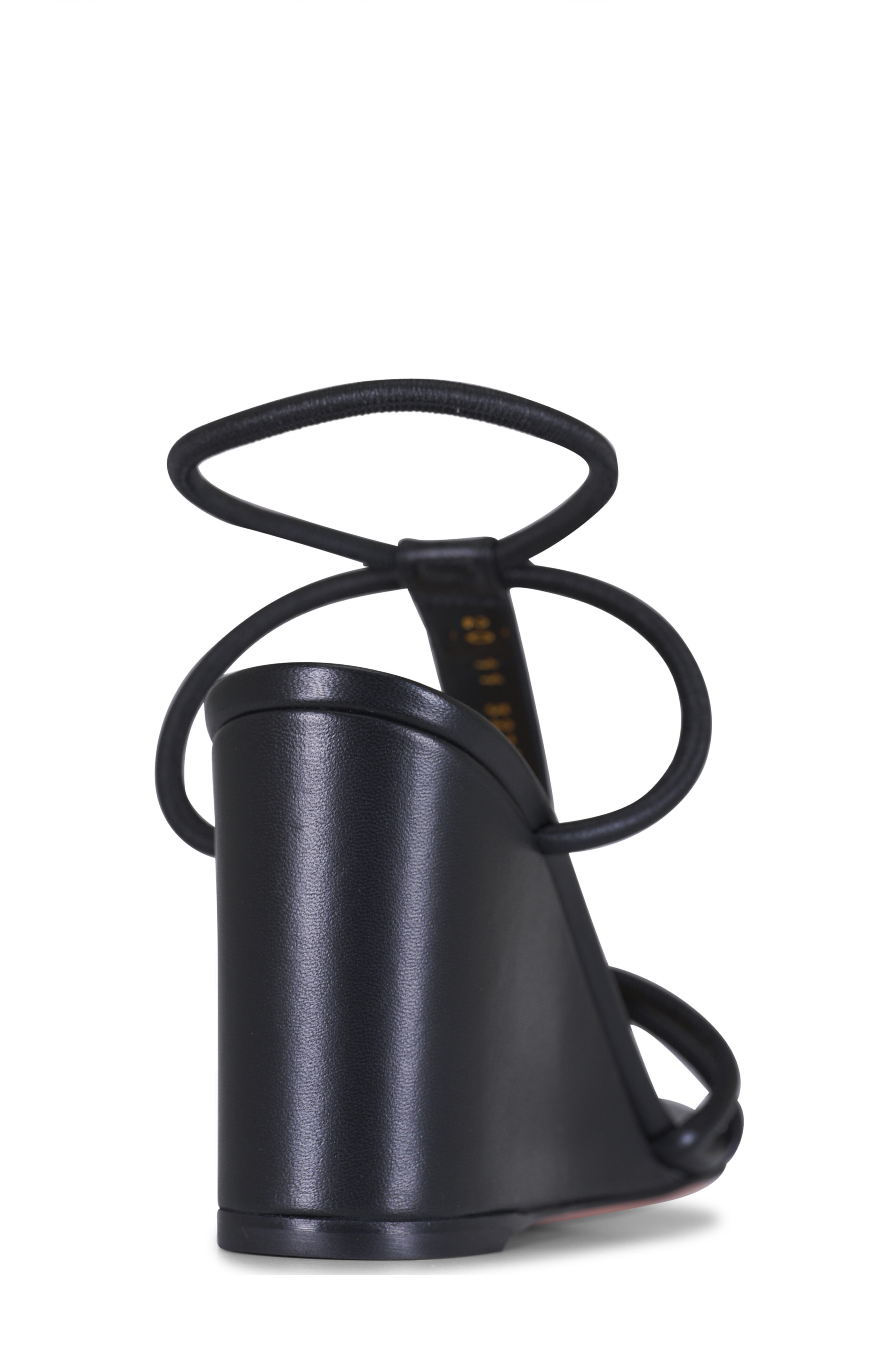 Nappa leather upper. Leather lining and sole. Open round toe. Elastic metallic straps. Slip-on style. Made in Italy. Heel measurement: 95mm.