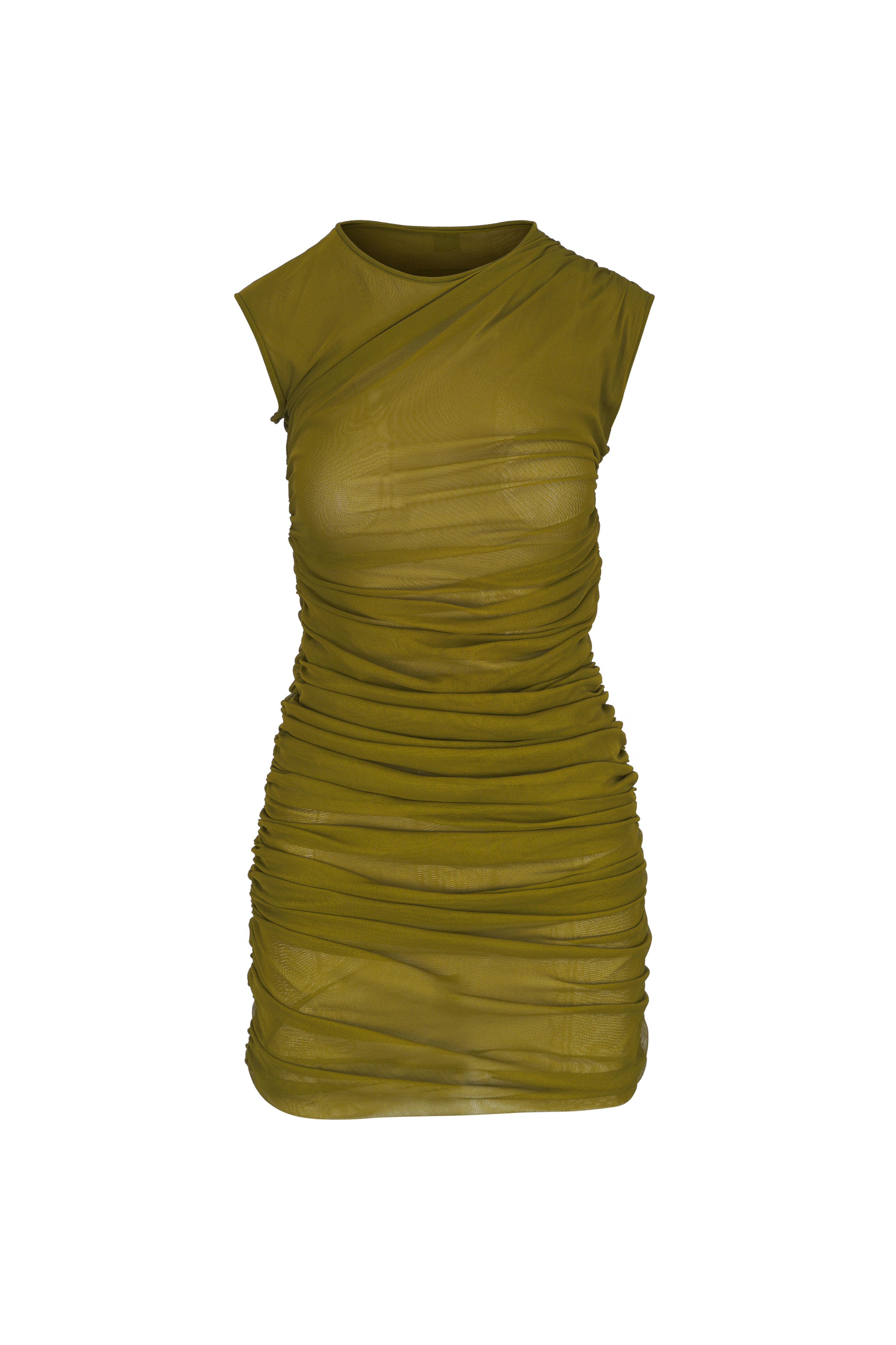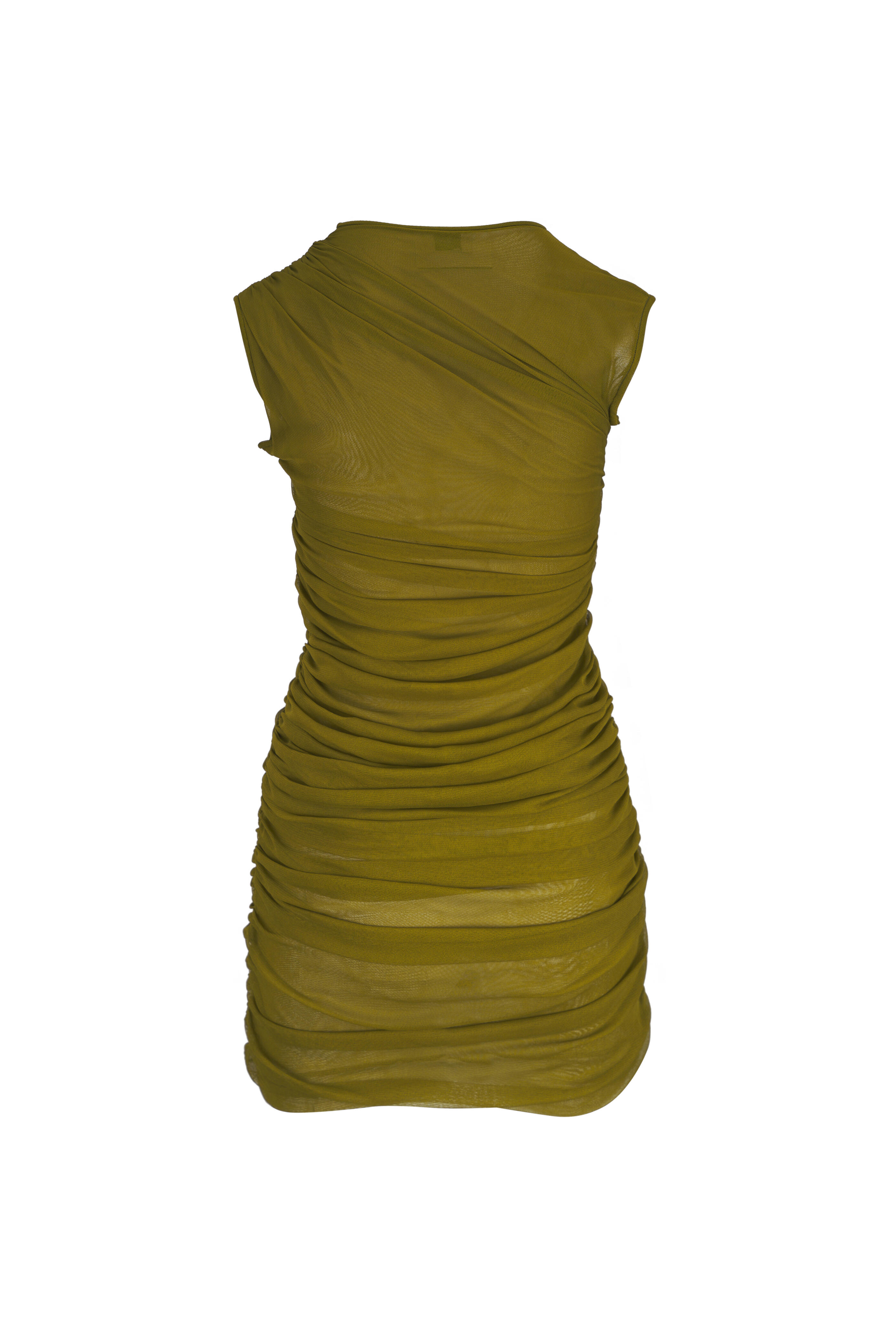 Mousse Green Ruched Tulle Jersey Mini Dress