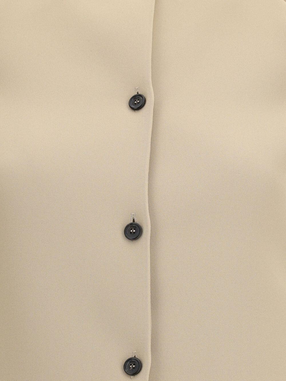 Front button placket. Three-quarter sleeves. Pleat hem. Made in Italy. 100% polyester. Dry clean.