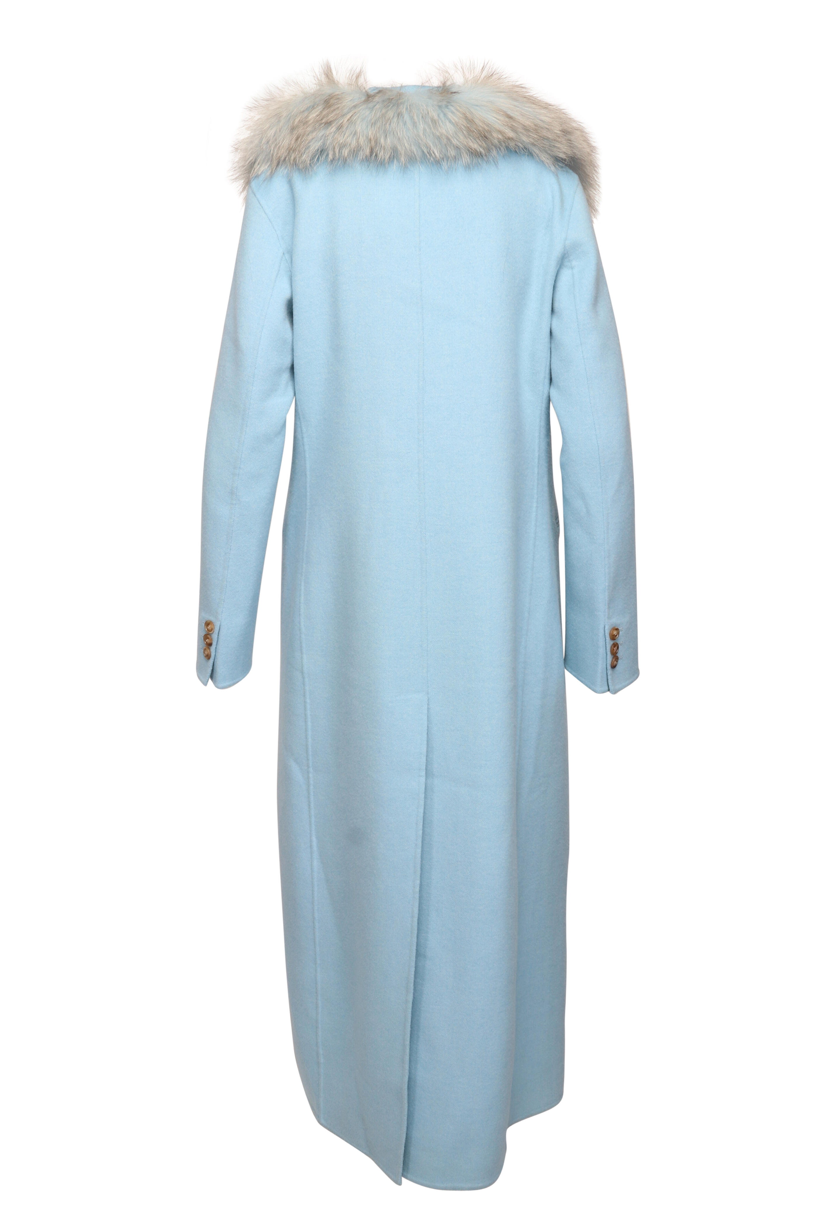 Long Light Blue Wool Blend Trench Coat