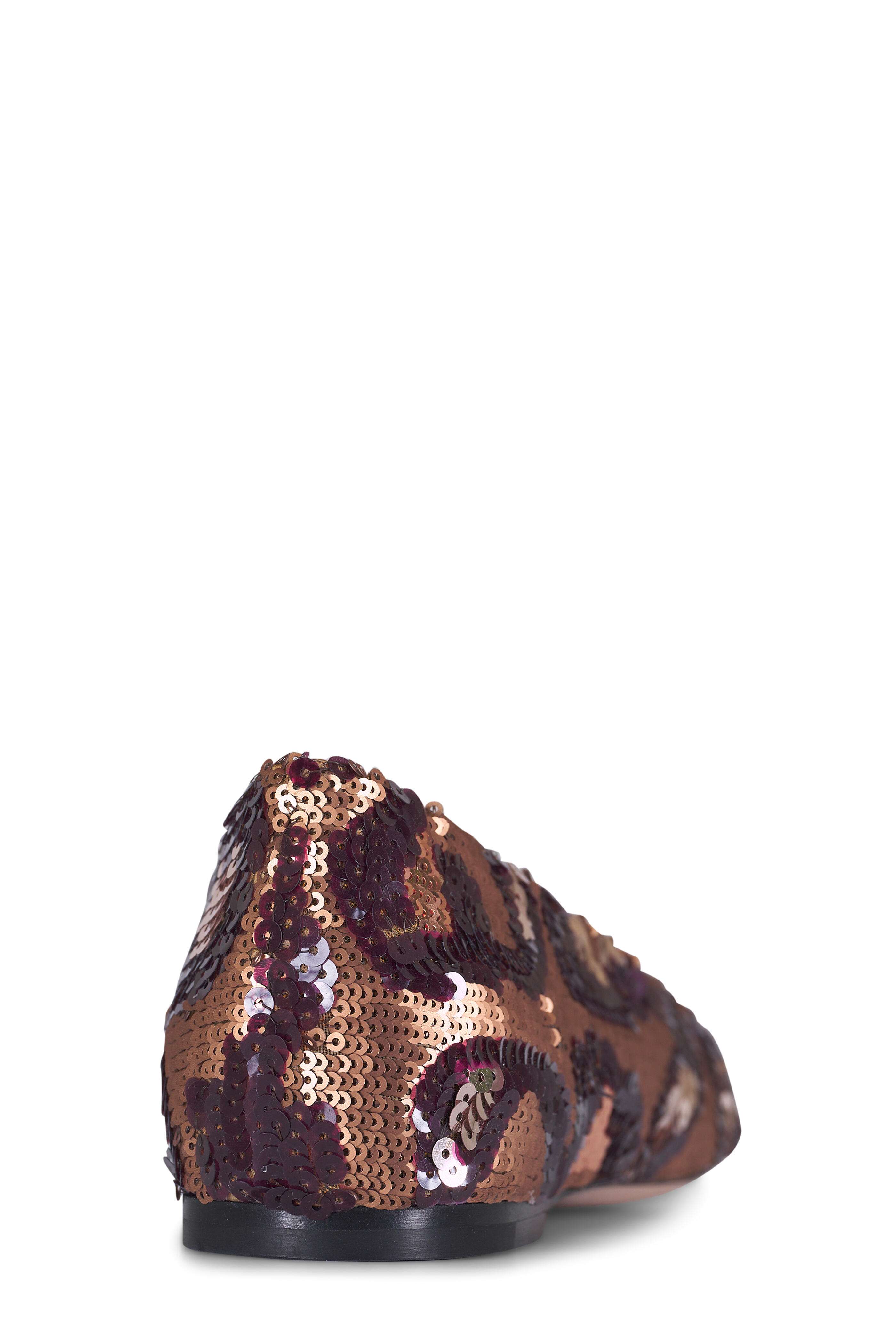 Sequin upper. Square cap toe. Slip-on style. Vlogo signature detail. Leather lining and insole. Leather sole. Made in Italy.