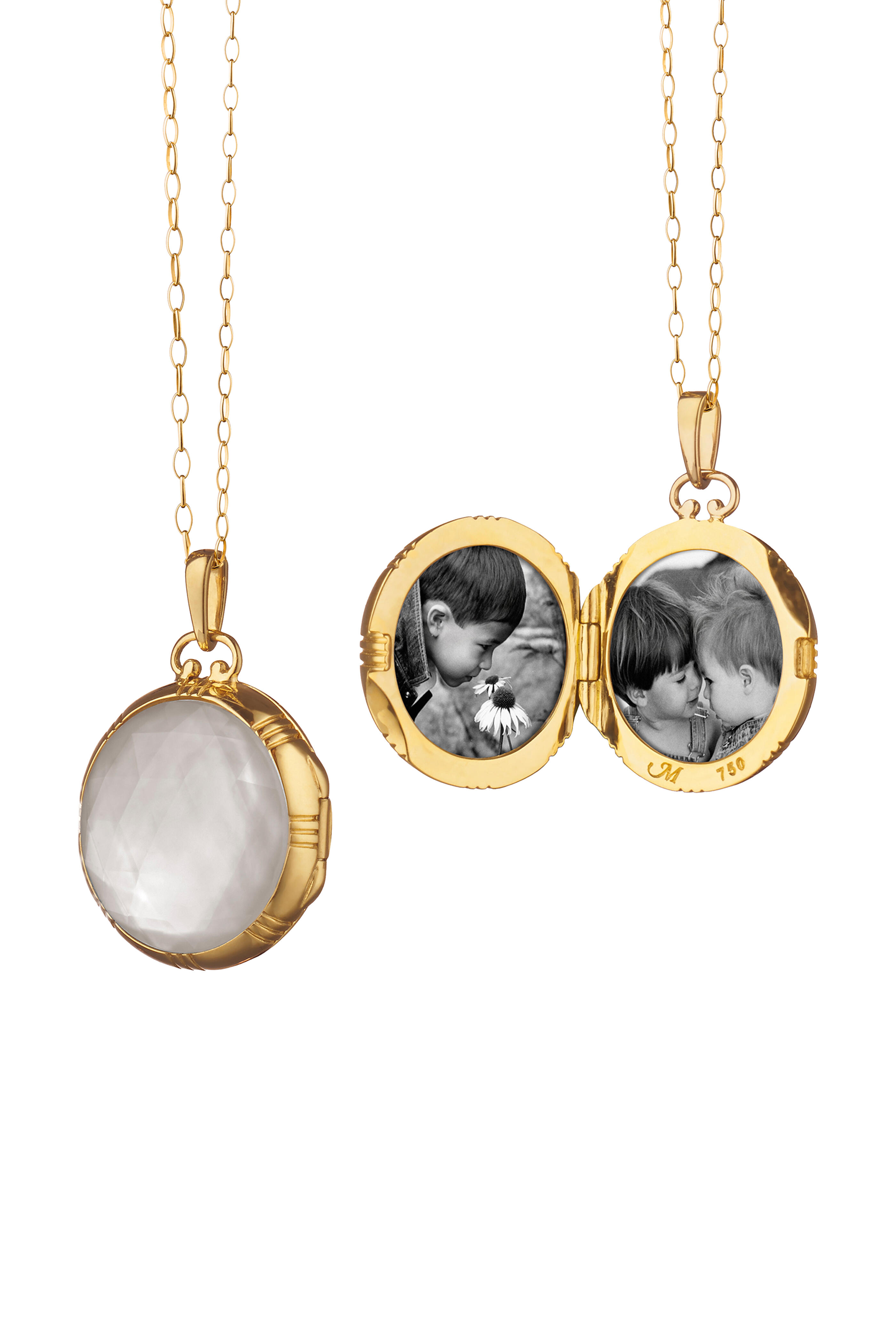 18k Yellow Gold. Rock Crystal over Mother of Pearl. *Necklace sold separately.