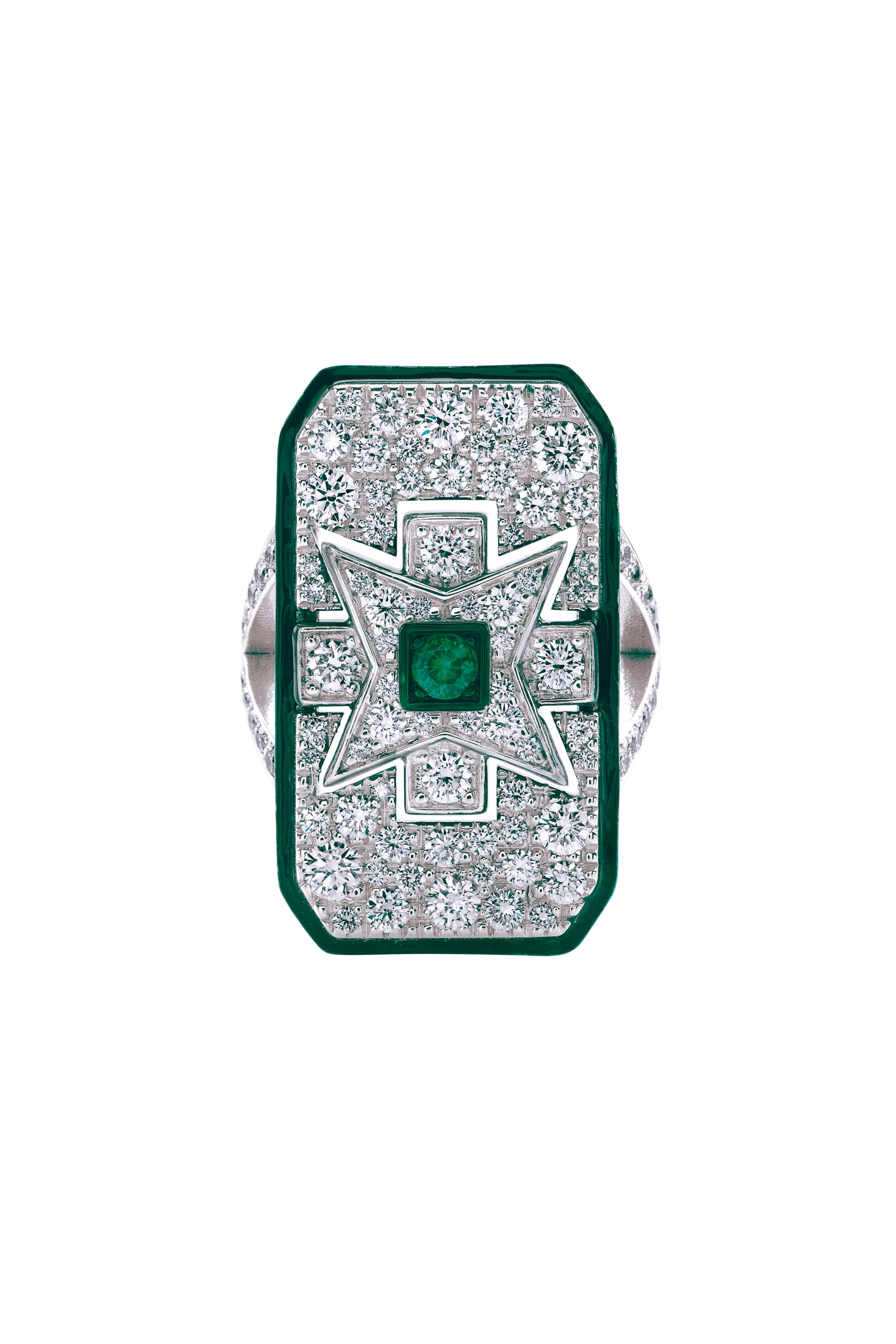 18k White Gold Maltese Emerald & Diamond Ring